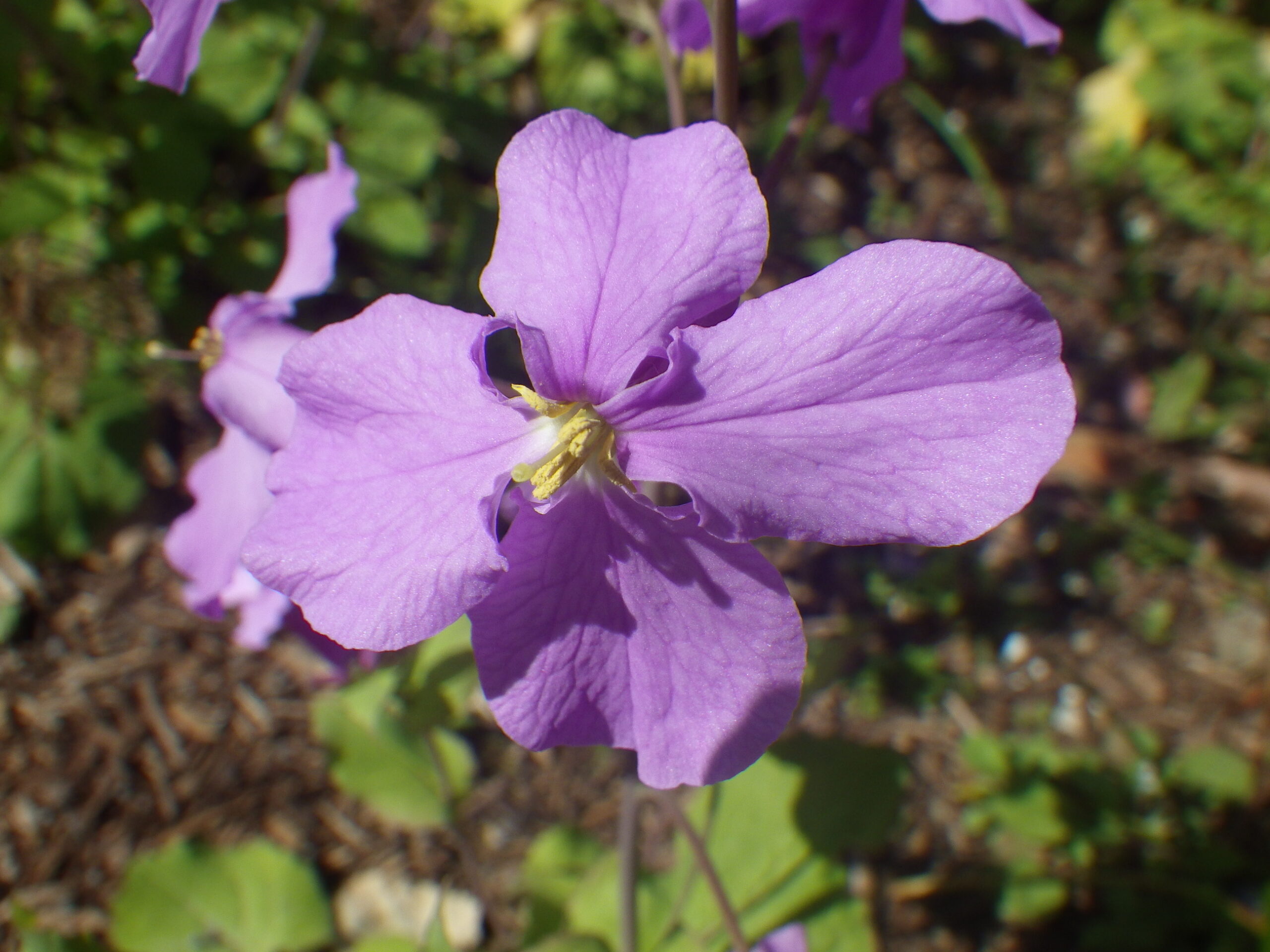 Orychophragmus violaceus和名:ショカツサイ、ムラサキハナナ、オオアラセイトウアブラナ科オオアラセイトウ属2026年3月 近所の公園で撮影 しかし、この花、侵入生物なのね2022年4月 校内で撮影
