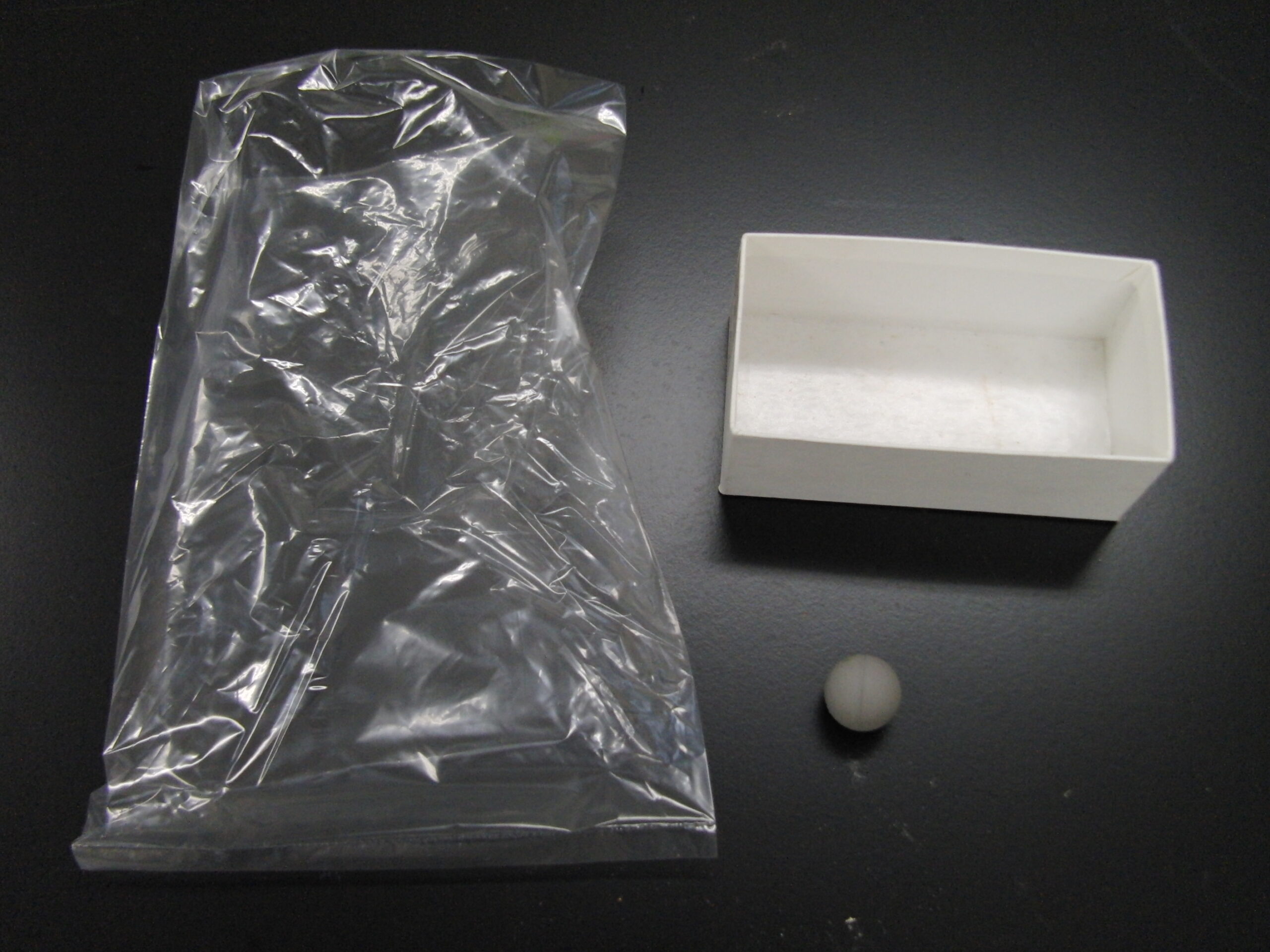 材料はこちら。巣鴨にある福島家謹製の紅白饅頭の箱と、ビニール袋と、そういえば最近すっかり見かけなくなったマウスのボール。