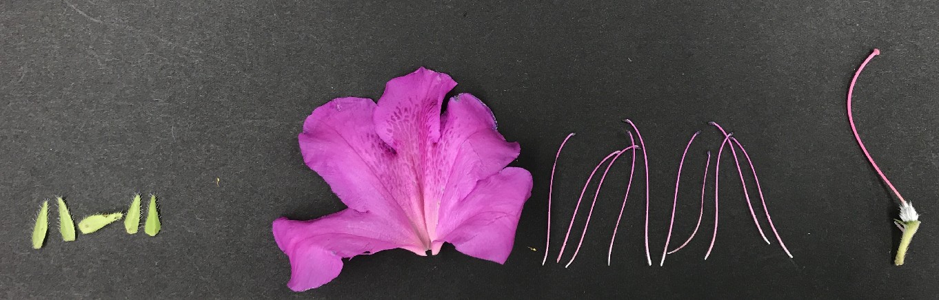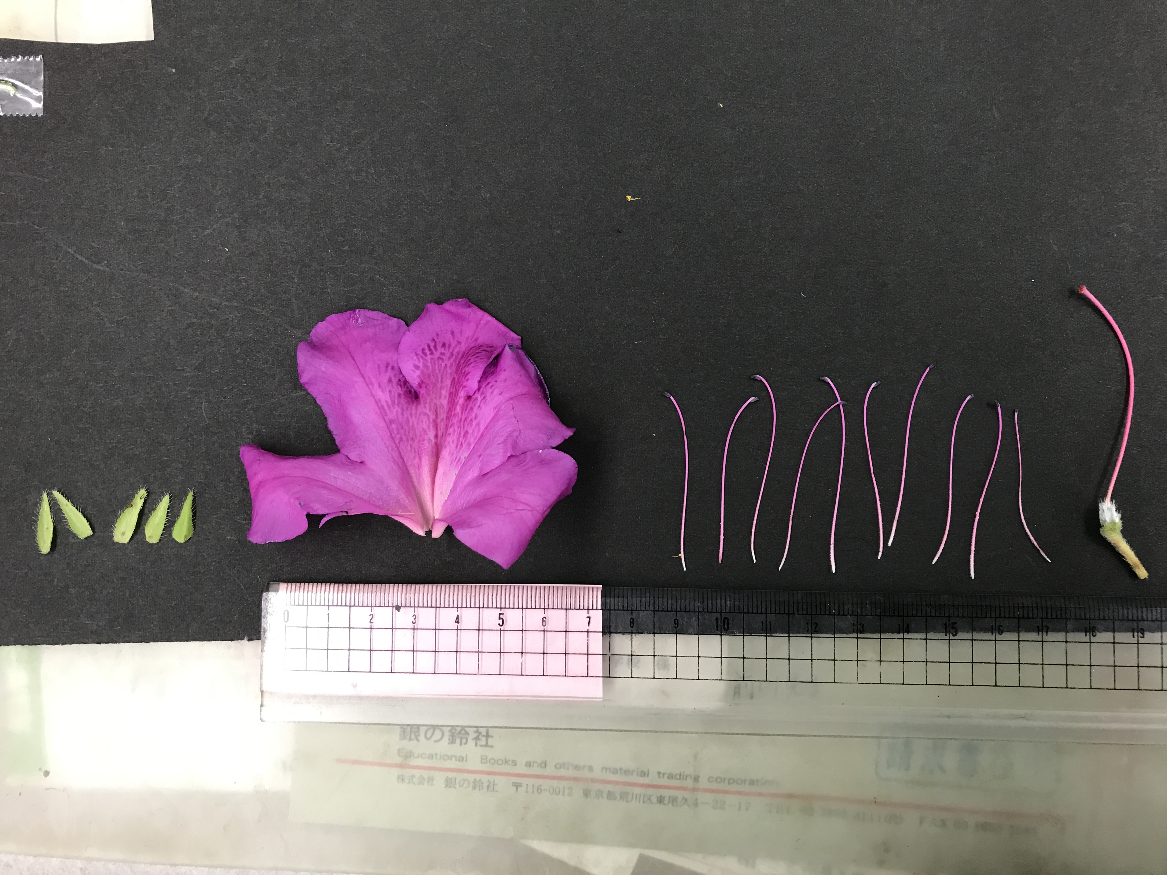 このツツジの花を分解して花のつくりを調べてみましょう。