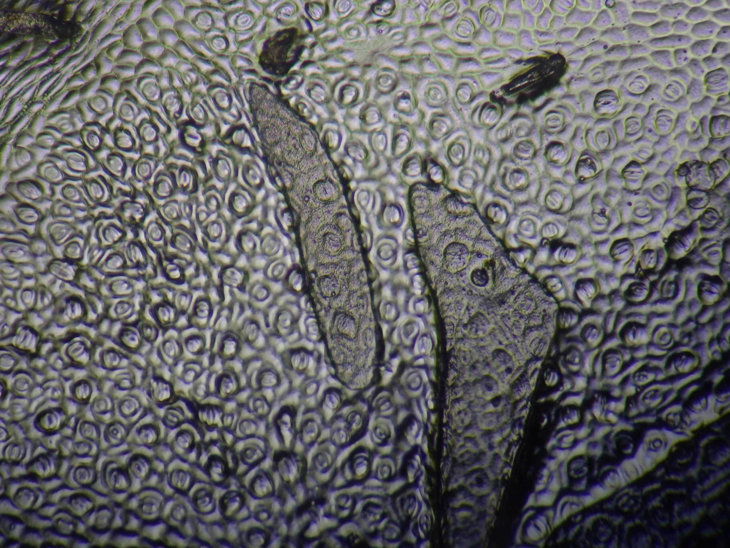 葉の裏側。たくさん気孔が見られますね。