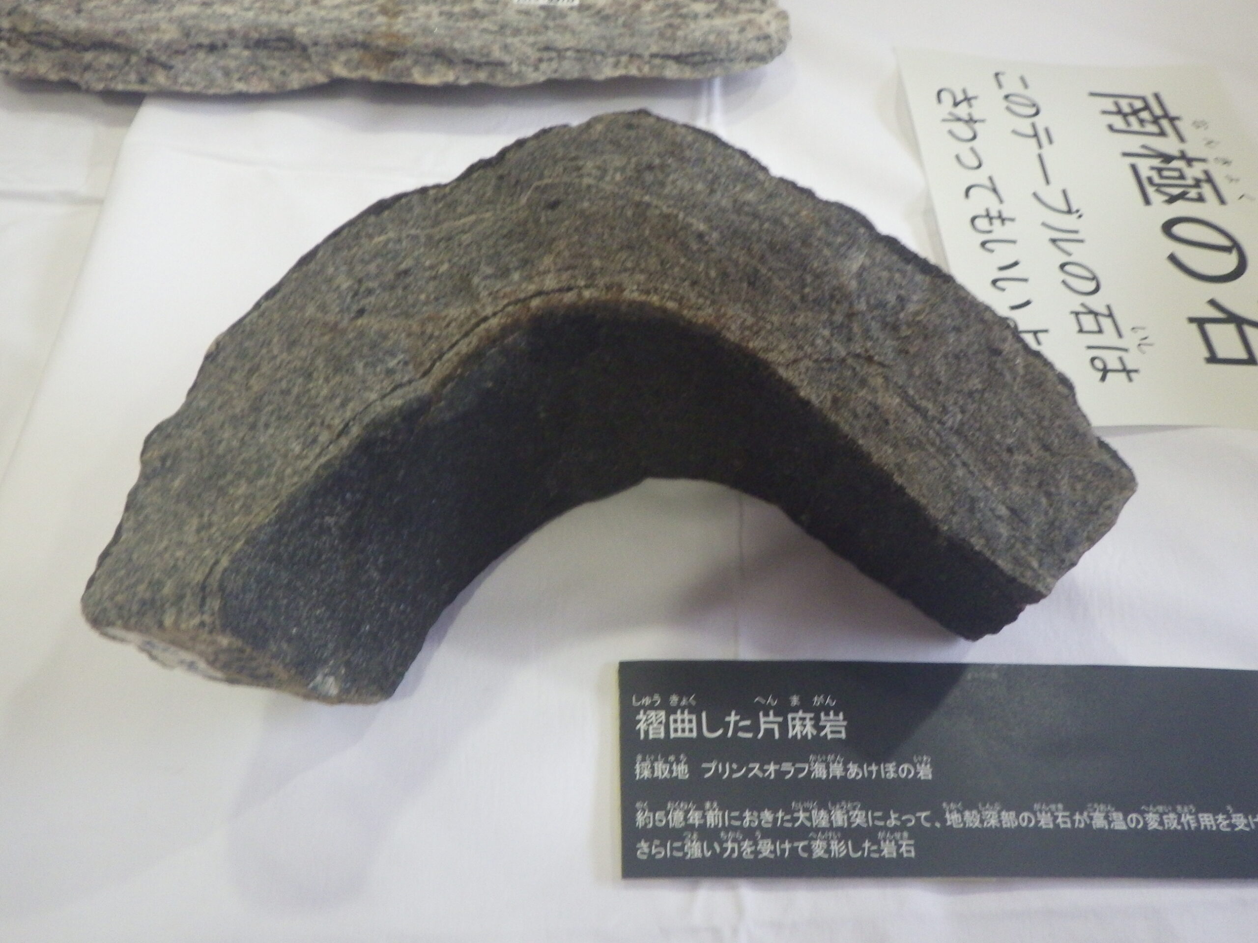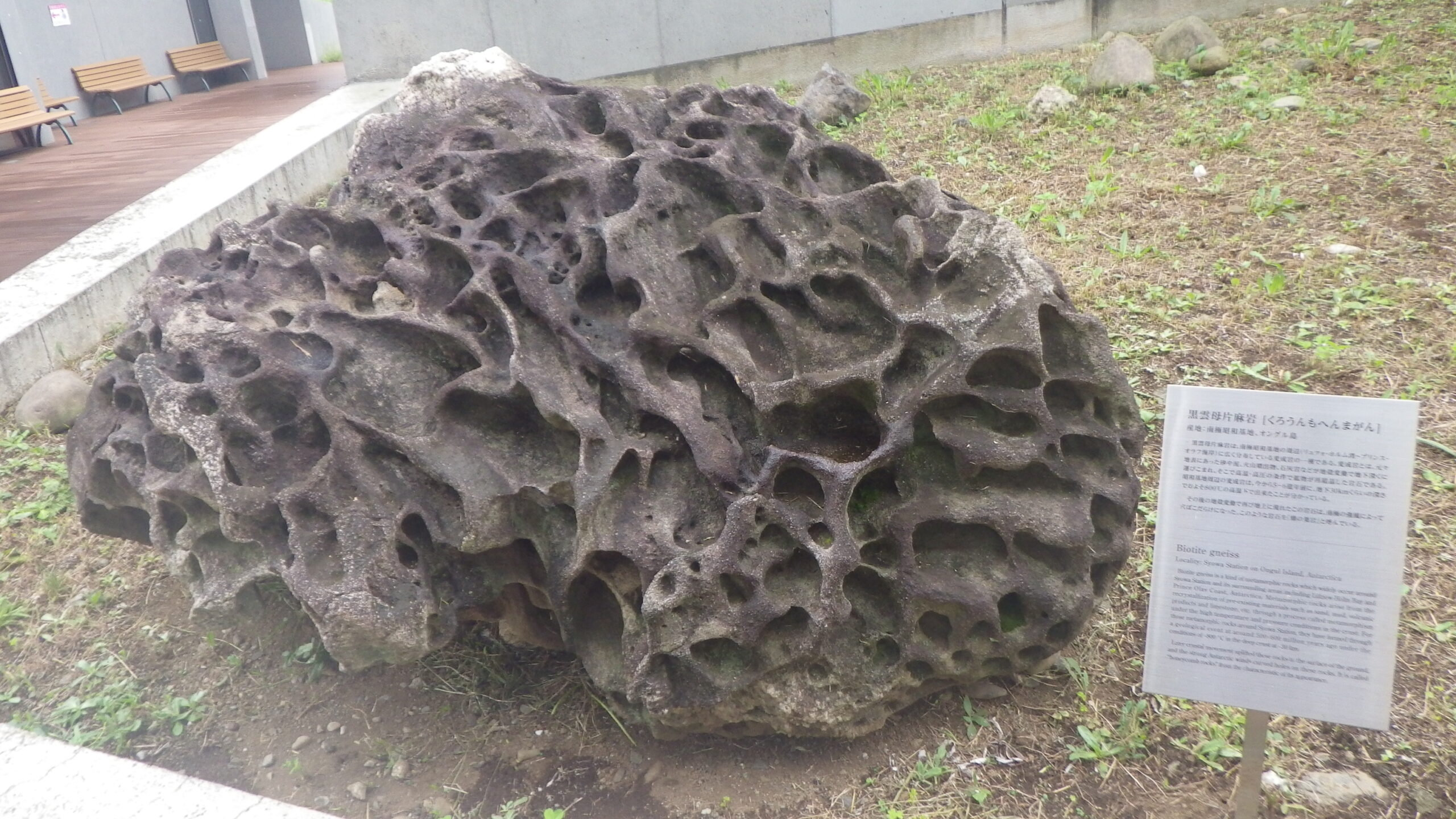 まずは、南極昭和基地、オングル島にあった「黒雲母片麻岩」がお出迎え。