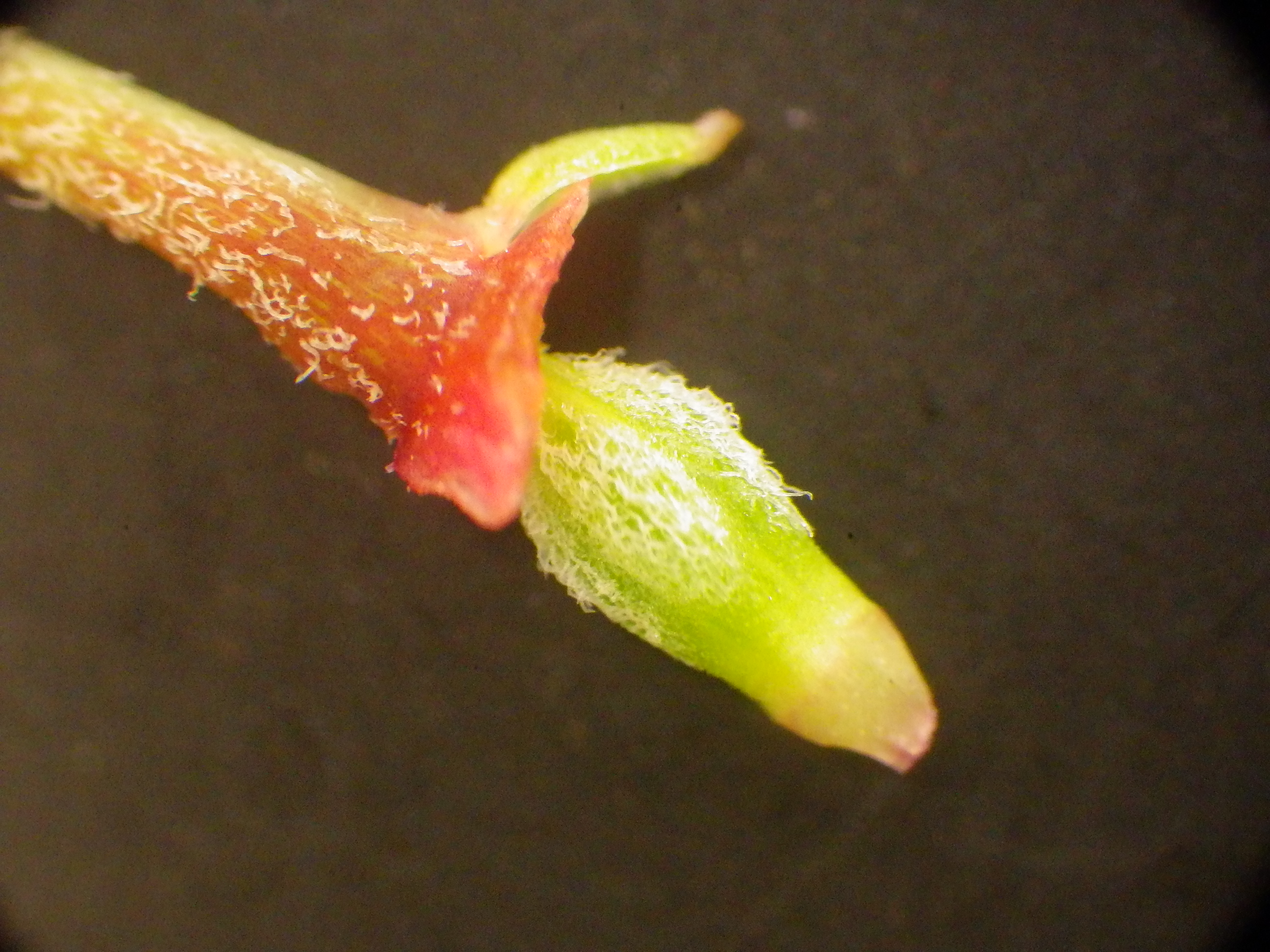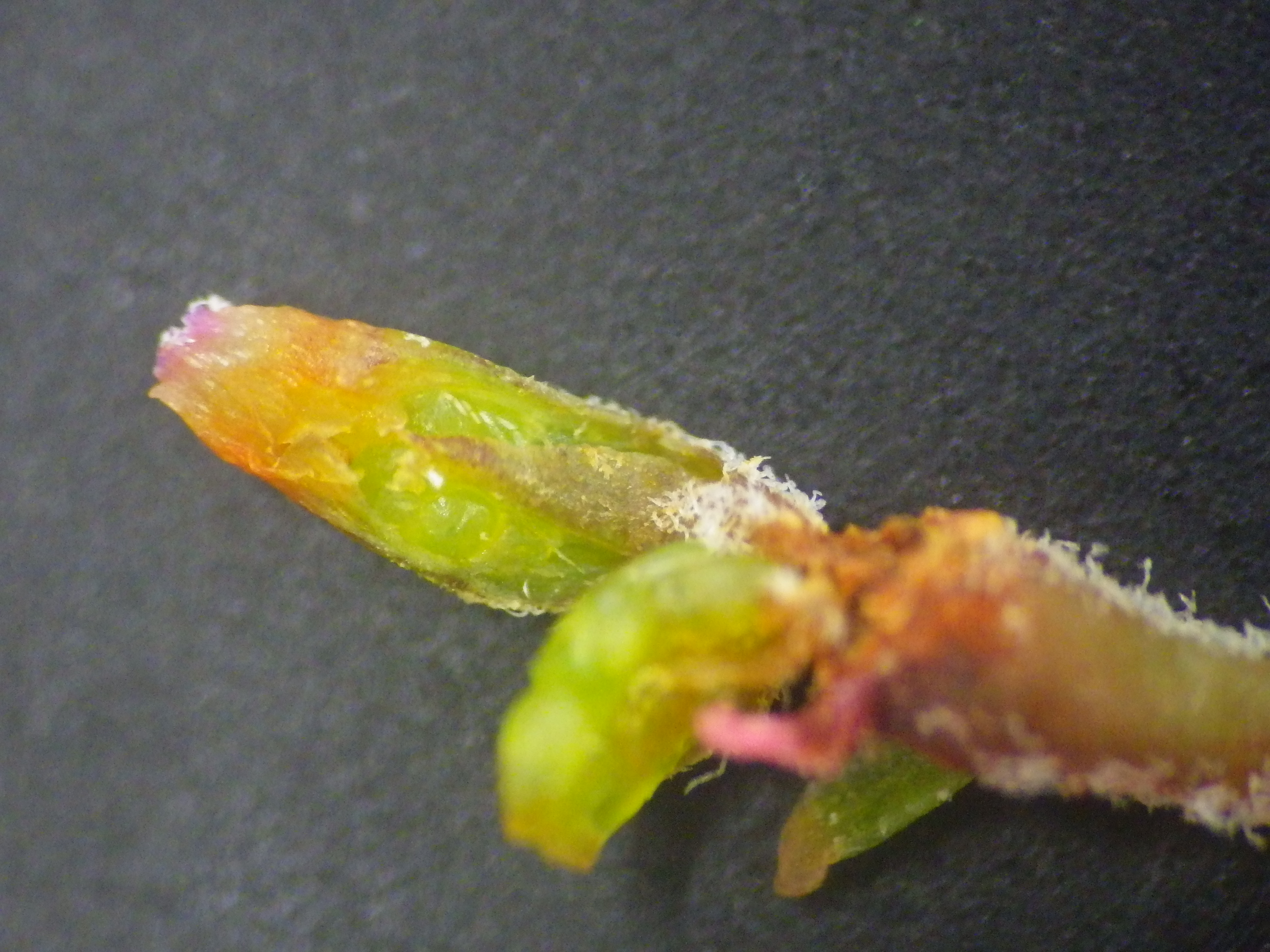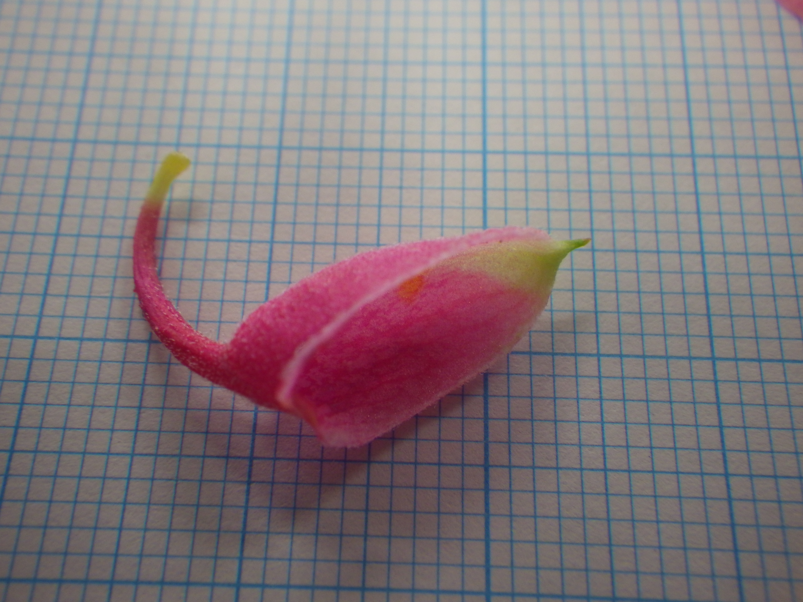 小さく左右にある緑色の部分、これが3枚あるがく片のうちの2枚です。