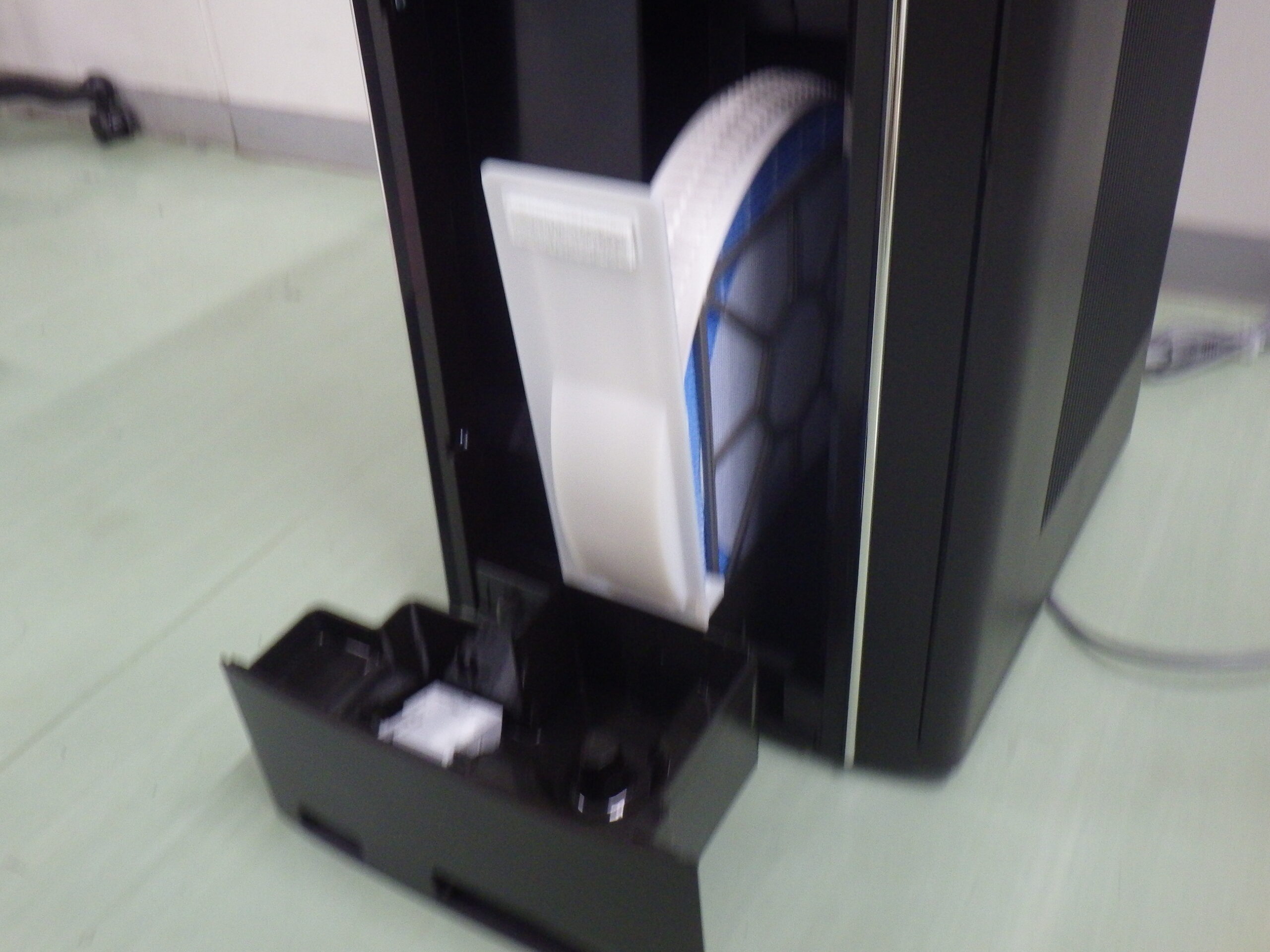 裏面にある蓋を開けてフィルターの袋を取って入れなおす。
