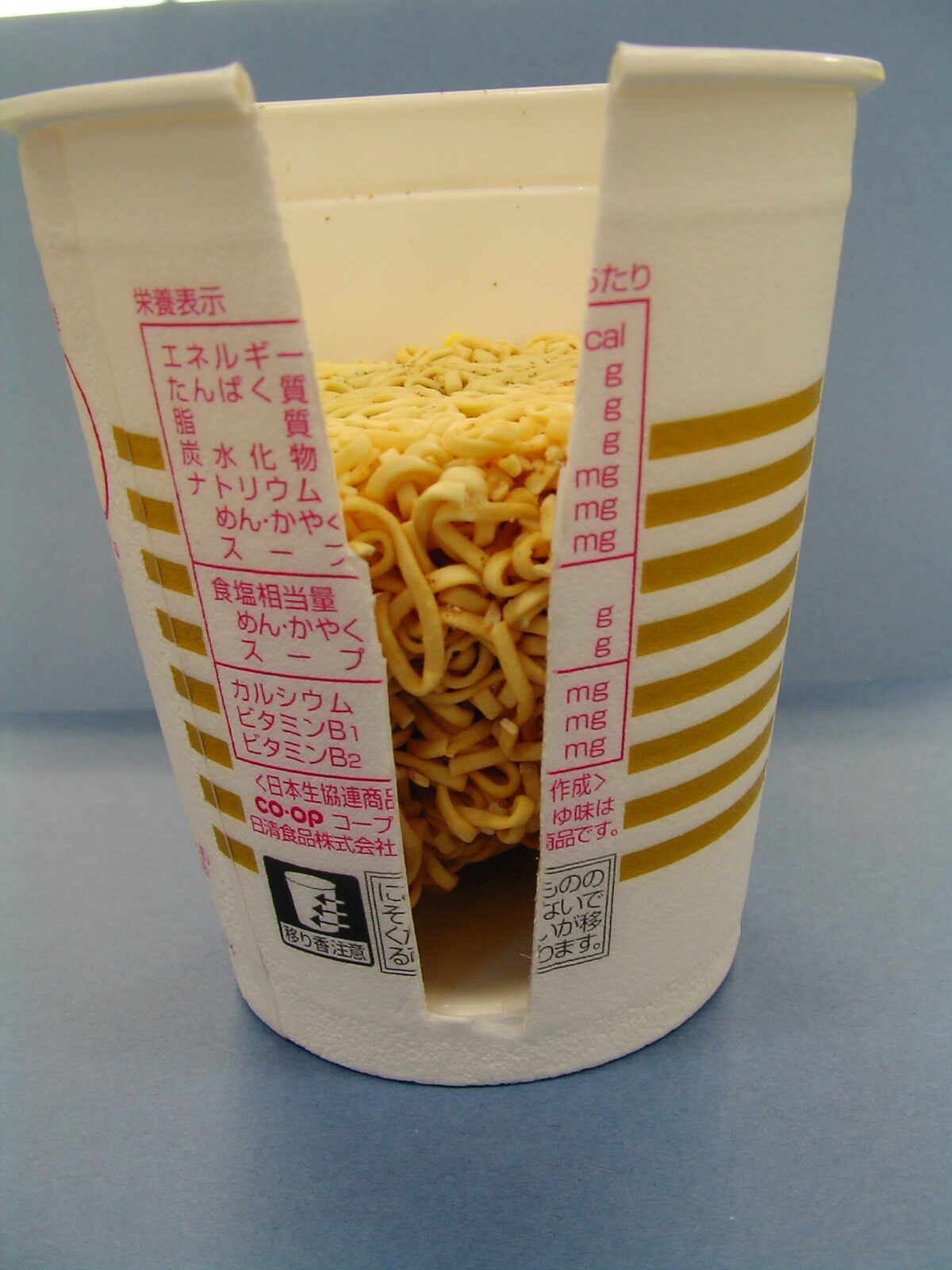 COOPヌードルの場合 左:上から見たようす 右:下から見たようす