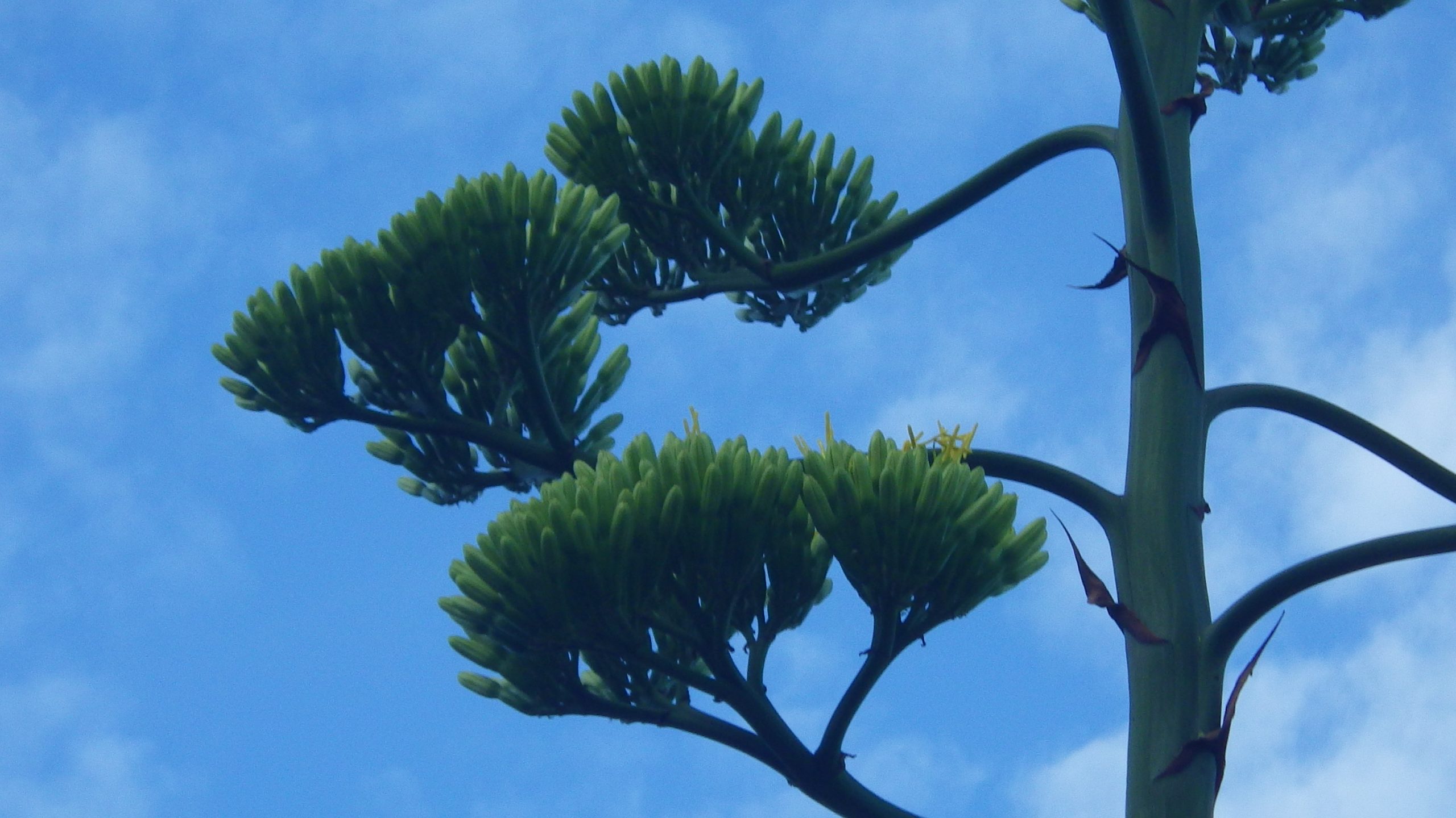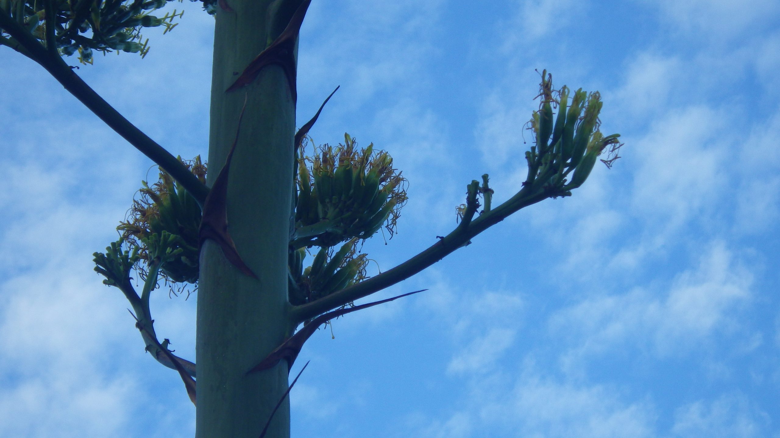 青い空、白い雲と妙にマッチしたアオノリュウゼツランでした。