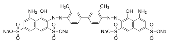 これもアゾ染料の一種で、死んだ組織や細胞だけを青色に染める生体染色剤として使われます。