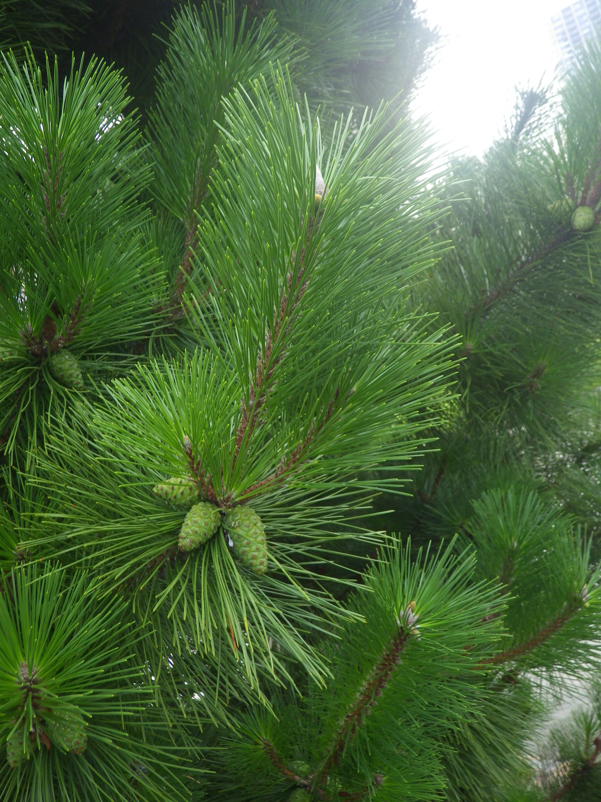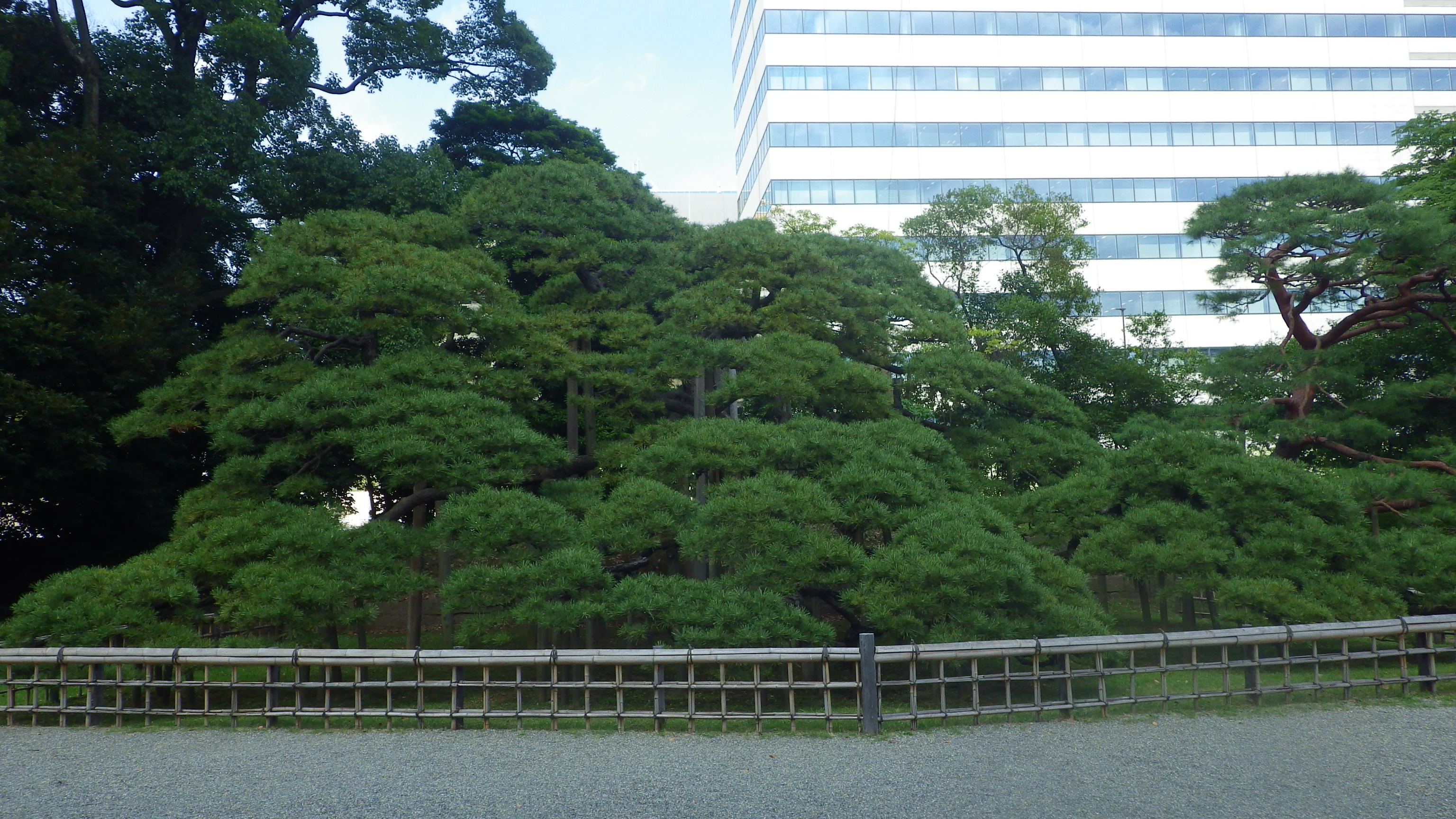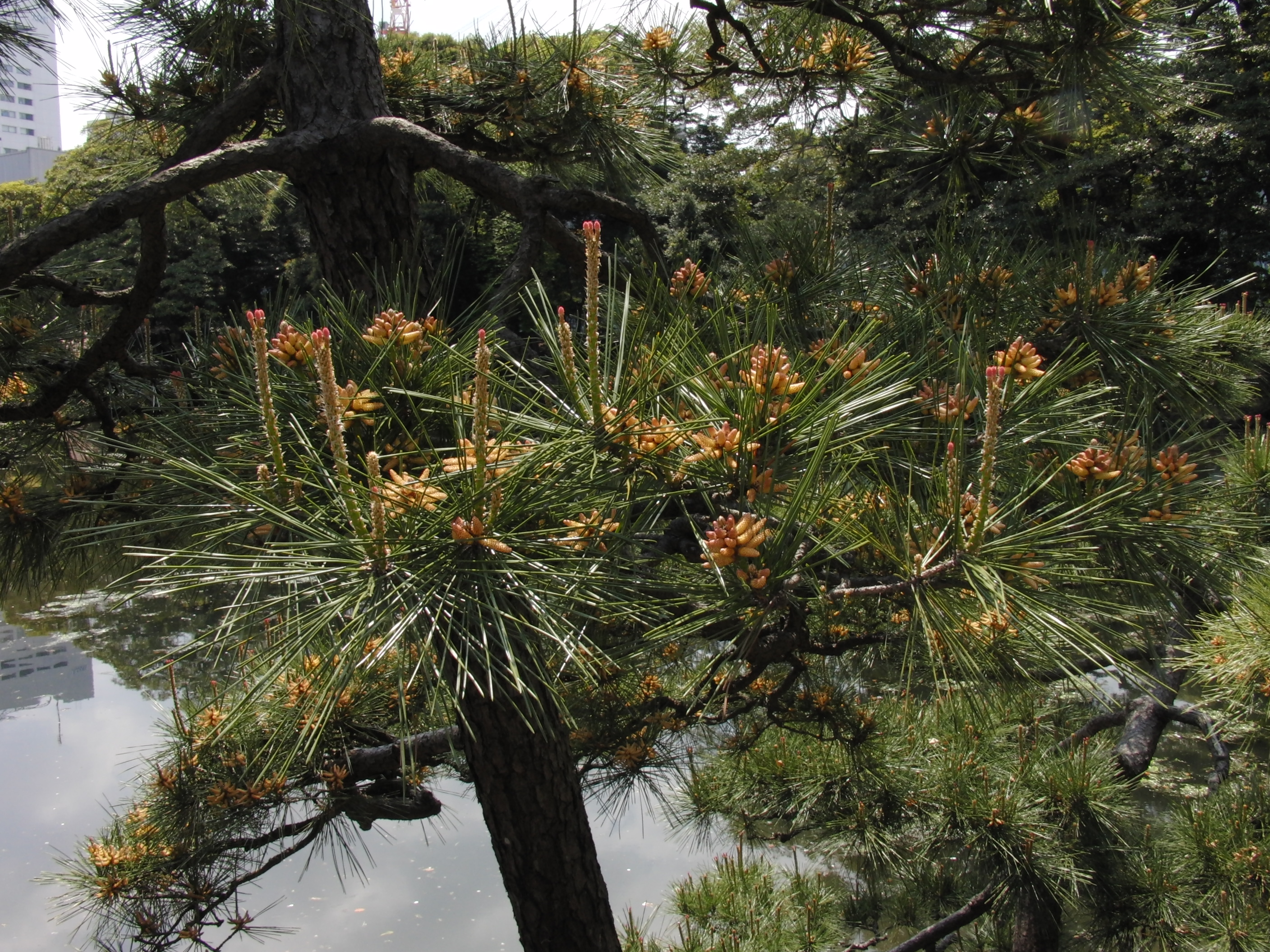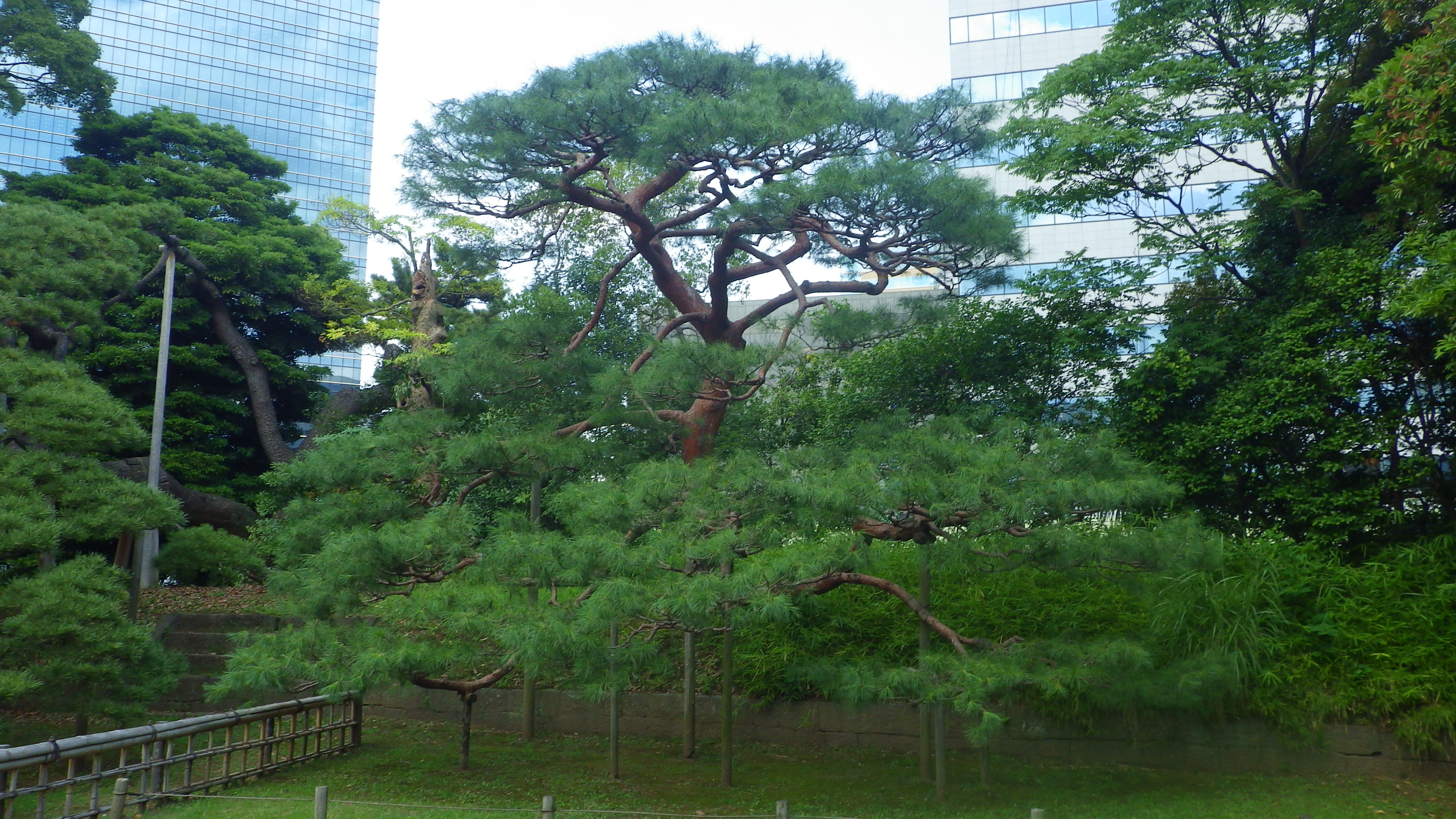 いずれも浜離宮恩賜庭園で撮影したものですが、左は「三百年の松」と言われるクロマツ、右はその隣に植えられていたアカマツです。樹皮の色を比べてみれば、名前の通りクロマツは黒いし、アカマツは赤くなっています。また、クロマツは針葉がかたいですが、アカマツはそれに比べると柔らかいという違いもあります。そのためかクロマツは「雄松」、アカマツは「雌松」とも呼ばれています。