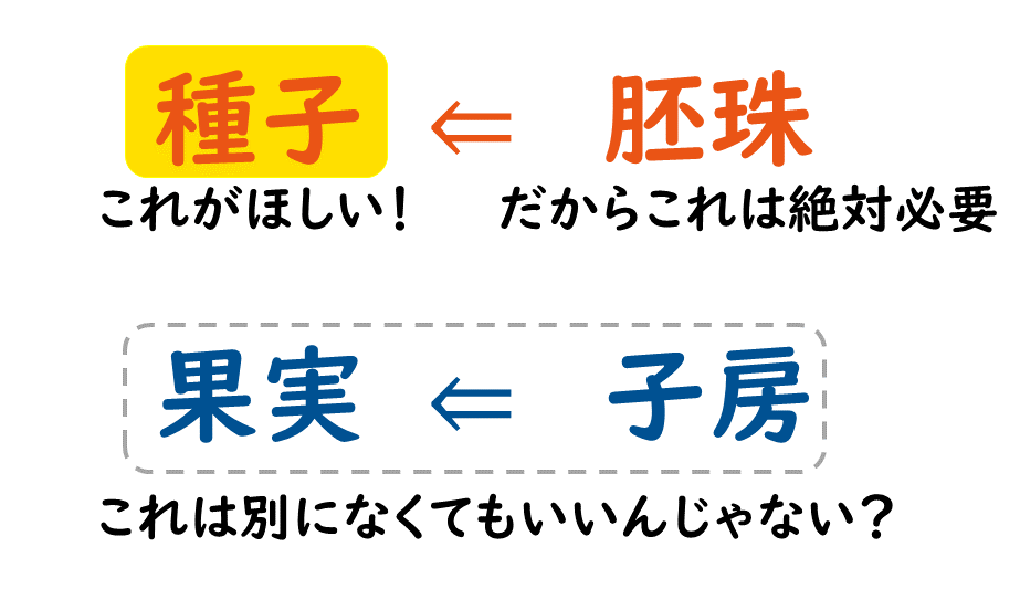 受粉すると、子房は果実に 胚珠は種子になる ということを前回学習しました。