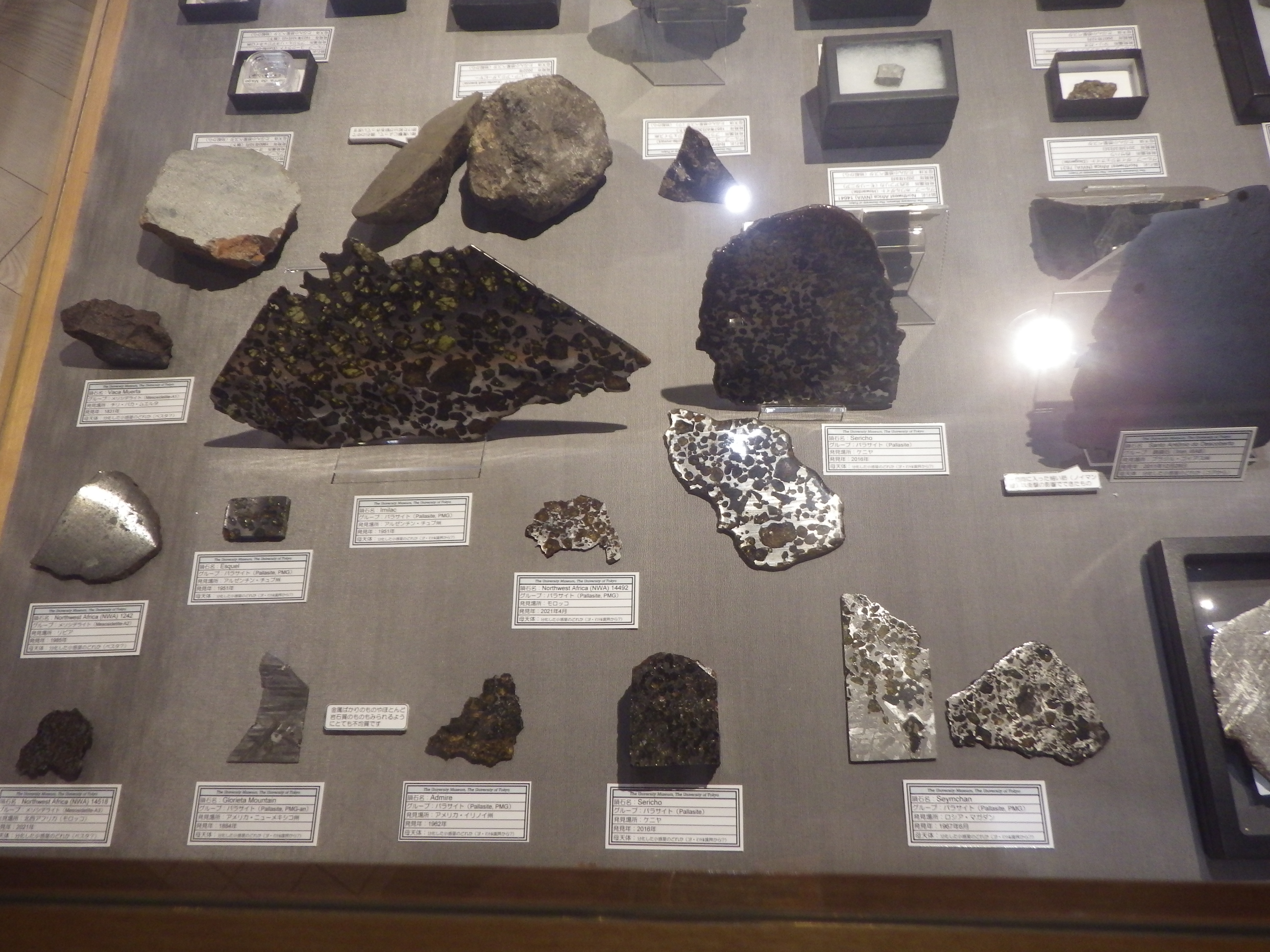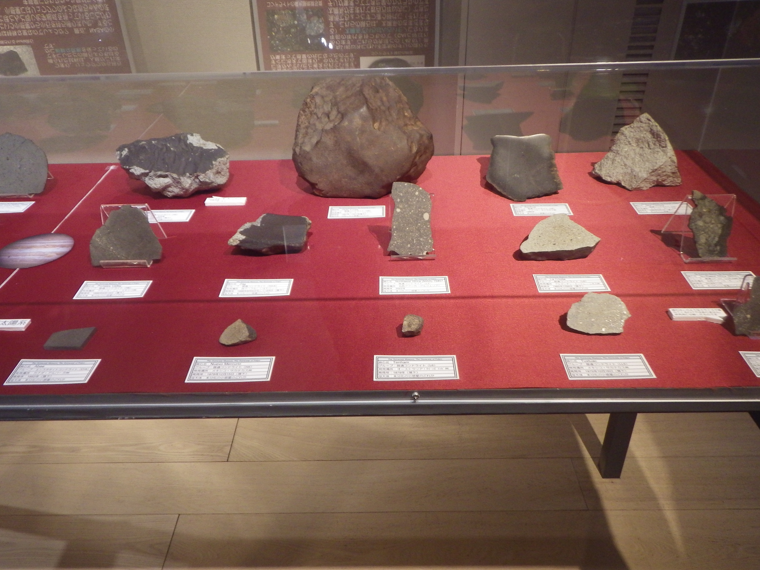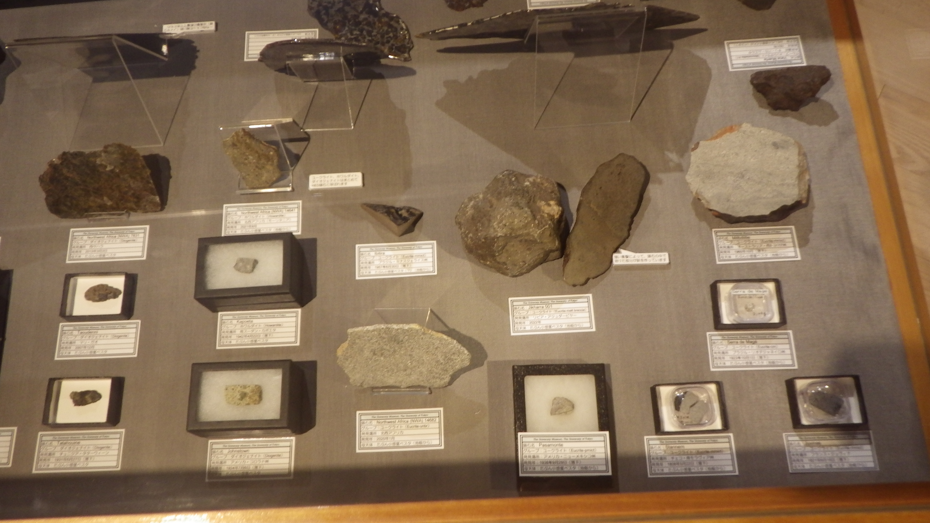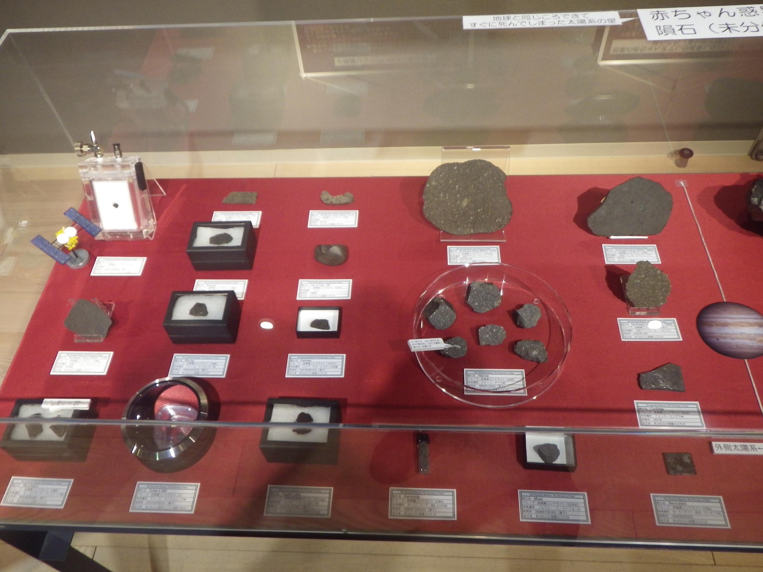 ちなみに、展示されている隕石は、真空ポンプで引いたデシケーターに保存されているものもあります。鉄が空気中の酸素で酸化しないようにするためです。