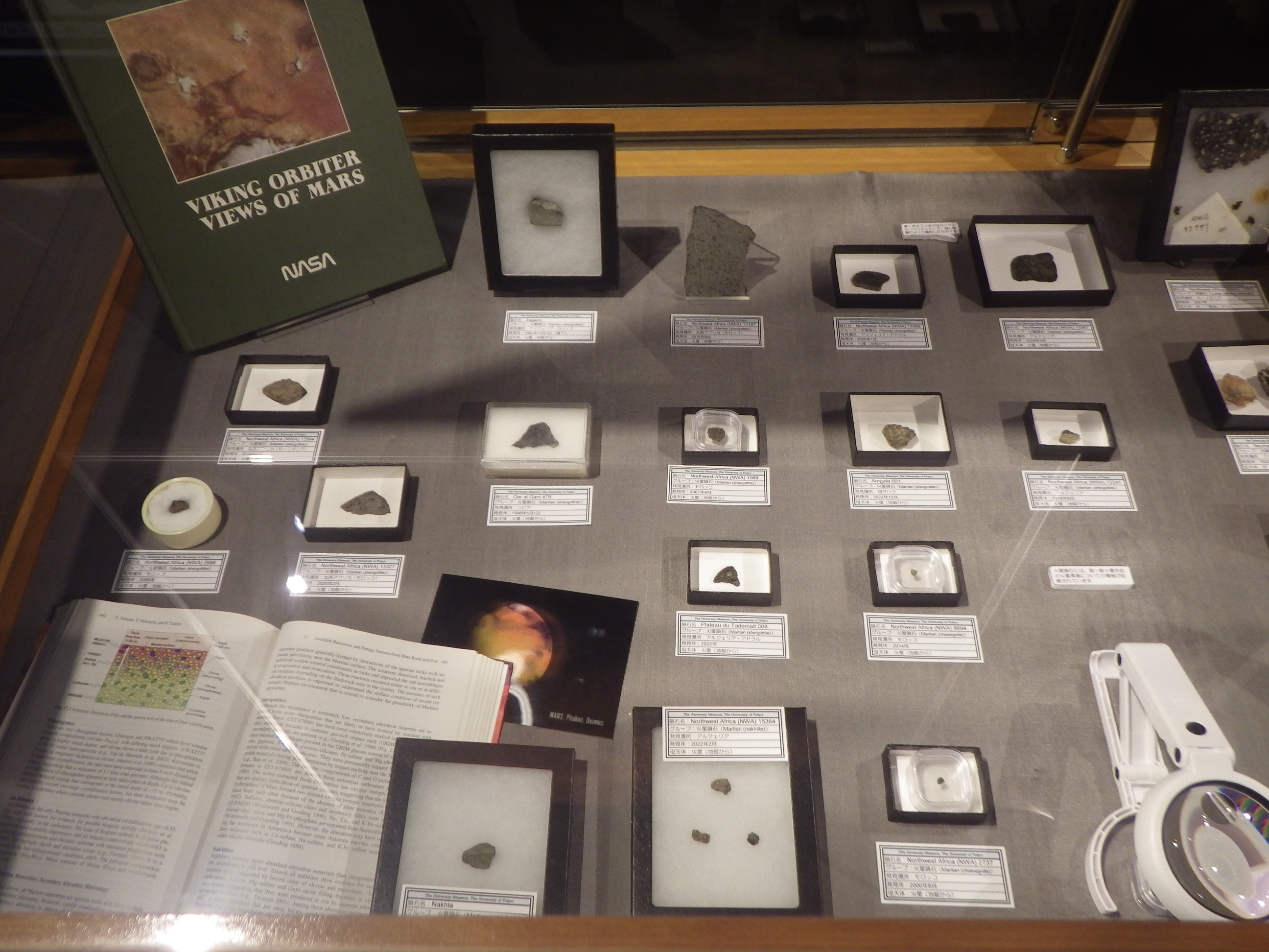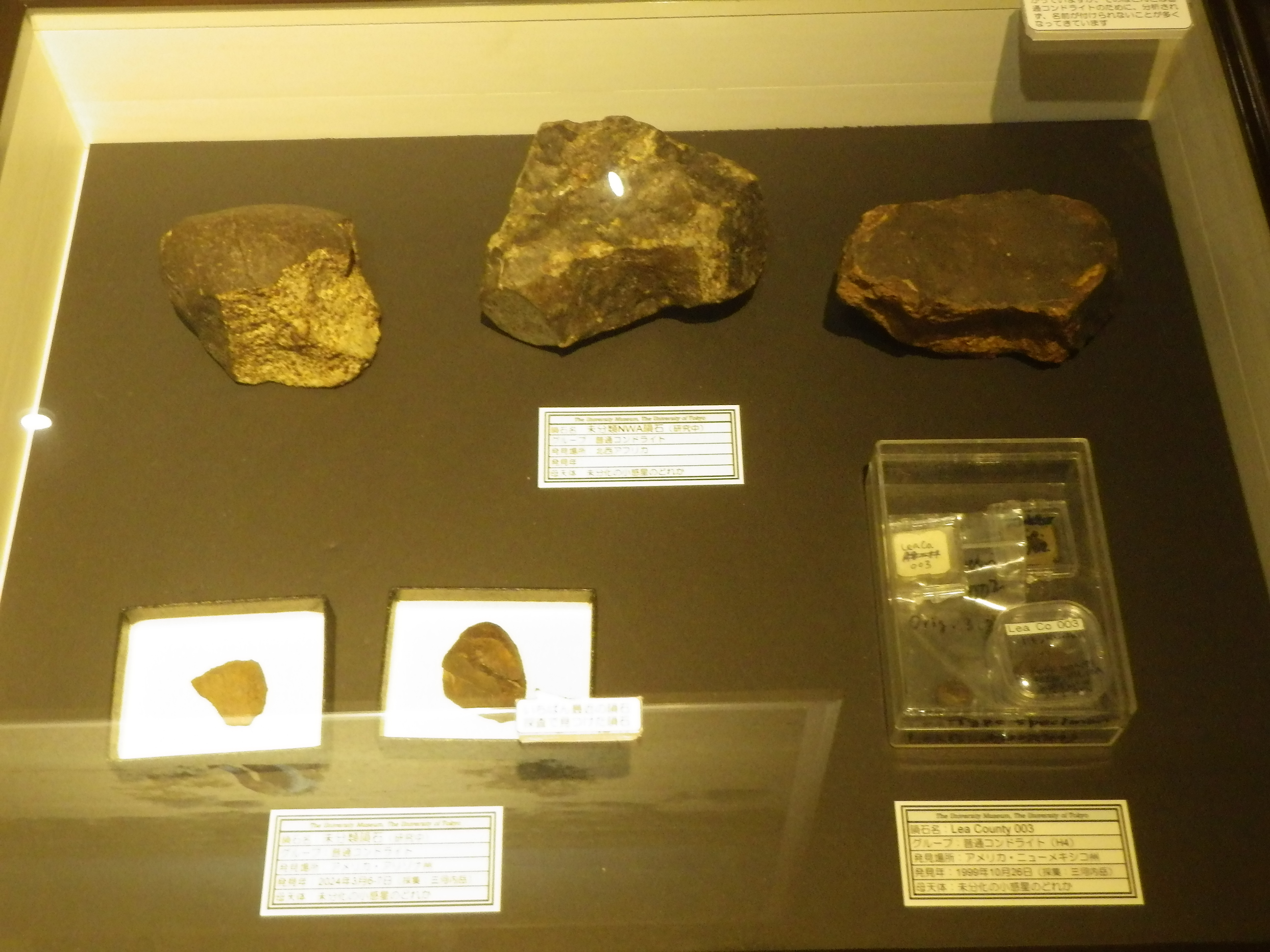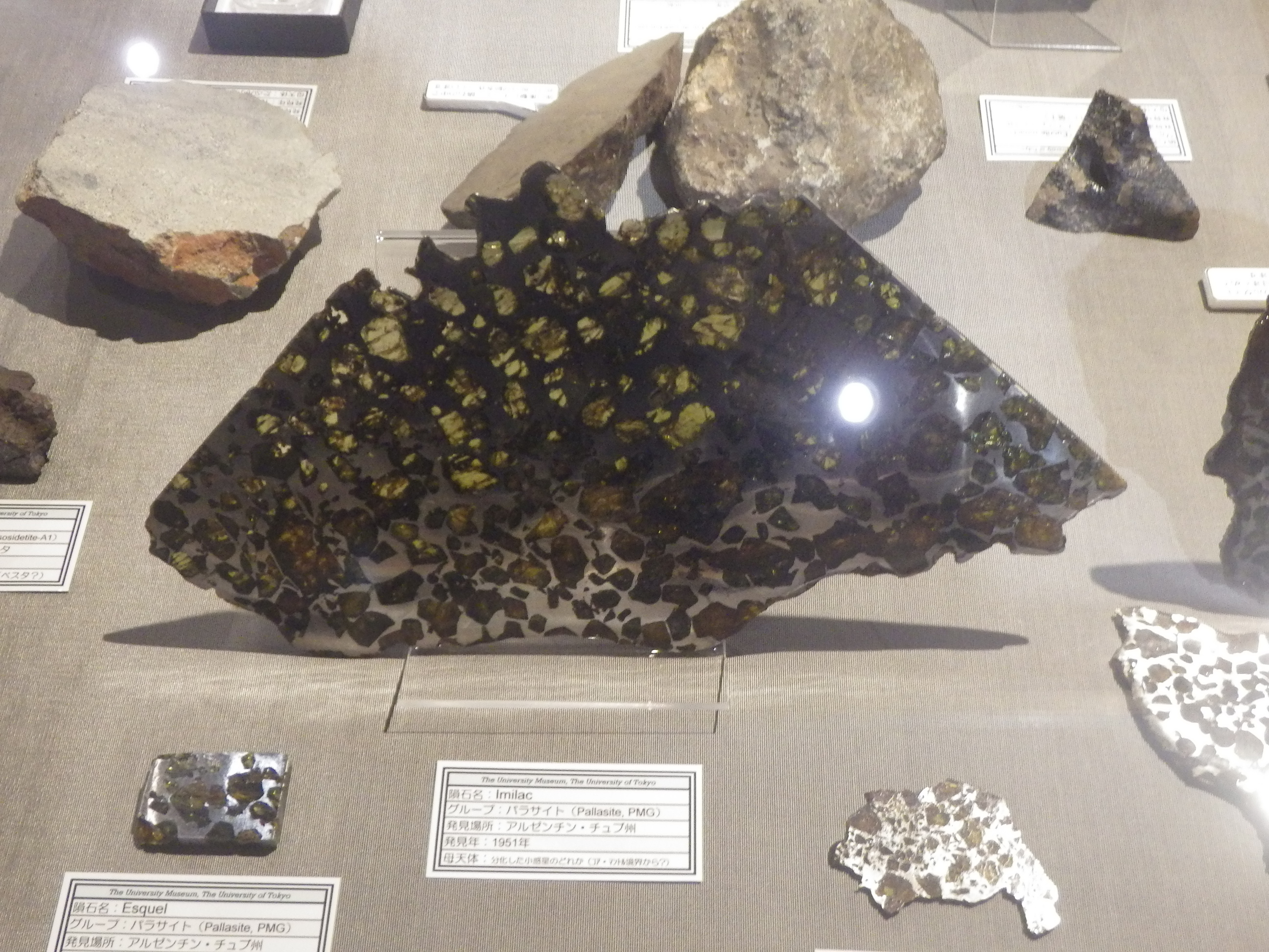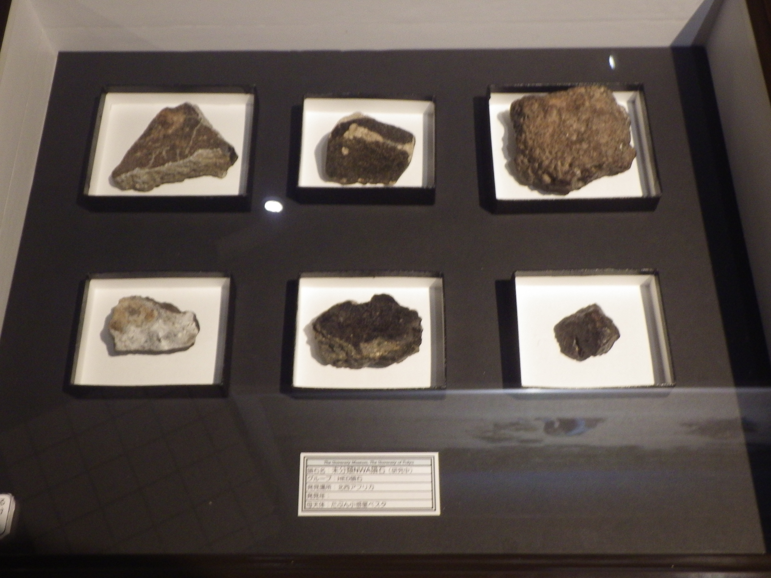 ちなみに、展示されている隕石は、真空ポンプで引いたデシケーターに保存されているものもあります。鉄が空気中の酸素で酸化しないようにするためです。