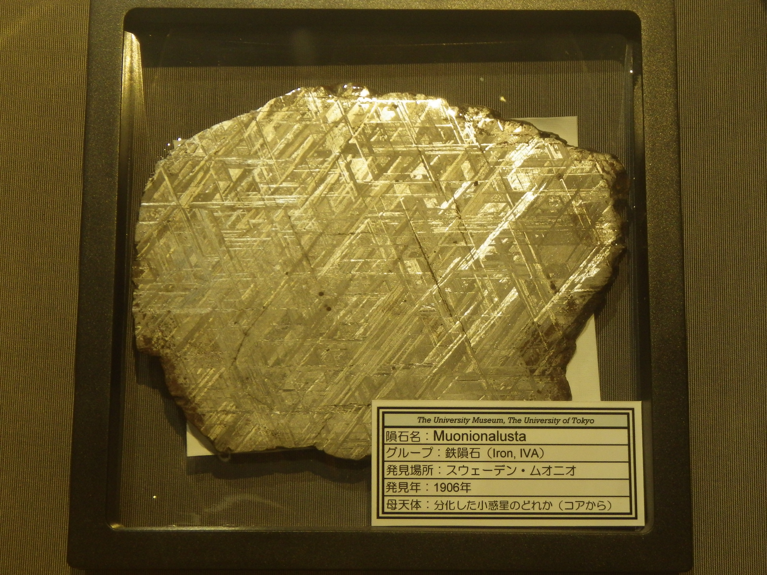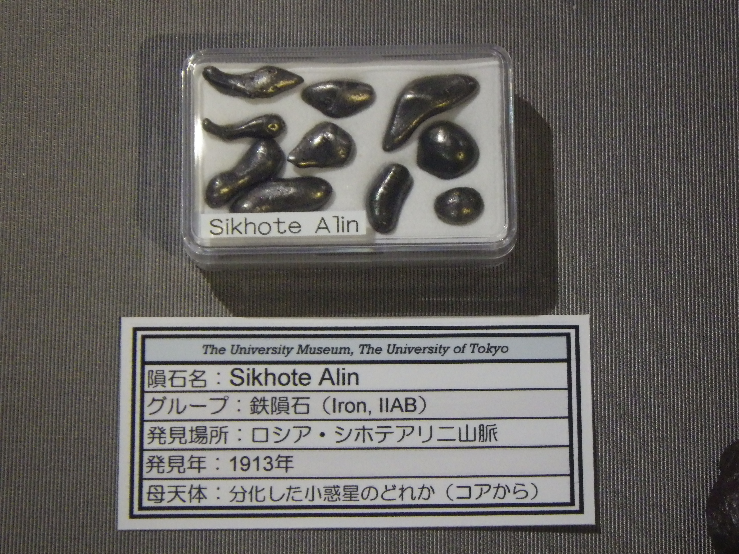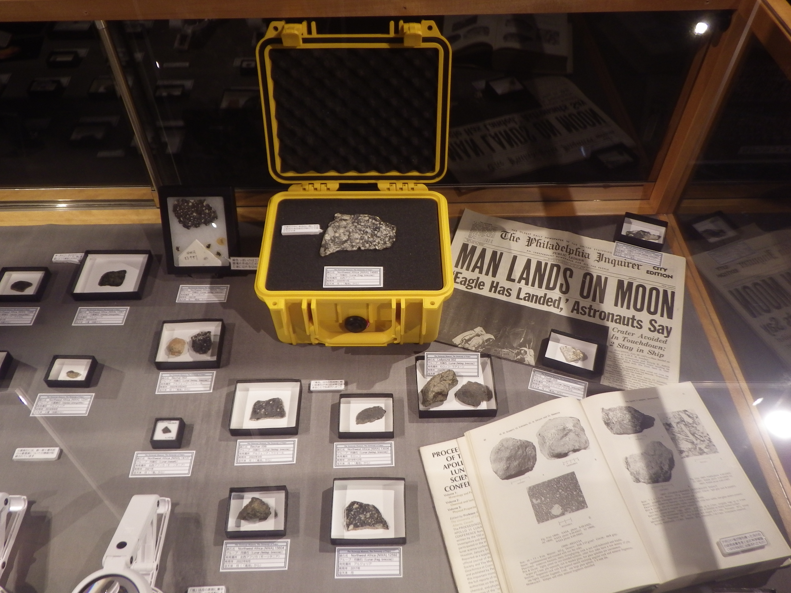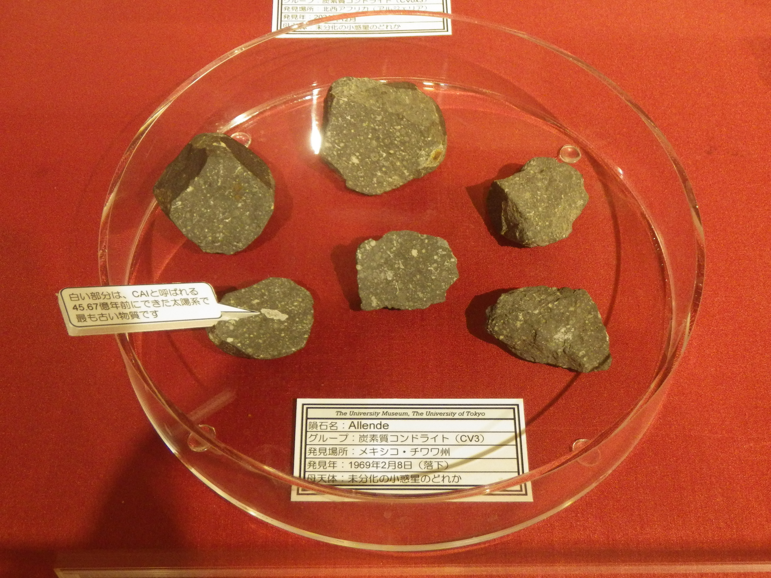 ちなみに、展示されている隕石は、真空ポンプで引いたデシケーターに保存されているものもあります。鉄が空気中の酸素で酸化しないようにするためです。