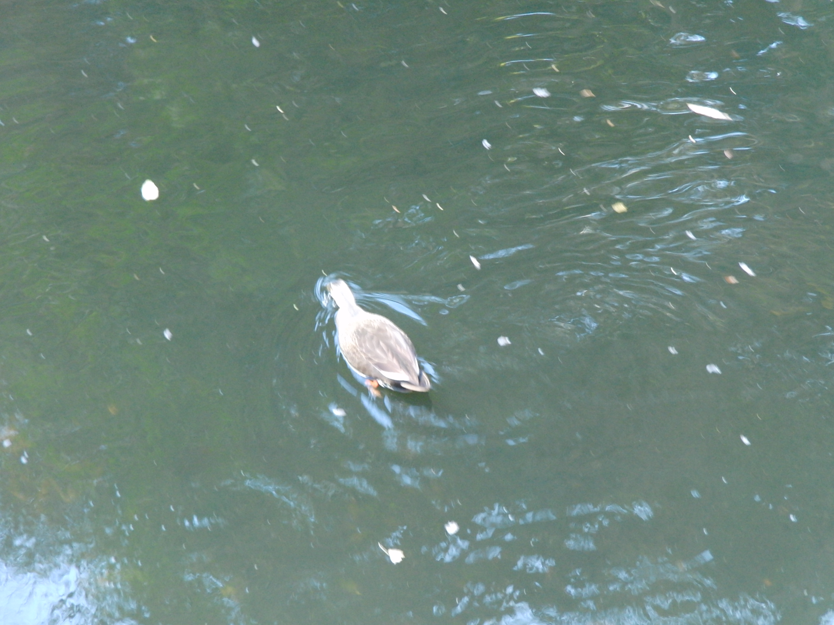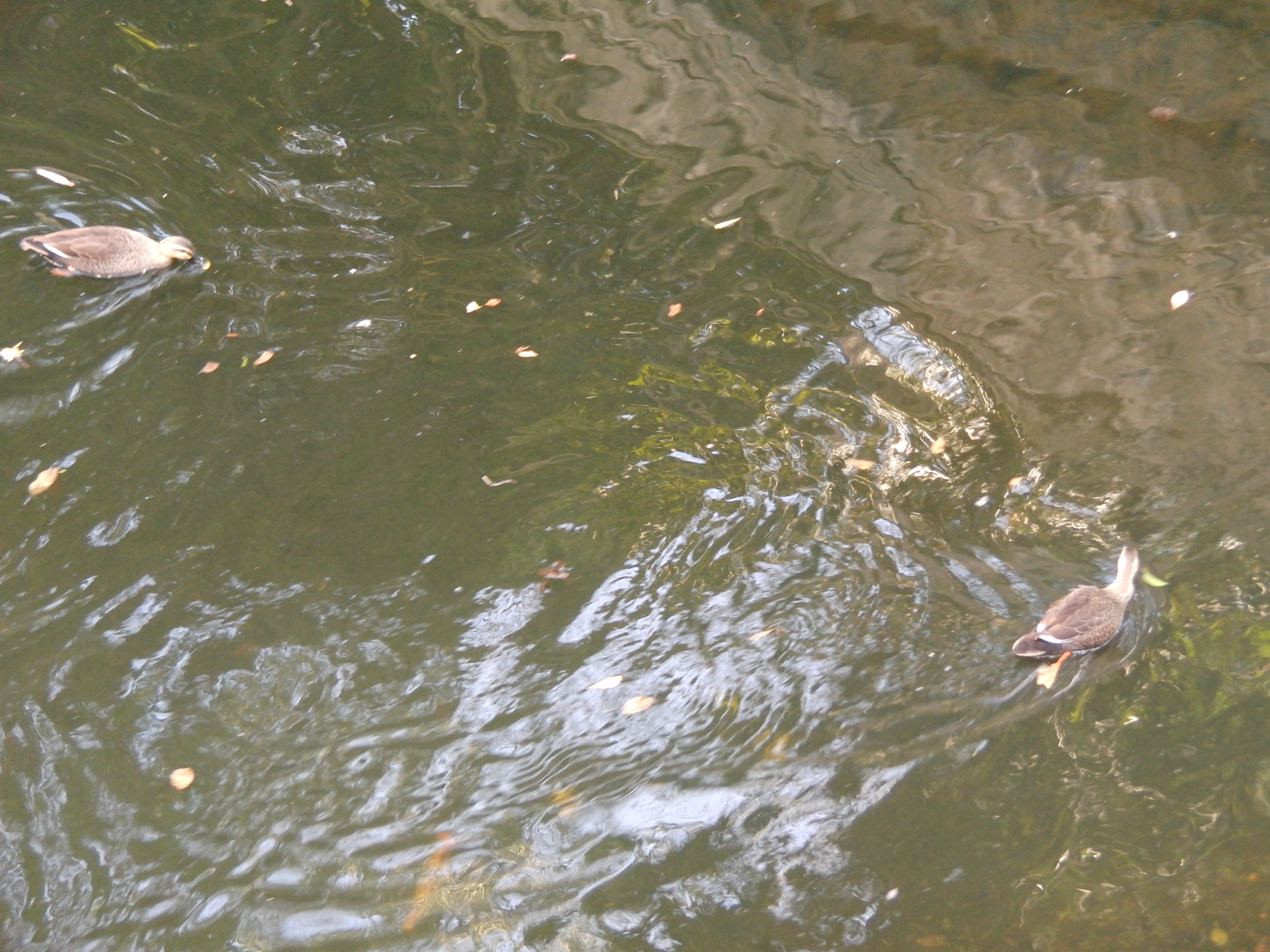 一方、水面では、カモが元気よく泳いでいました。