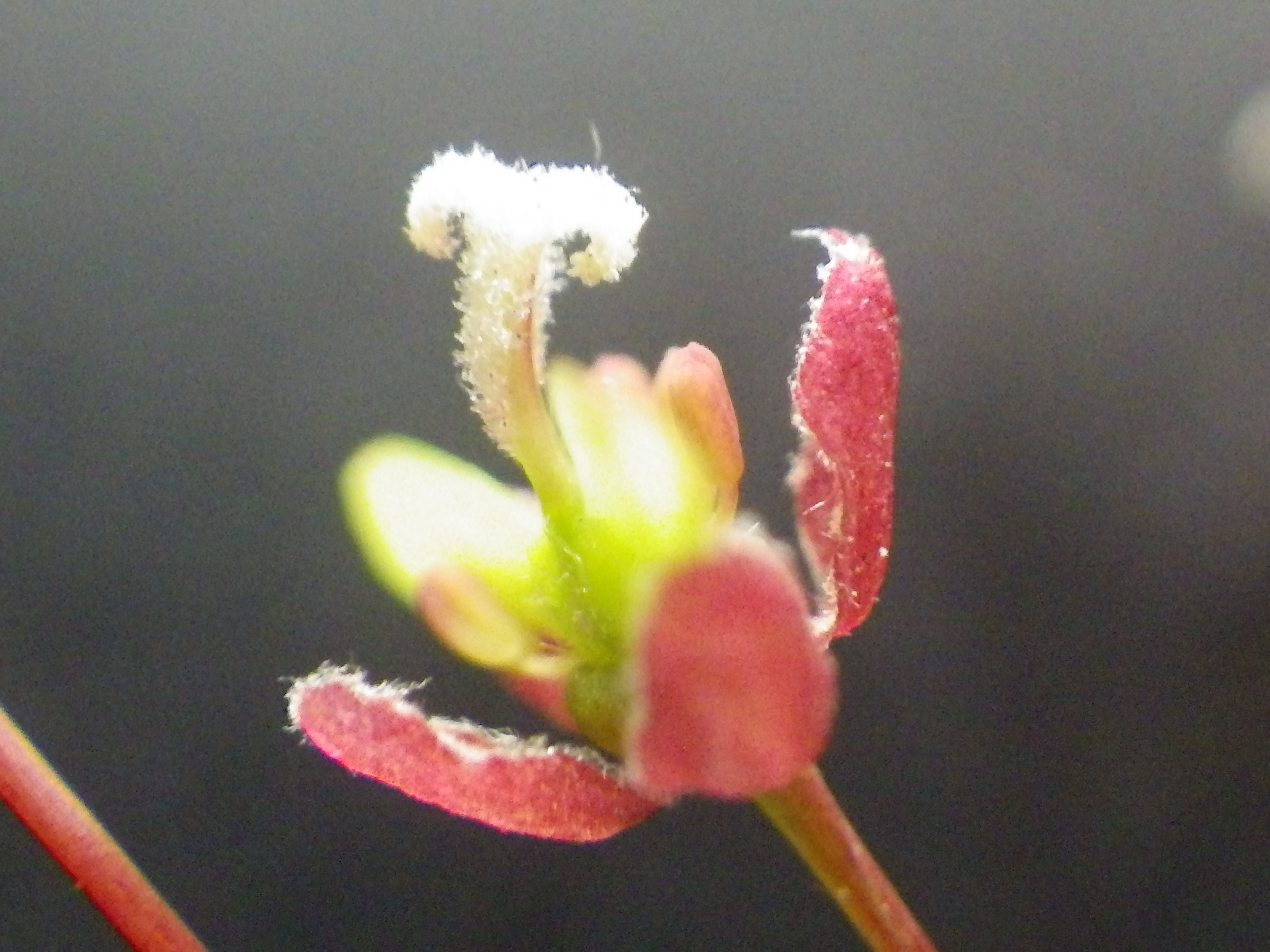 雌花です。正確にはおしべもあるので両性花なのですが、この花はおしべは役立たずなんだそうです。やっぱり、先端が丸まっているめしべが目立ちますよね。