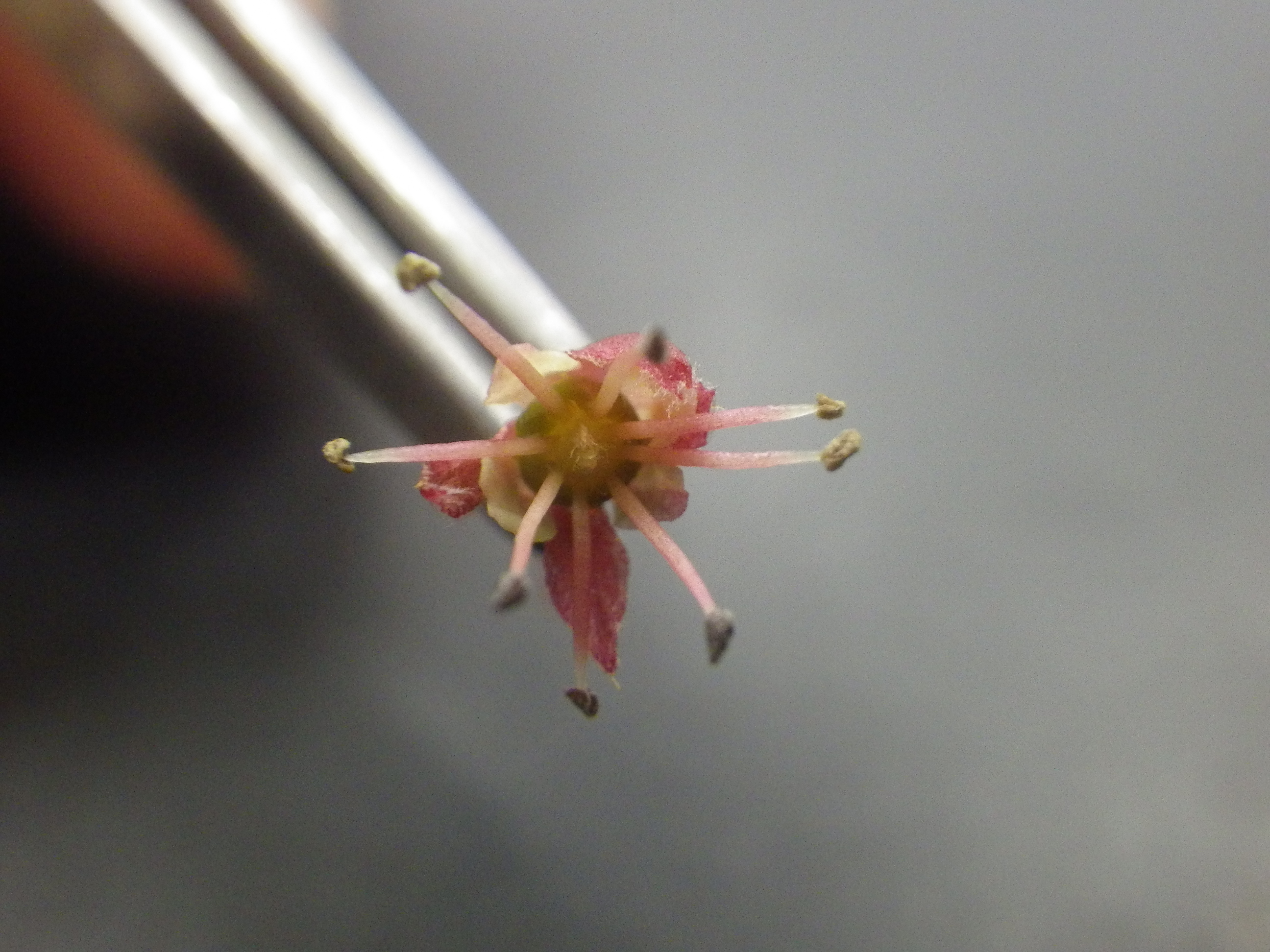 一つ一つ花をよく見てみると、枝分かれしている一連の花のうち一つだけ他と違うものがあります。