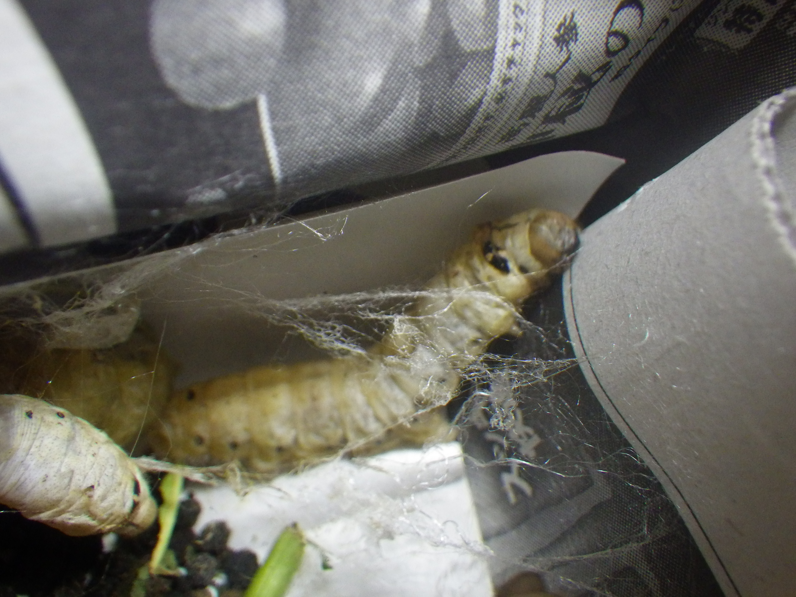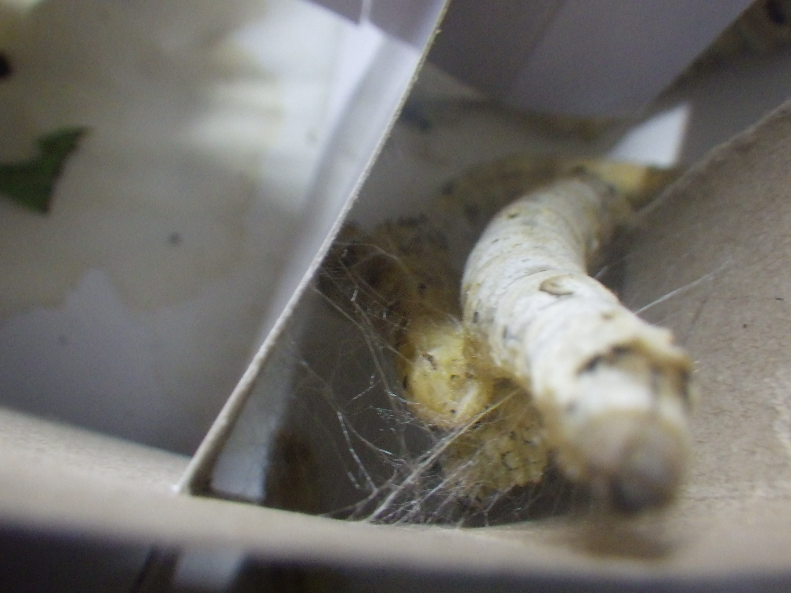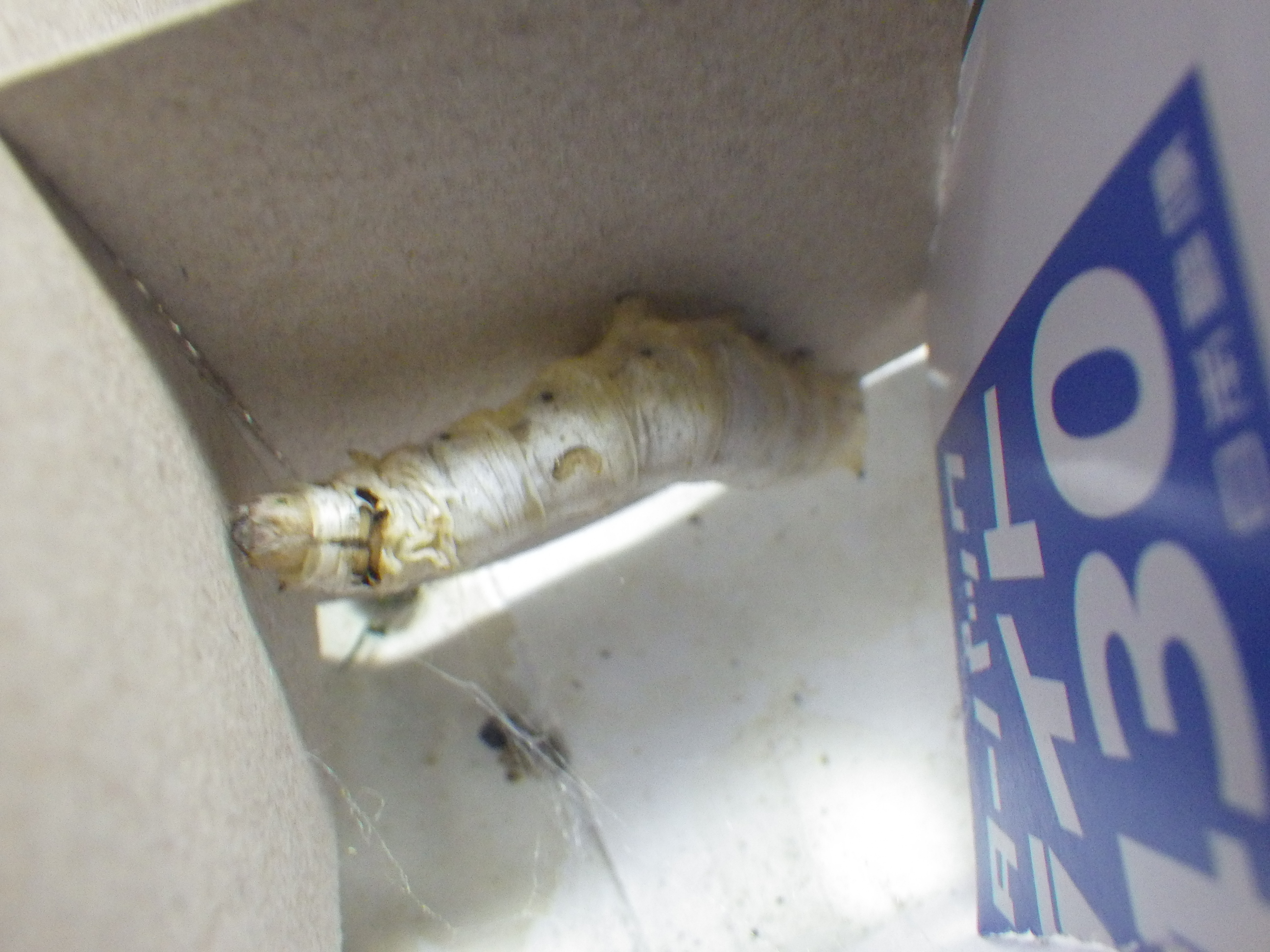 繭作ったり、桑食べたりと、元気なお蚕さん…ばかりだといいのですが、ちょっと状況が変わってきました。前日は確かにいなかったのに…
