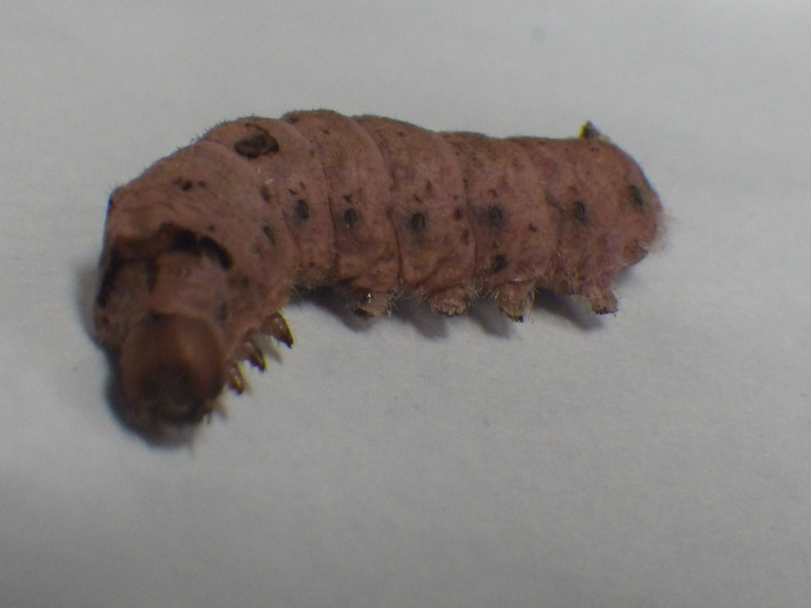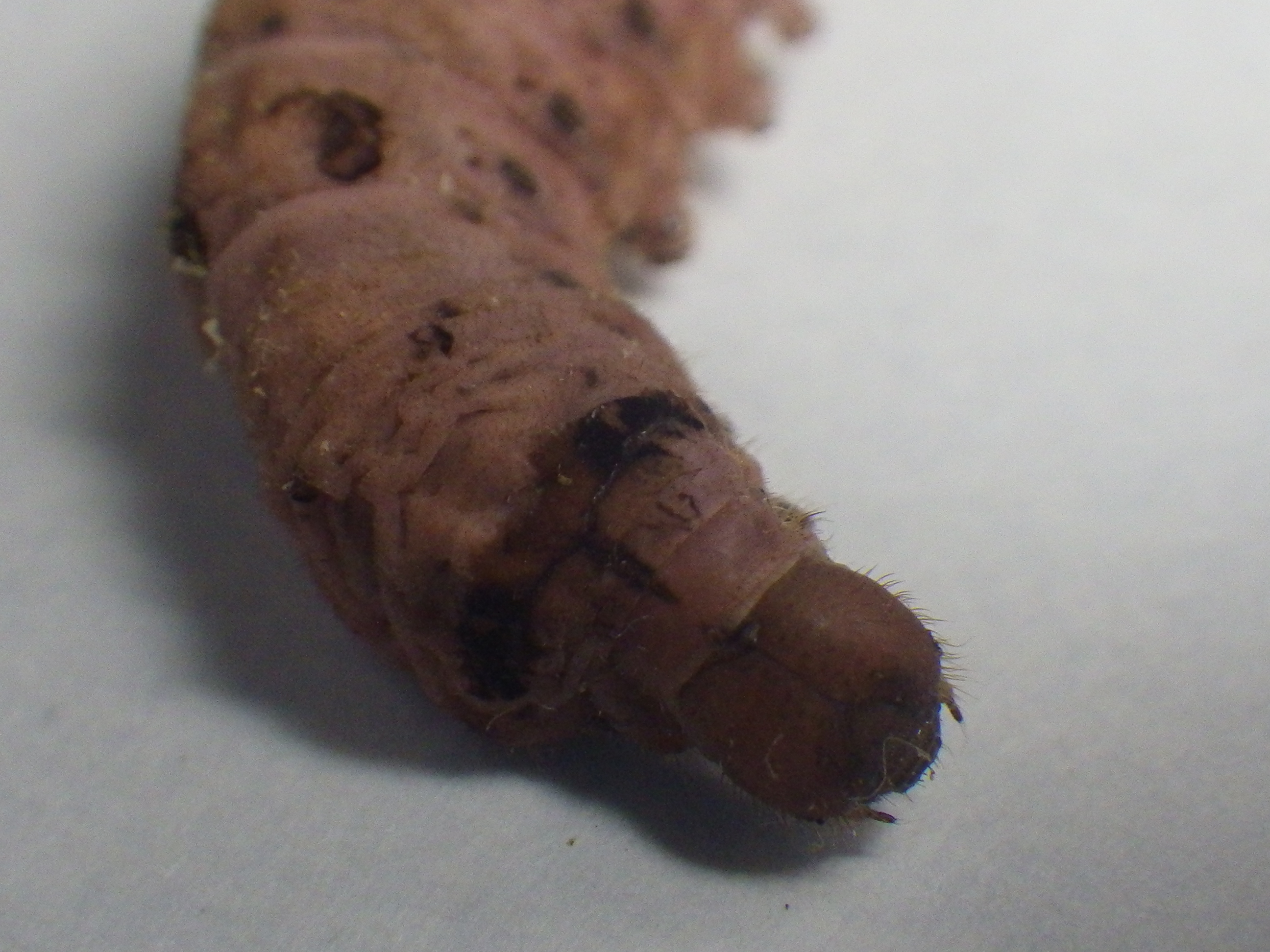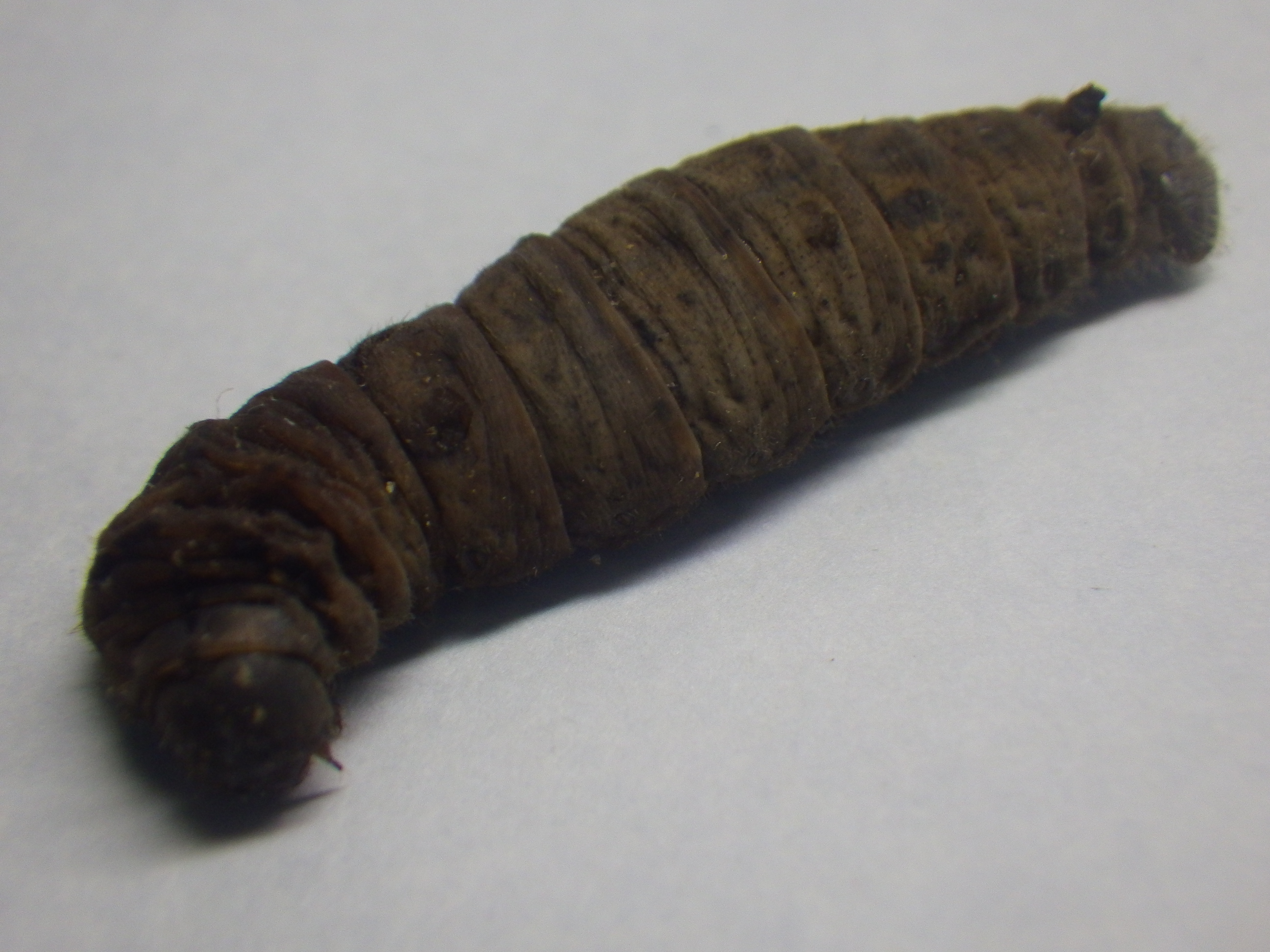 東京農工大学科学博物館にある蚕病模型と照らし合わせてみると、褐殭病などの菌類(つまりカビ)の病気の色違いのように見えます。実際に黒殭病(くろきょうびょう,Metarhiziumanisopliae)という病気があるのね。