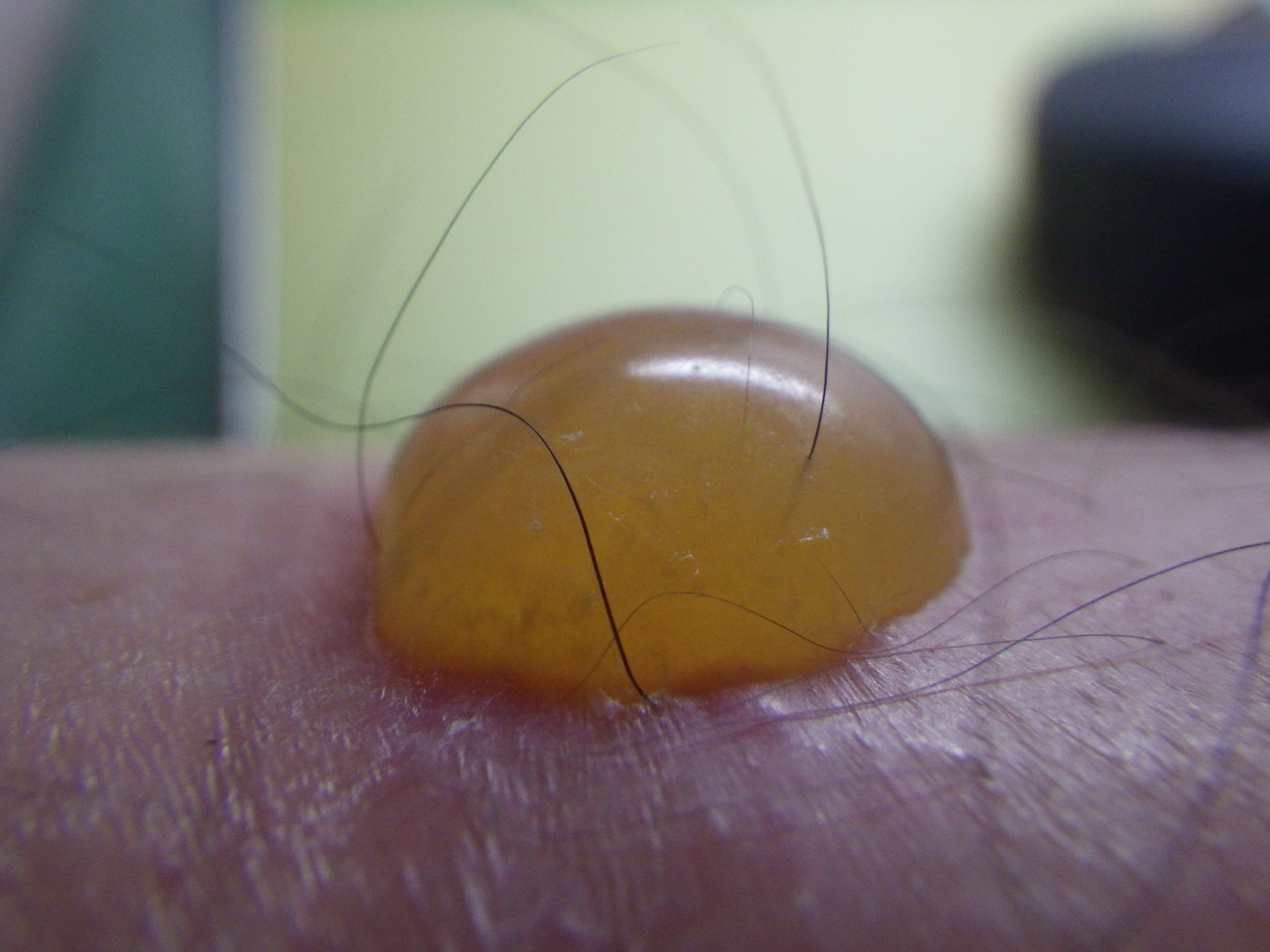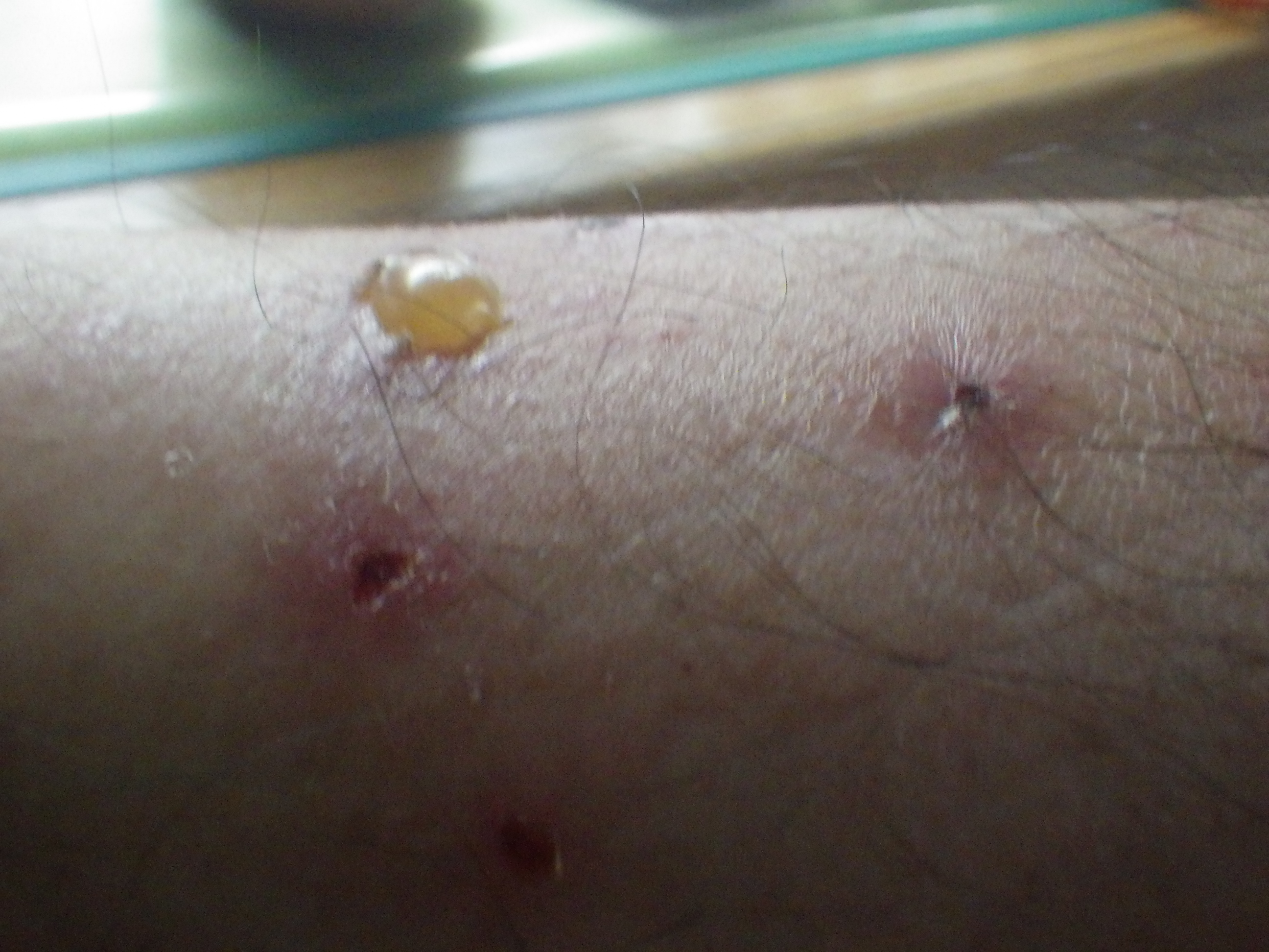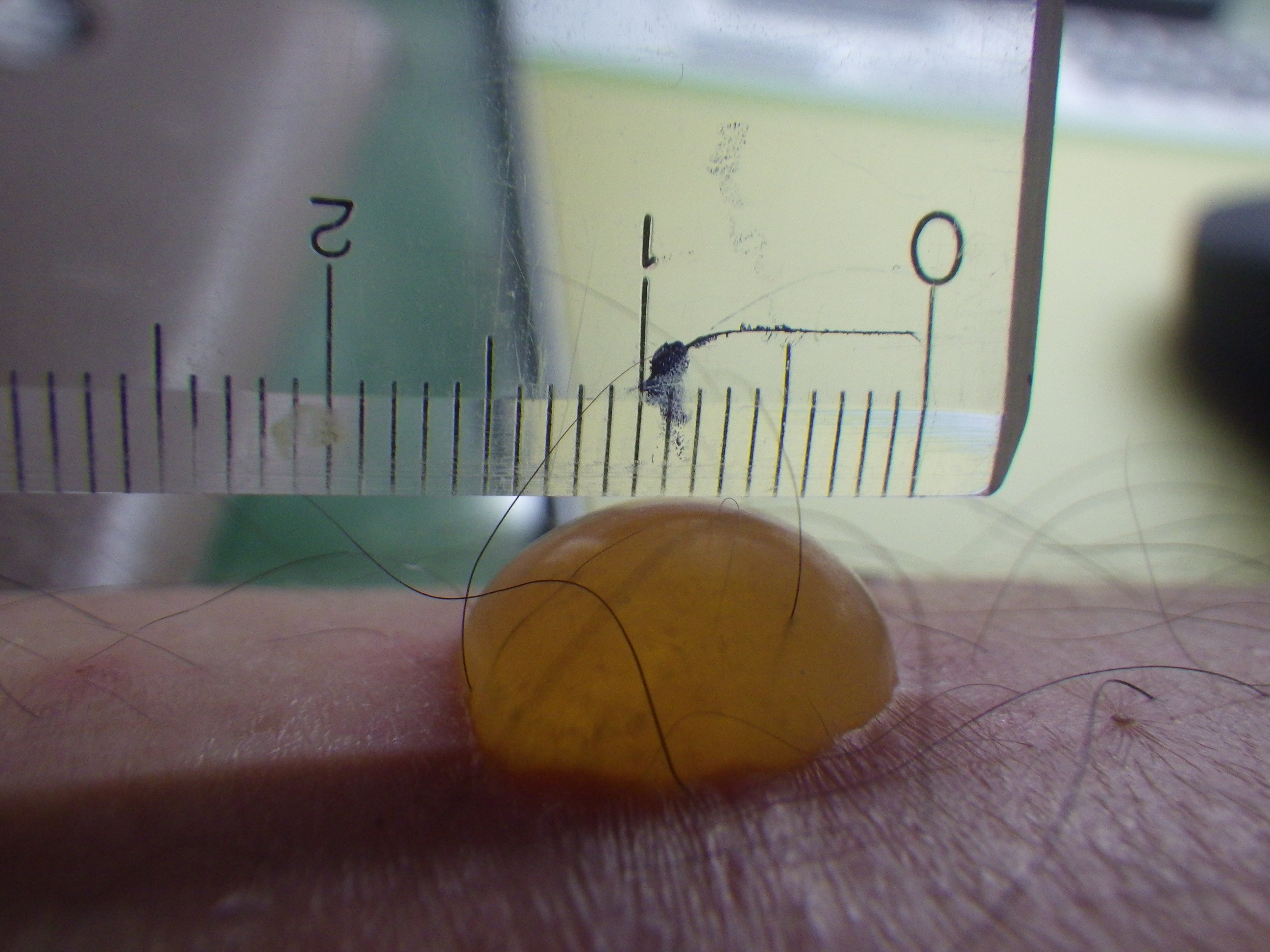 7月23日。見ると…こらまた立派な水泡(水ぶくれ)ができていました。膿疱ってやつだな。直径7~8mmというところでしょうか。