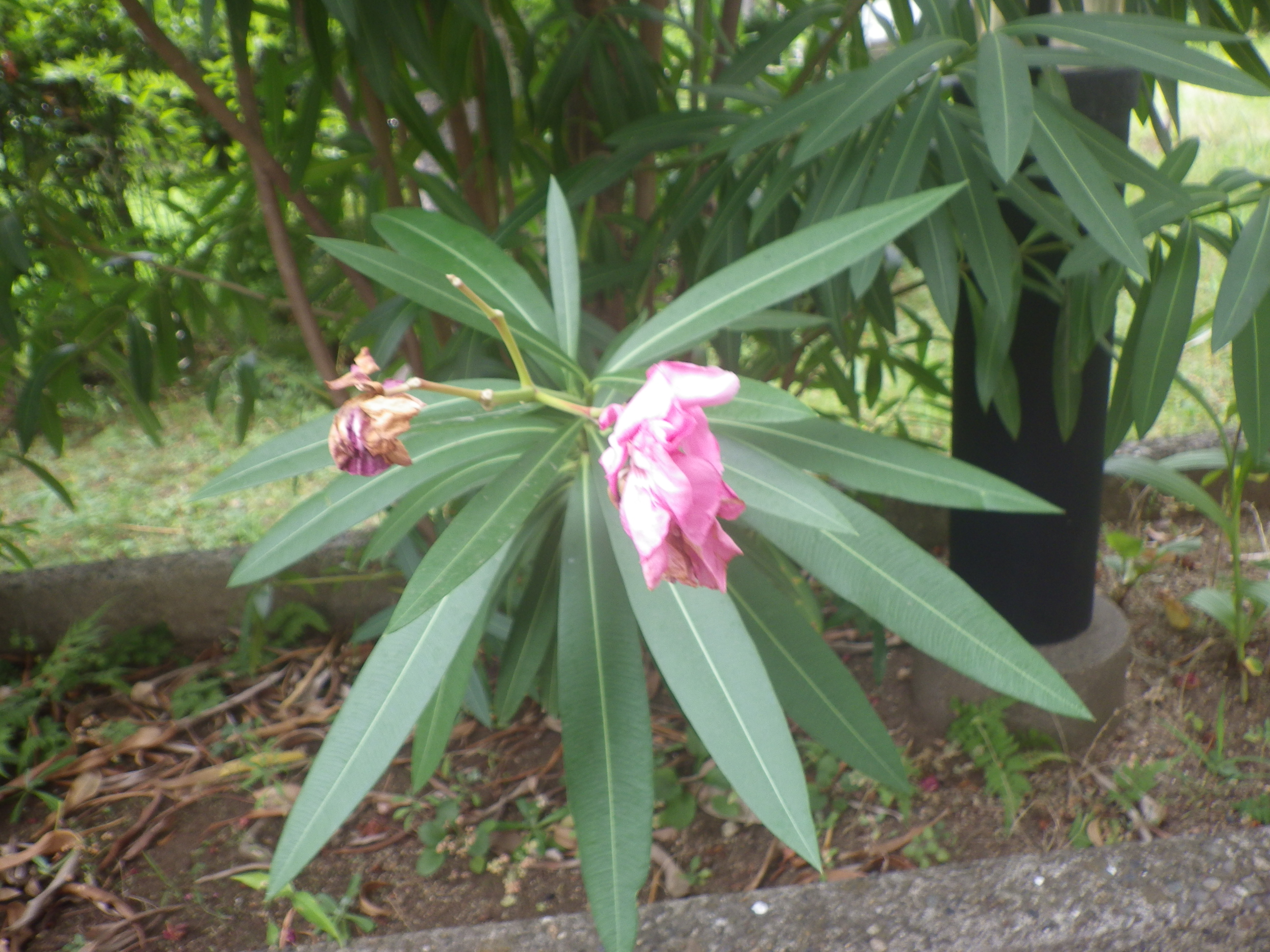 キョウチクトウと言えば、2009年に福岡市の教育委員会が「夾竹桃に毒があるので撤去してほしい」という一通の匿名メールを受けて、私立学校のすべての夾竹桃を伐採しようとしたことがありましたね。当然のごとく関係各方面から「おいやめろ」と猛ツッコミを受け、伐採は見送りとなった案件がありました。この件はマスコミにも全国的に取り上げられ、さぞかし福岡市はバツの悪い思いをしたことでしょう。