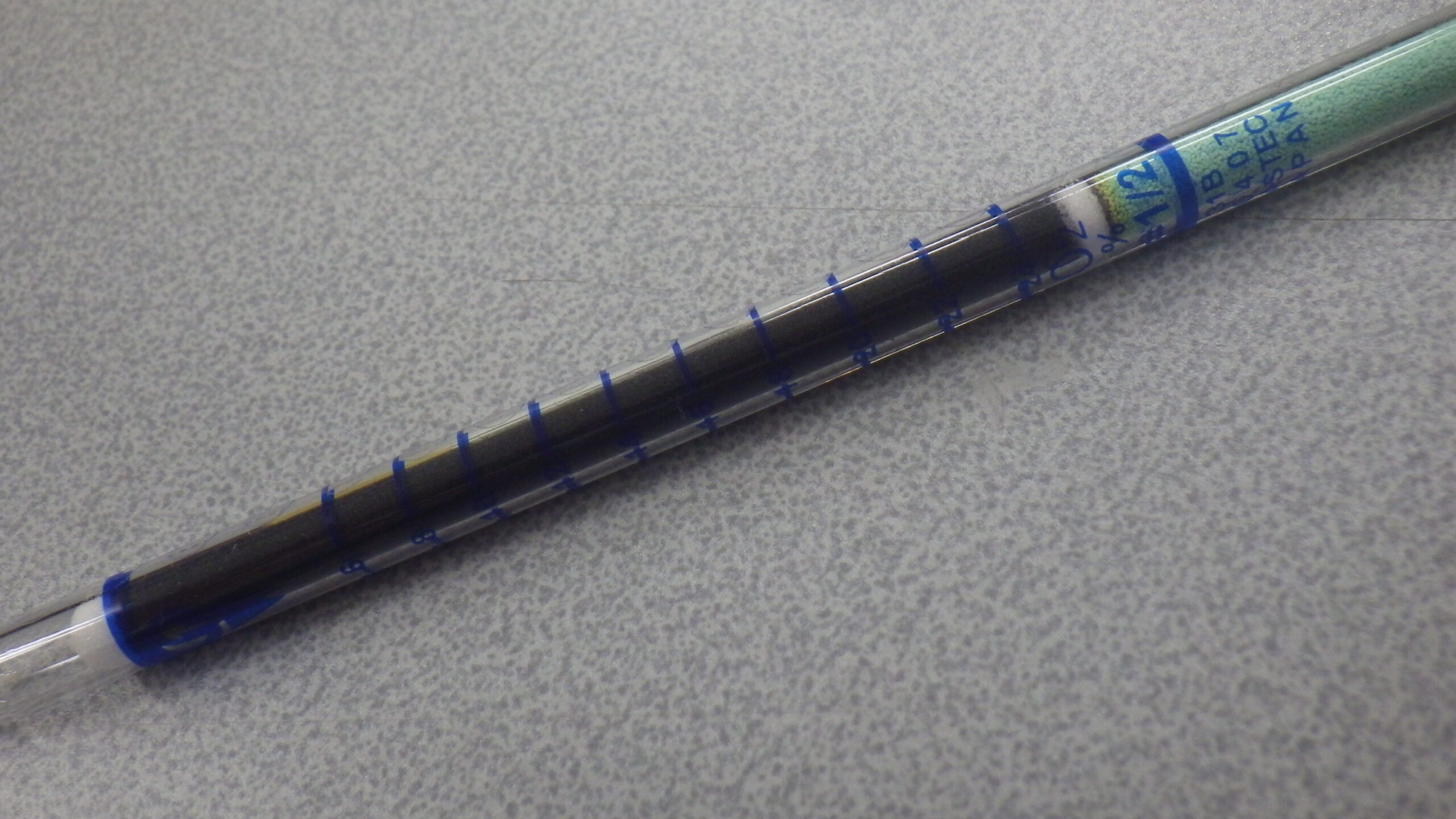 検知管は細いガラス管の中にシリカゲルに対象の気体に反応する薬剤をしみこませた検知剤が入っており、検知剤の劣化を防ぐためにガラス管の両端は閉じてあります。