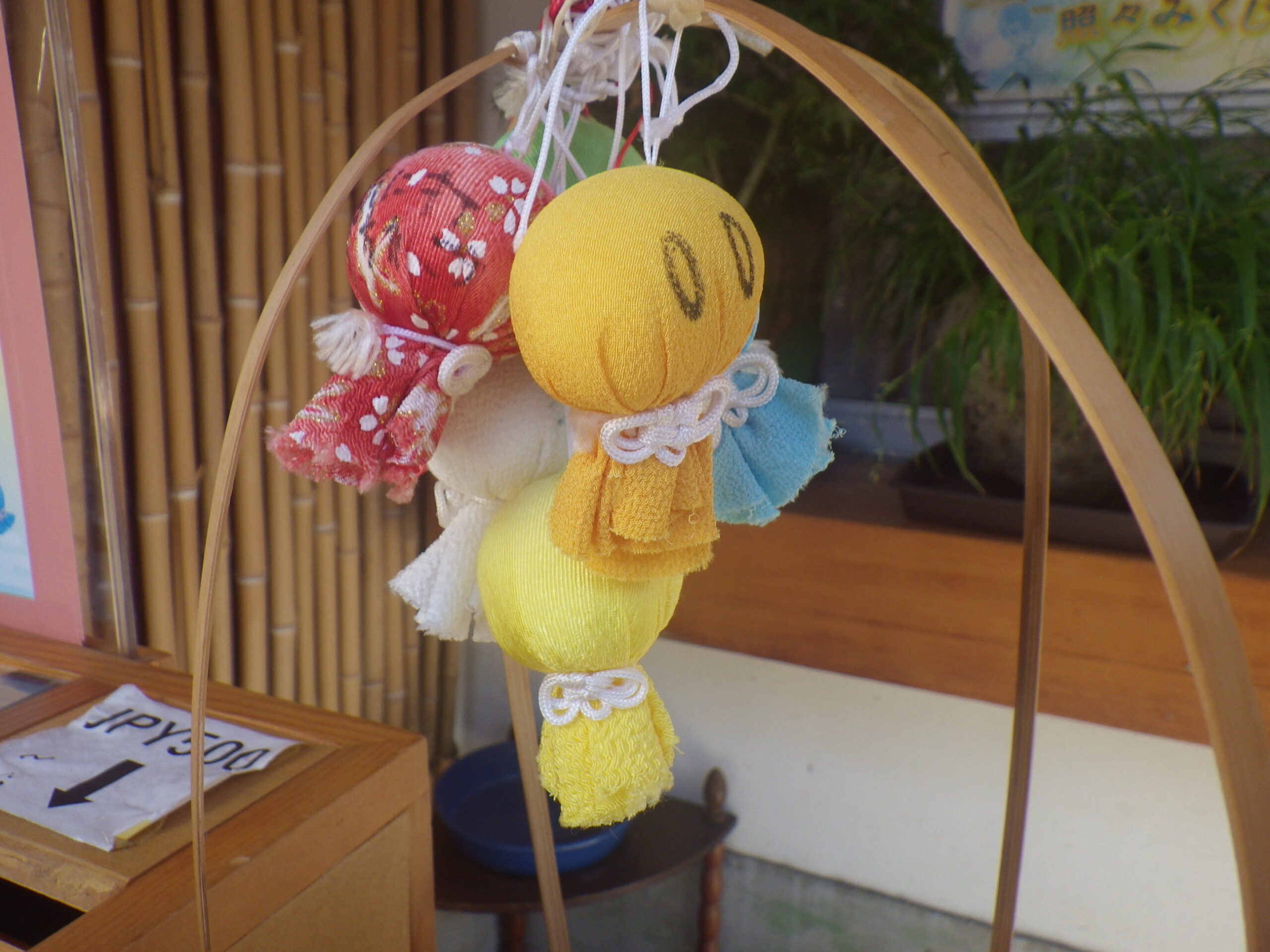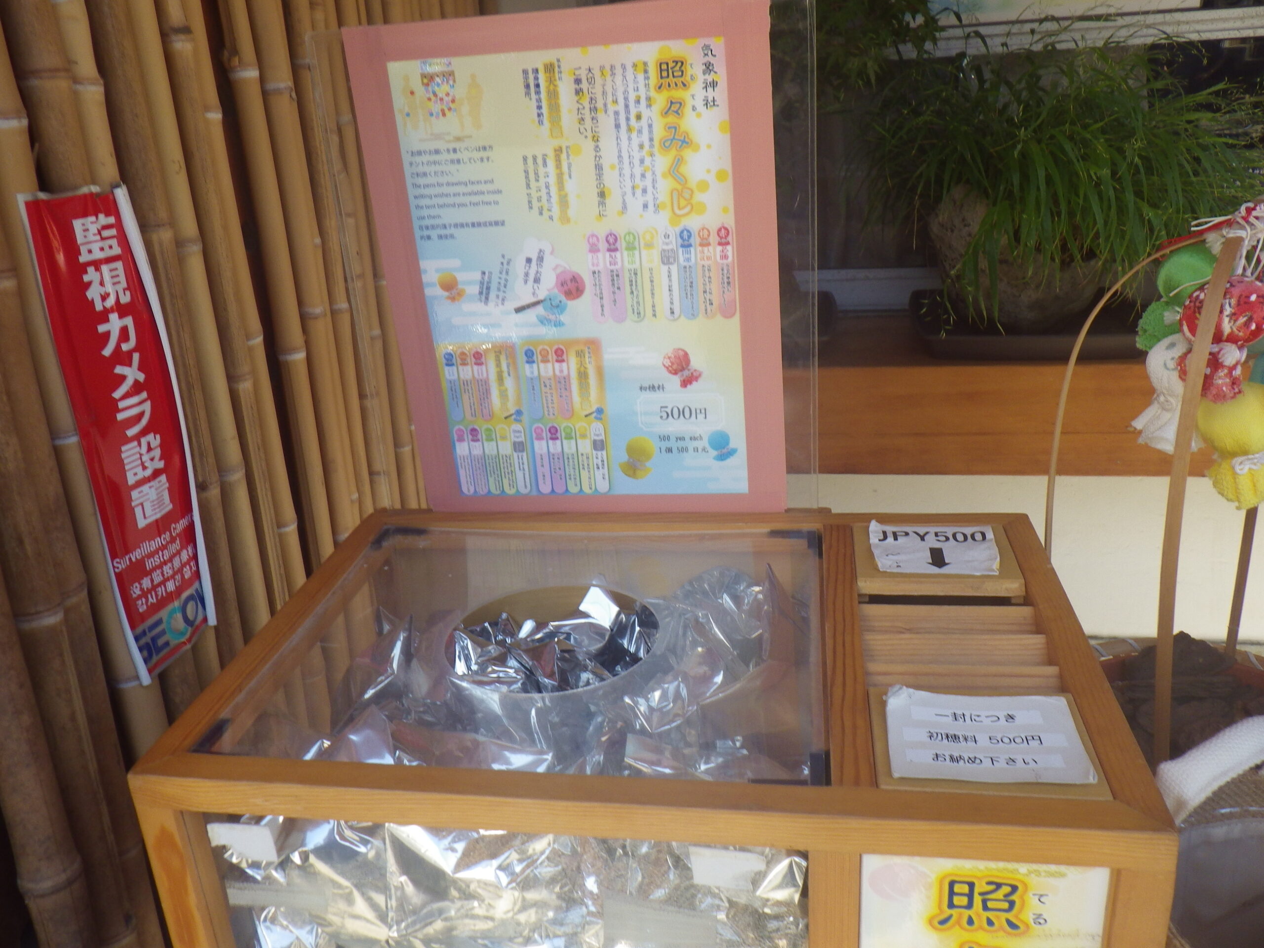 社務所にテルテル坊主ならぬ照照みくじが。これまた気象神社ならでは。