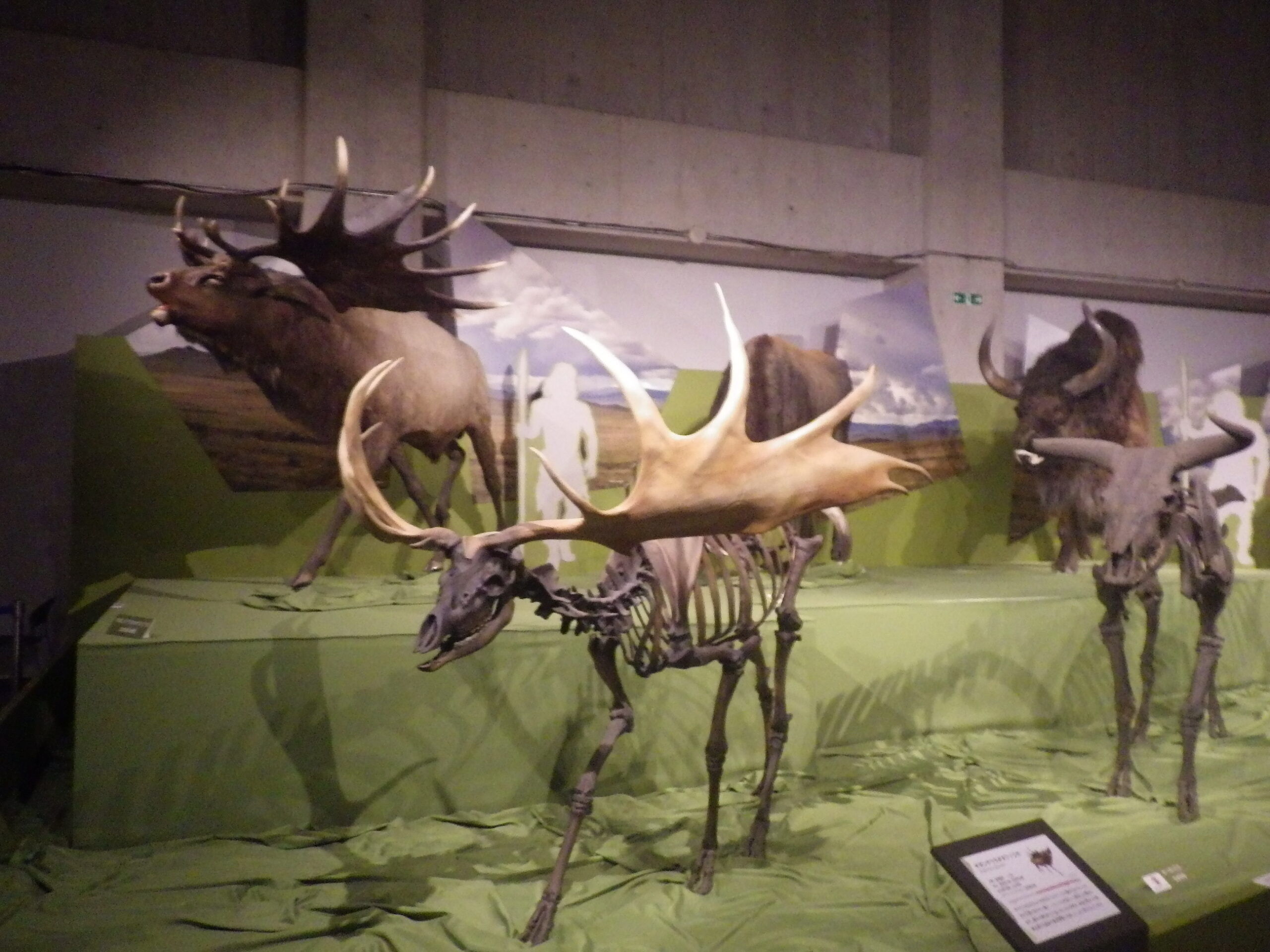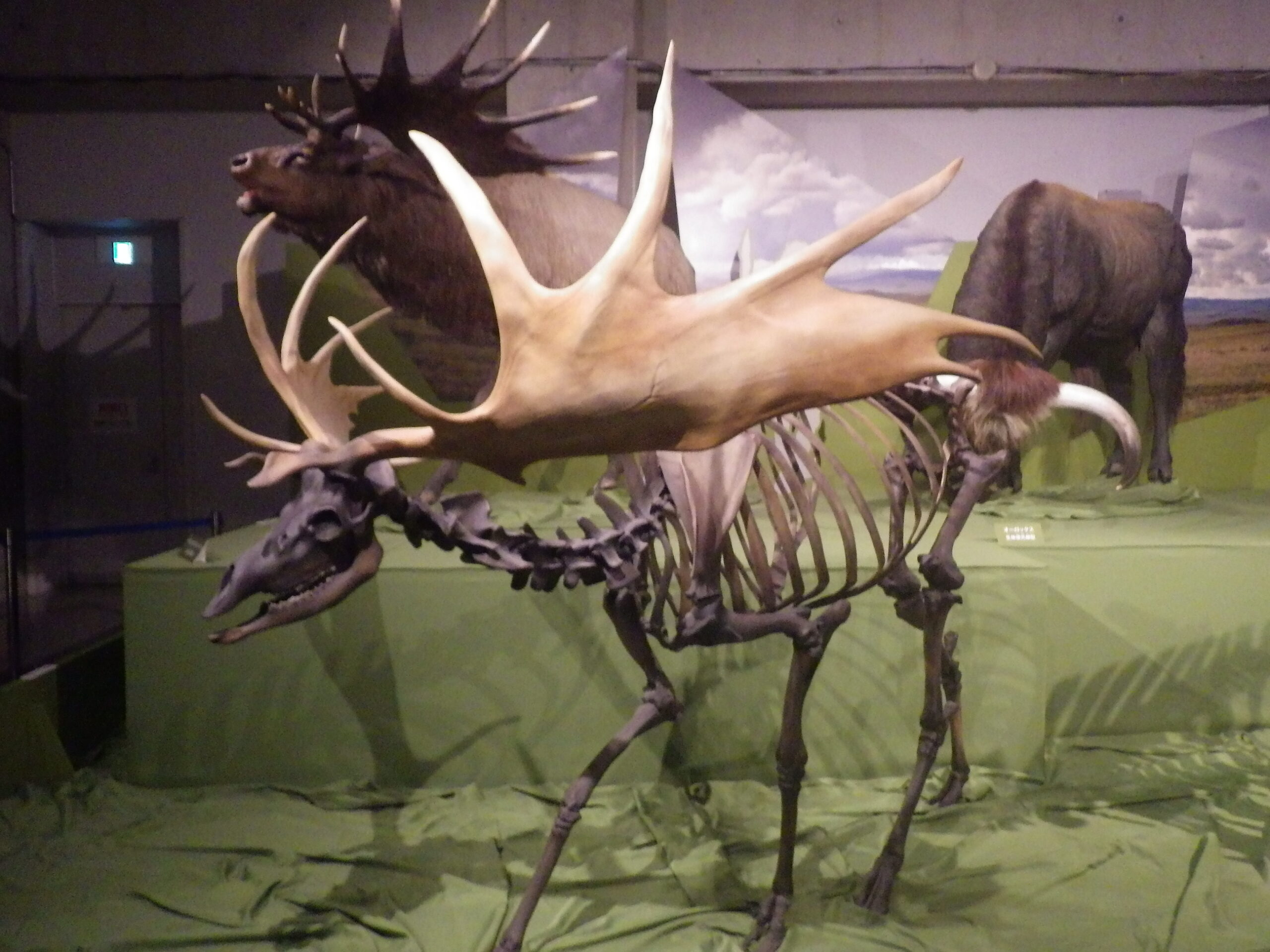 ギガンテウスオオツノジカ(生態復元模型、全身骨格)