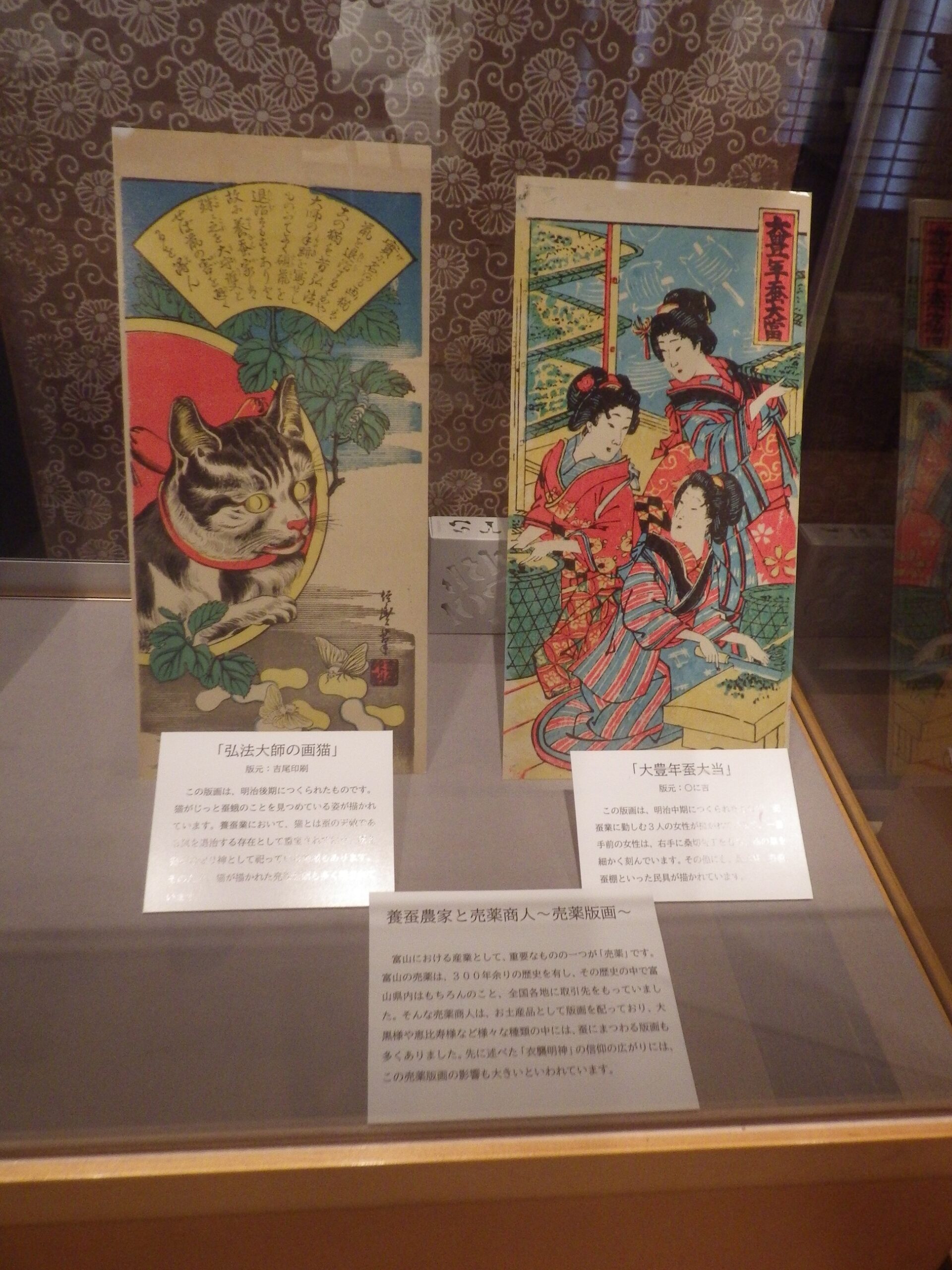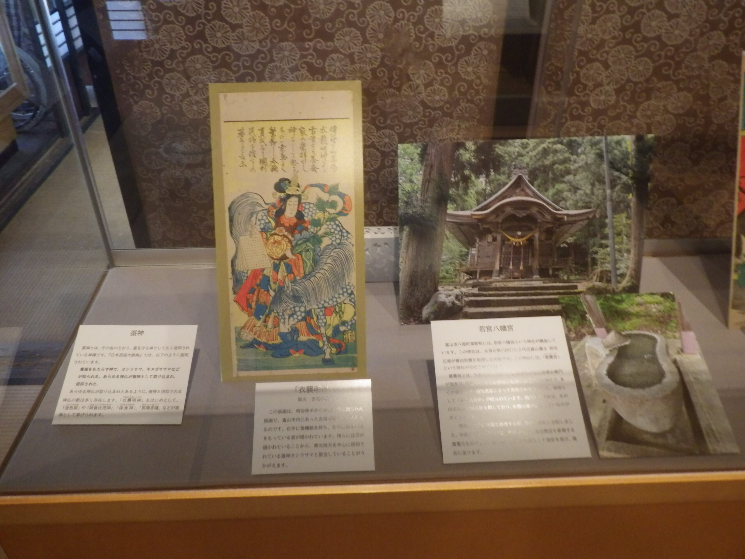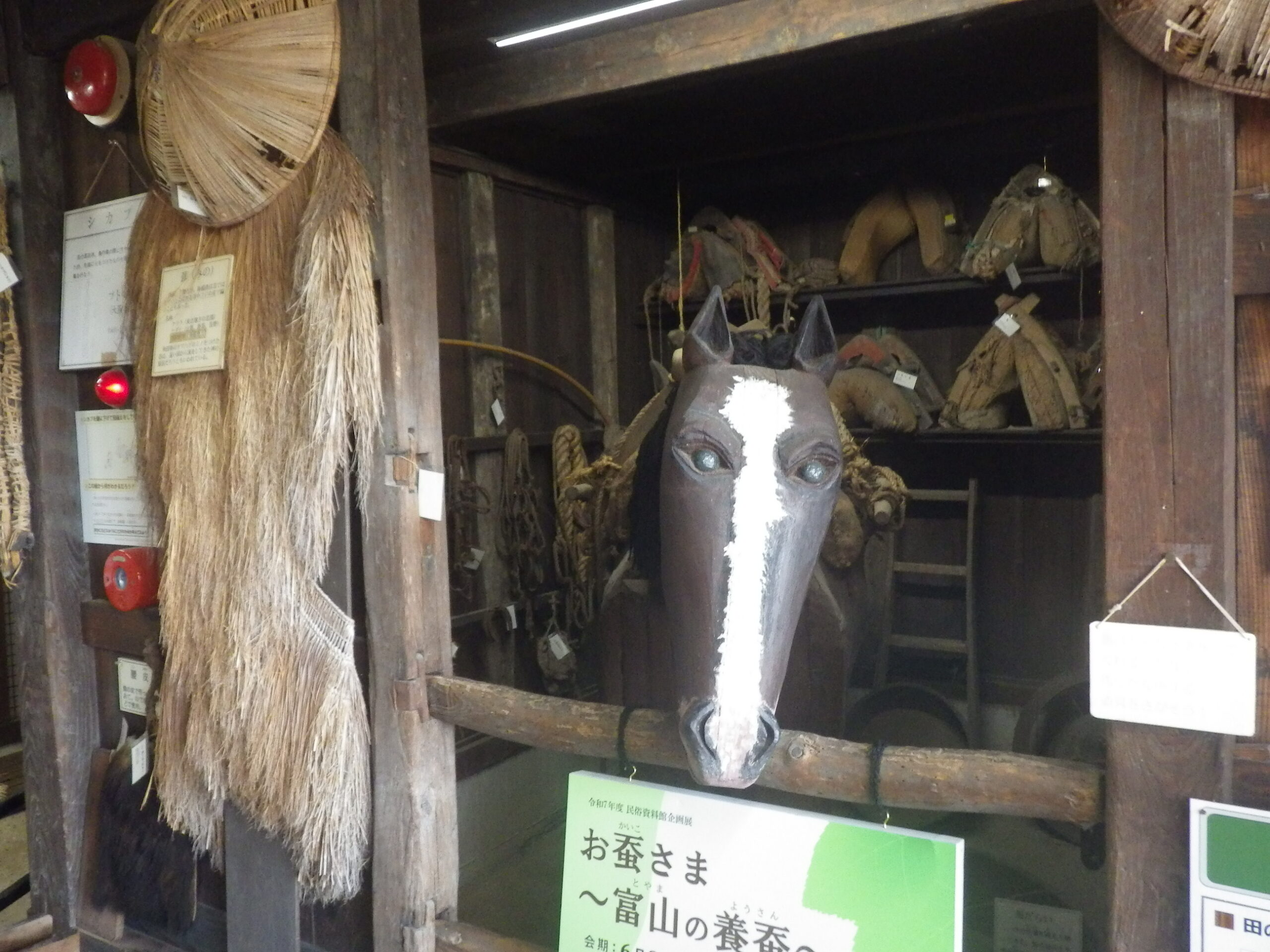 と思ったら、民俗民芸村の民俗資料館で企画展「お蚕さま」~富山の養蚕~をやっていると。まあ正直、田舎の民俗資料館で地域の養蚕の展示と言ったら、古い養蚕の道具類が展示され、その地域で養蚕が盛んだったころの解説パネルと、相場は決まっているし、実際に今回もそうだったのですが、