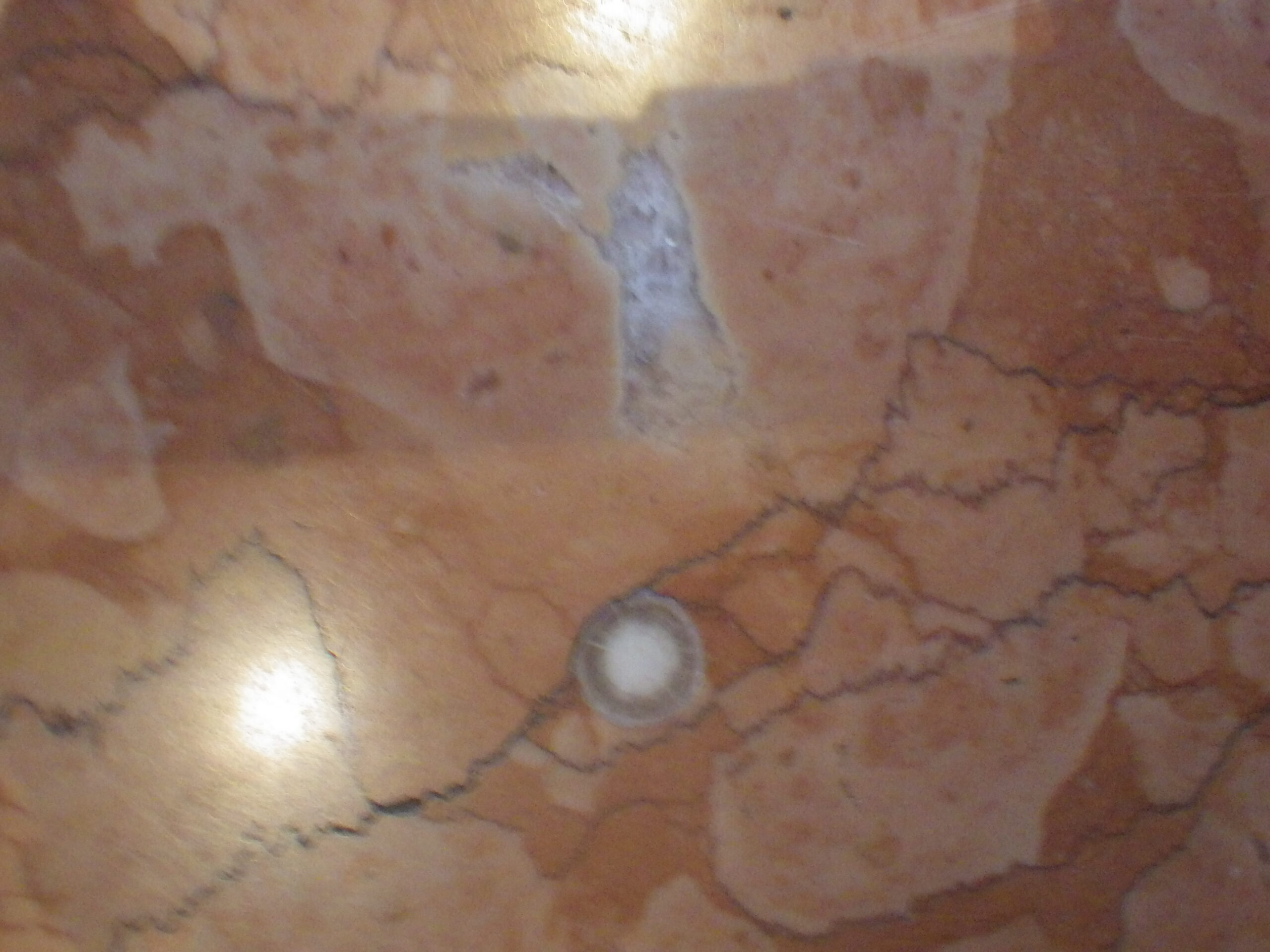 入口の床のロッソ・マニャボスキにべレムナイトが。