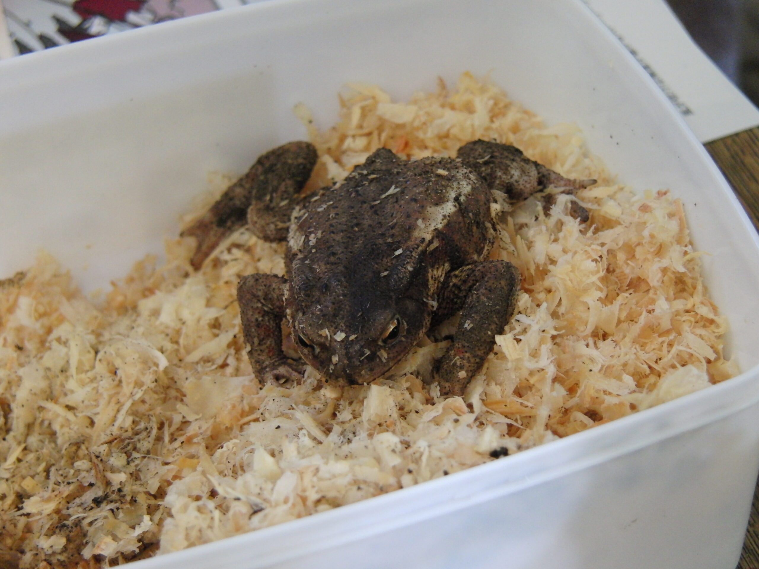 本日のゲスト:ヒキガエルのヒッキーくん。鳴かず、おとなしいので、ペットに最適だそうです。