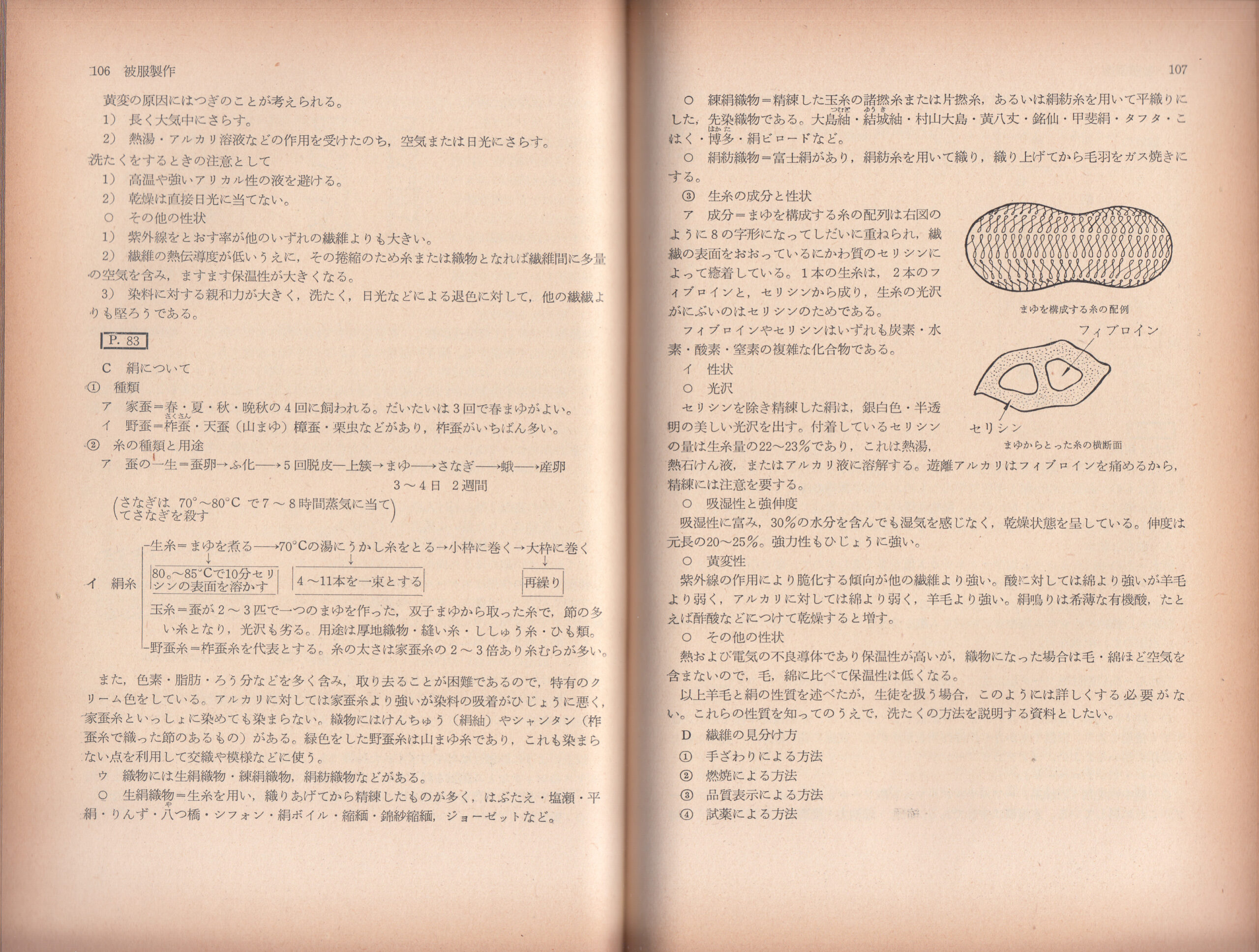 3年生の絹についてのところでは、家蚕や野蚕などの種類やカイコの一生など、蚕のことから、フィブロインやセルシンなどの生糸の成分や性状など、多岐にわたって開設されています。