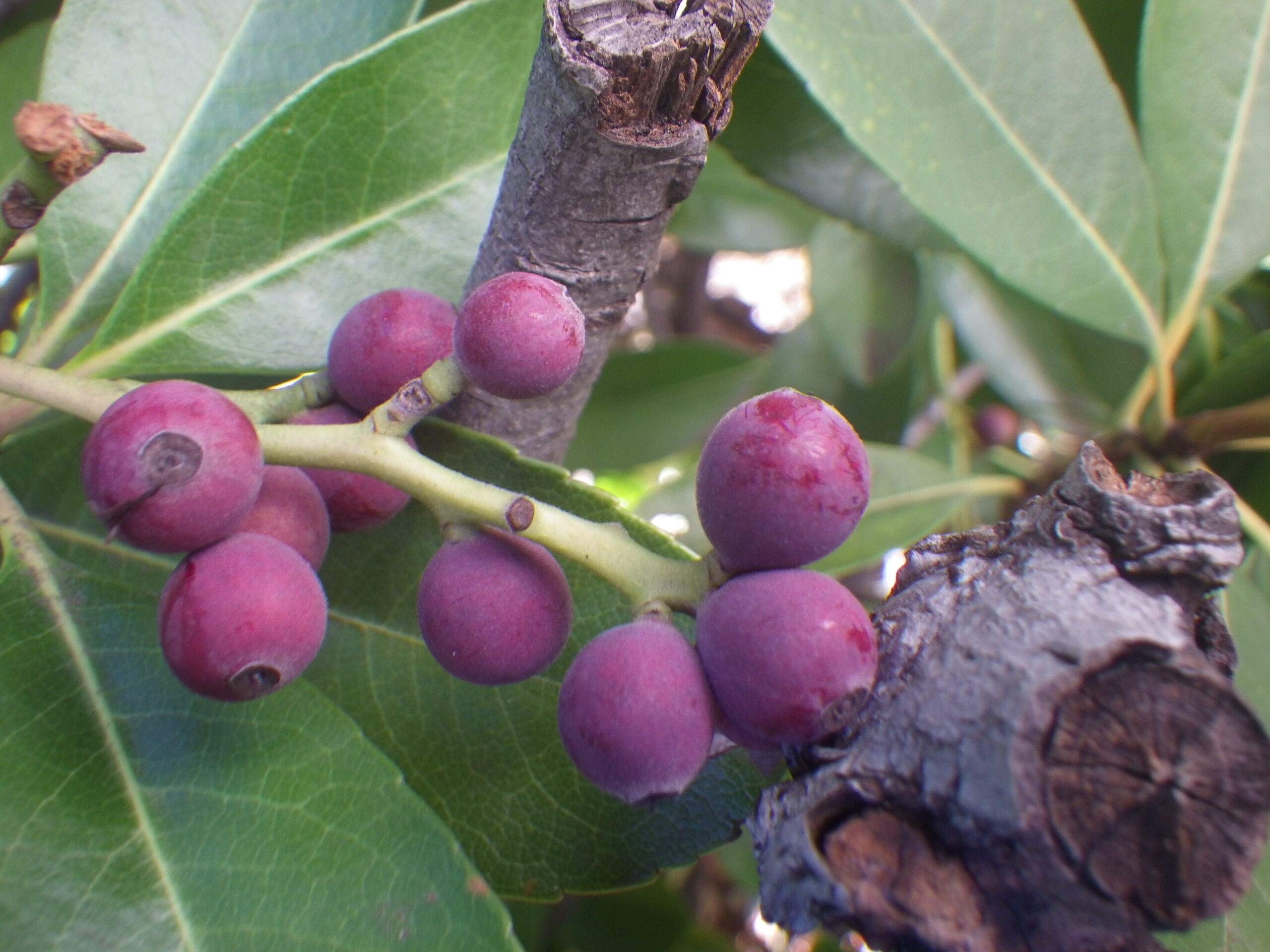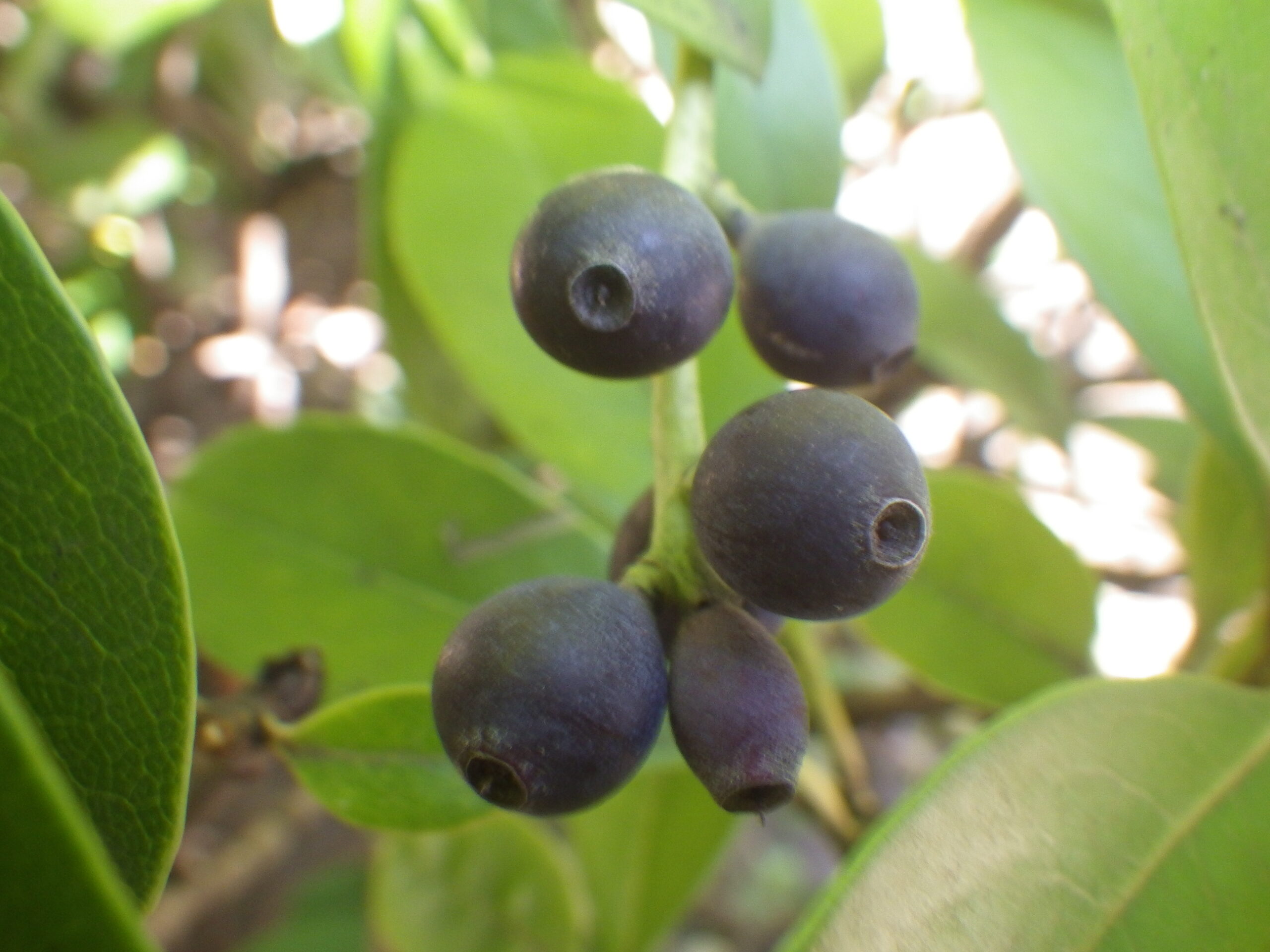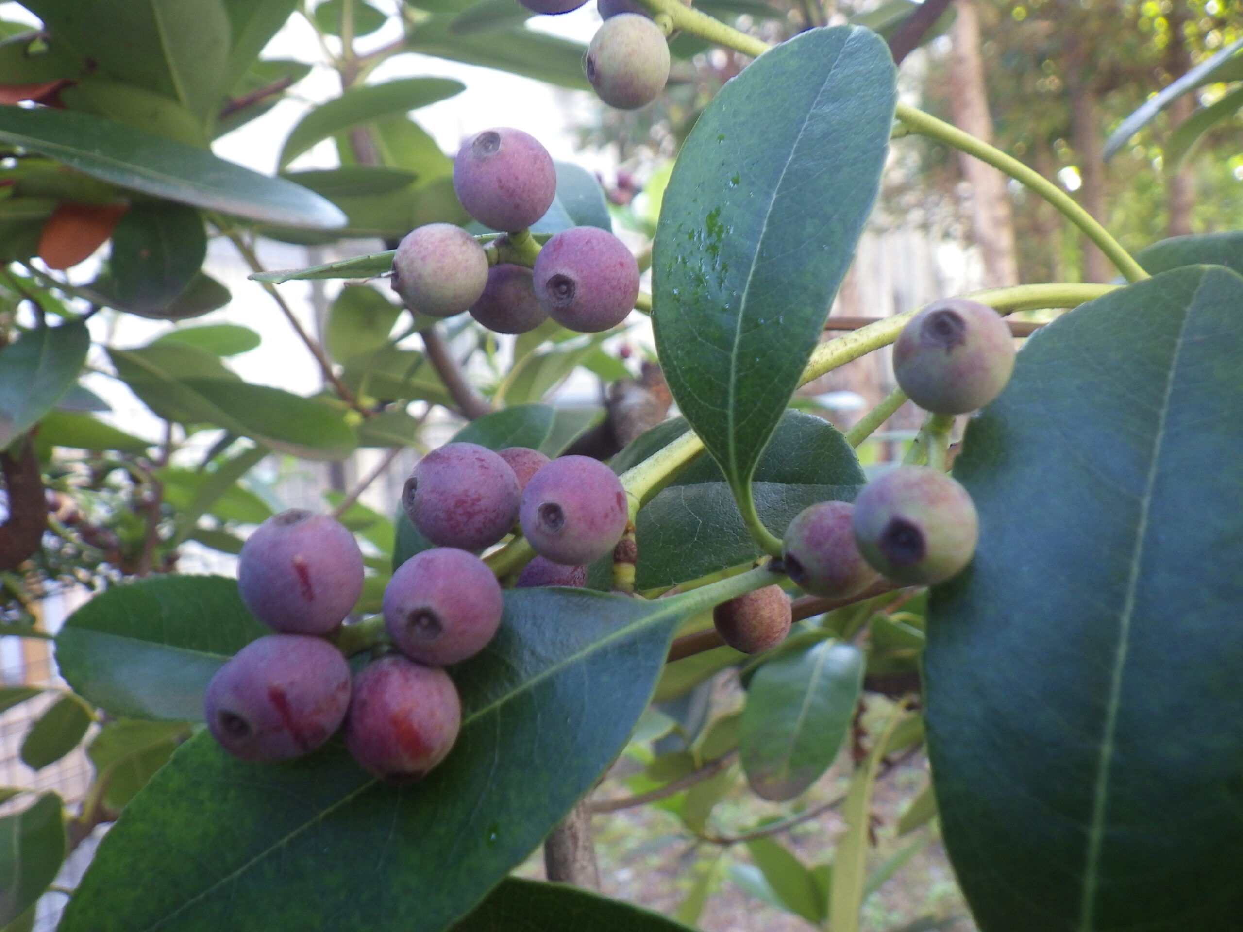 シャリンバイの花は、5月に記事にしましたが、いよいよ実になりました。噂通り、表面は白い粉をかぶっています。