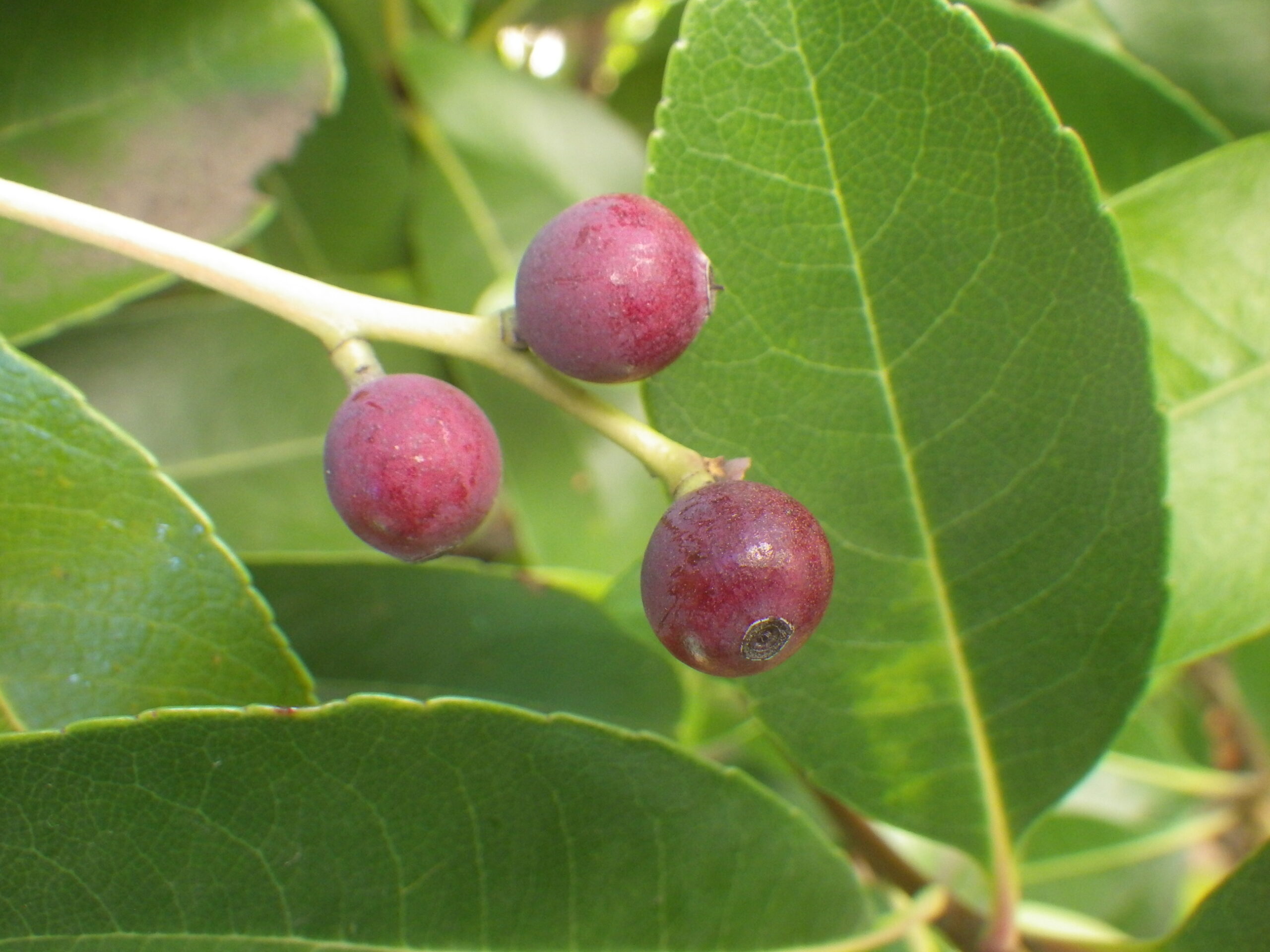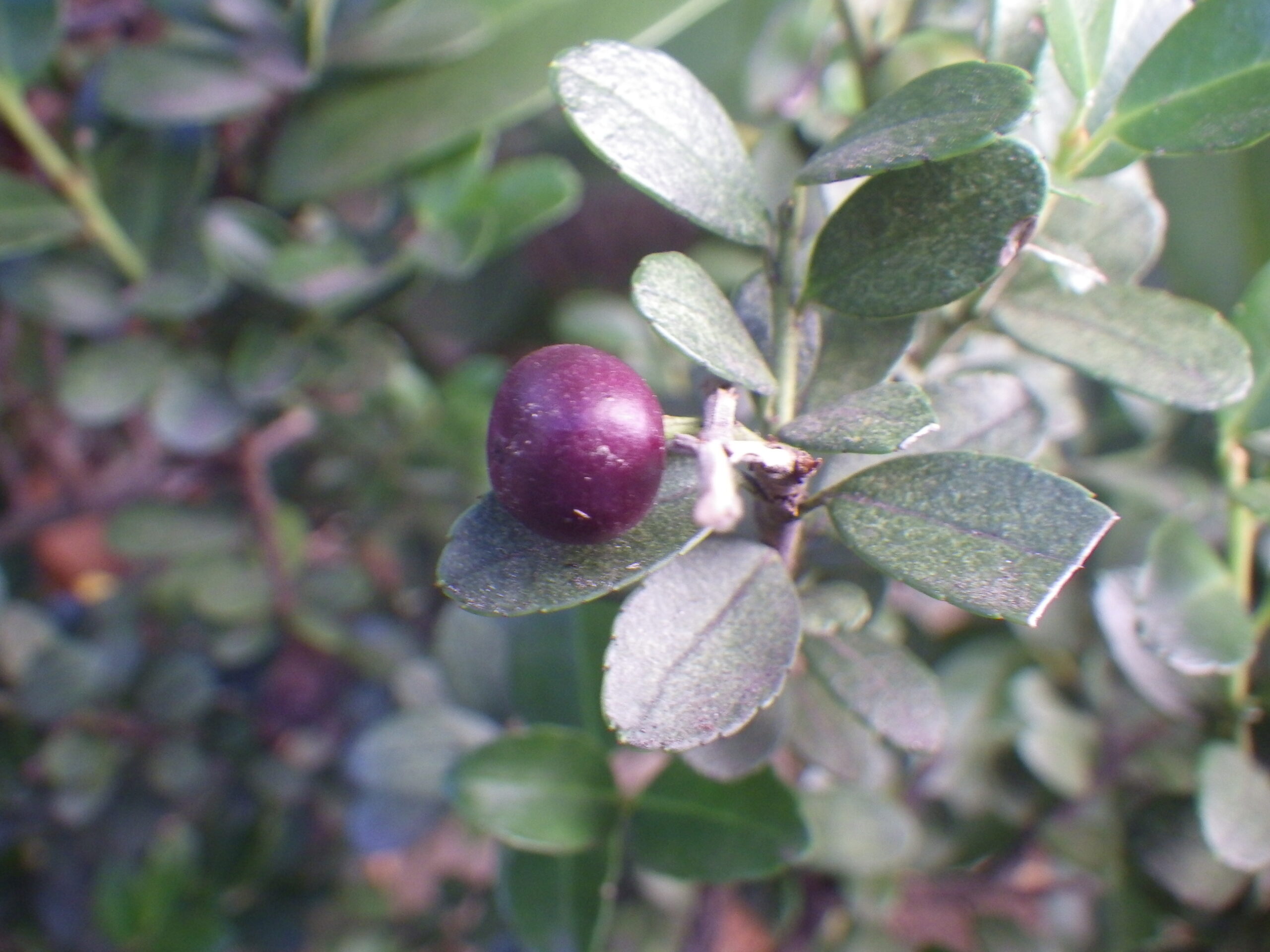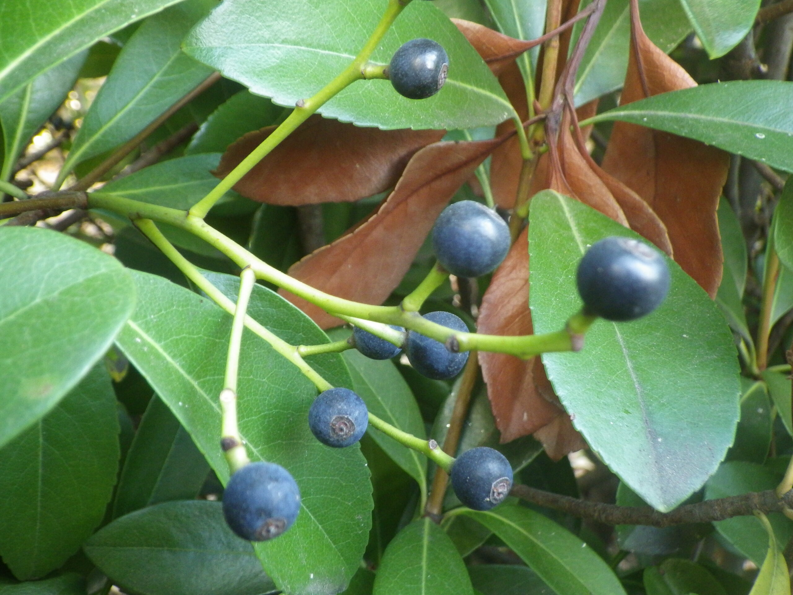 シャリンバイの花は、5月に記事にしましたが、いよいよ実になりました。噂通り、表面は白い粉をかぶっています。