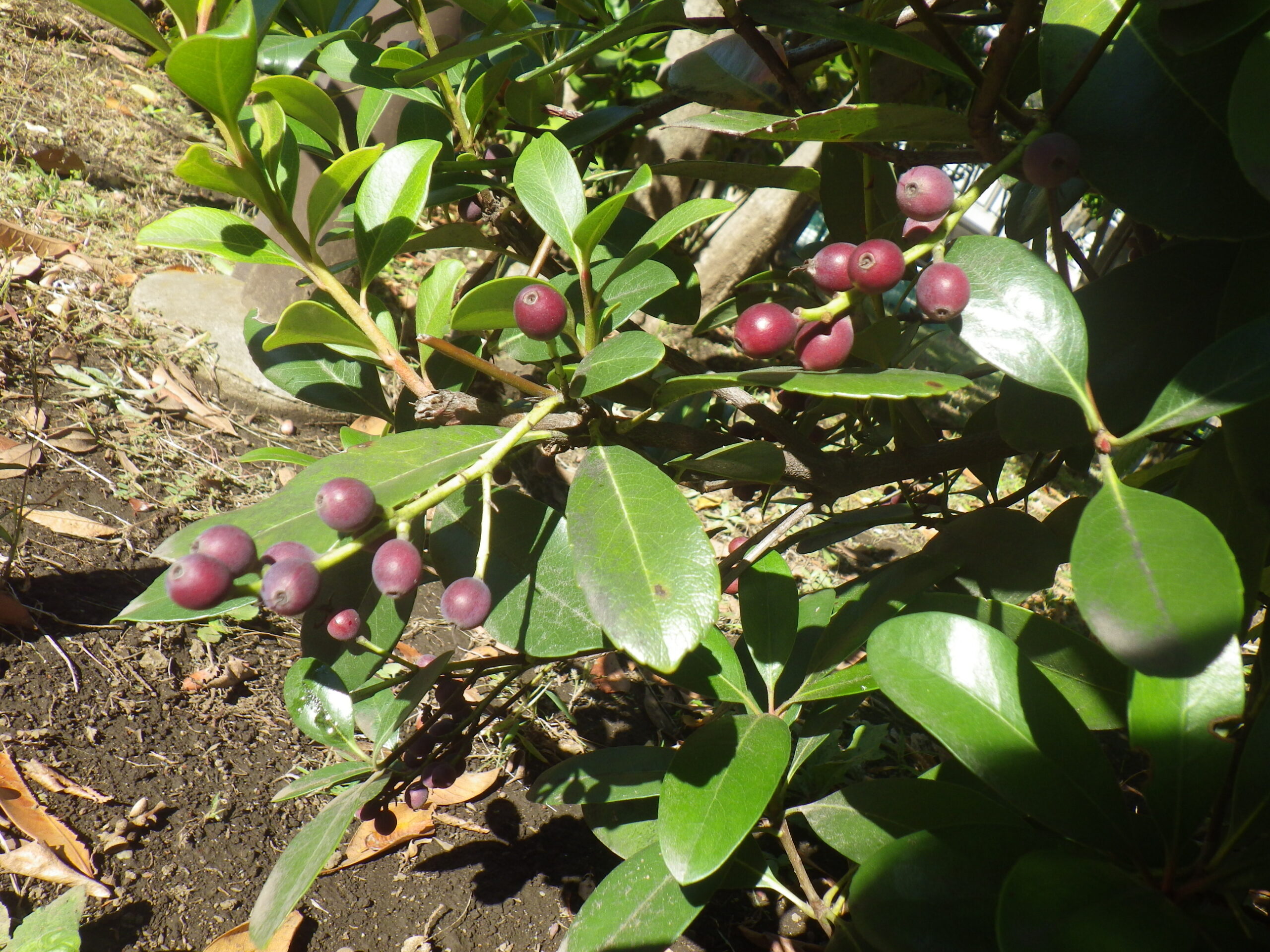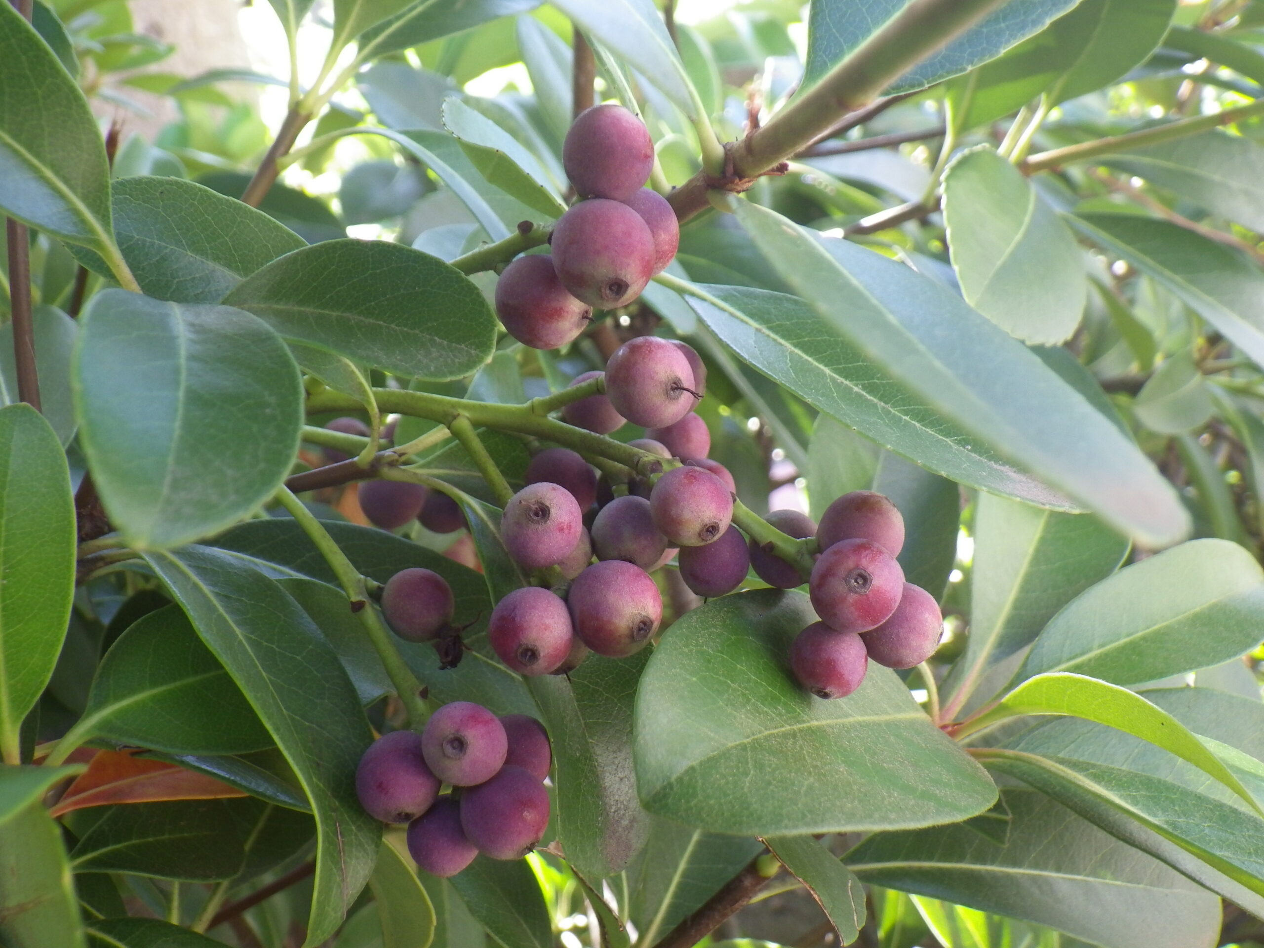 よくシャリンバイの実は黒紫色、なんて言われいますが、赤っぽいということはこれから熟すということでしょうか。今後が楽しみです(10月16日撮影)