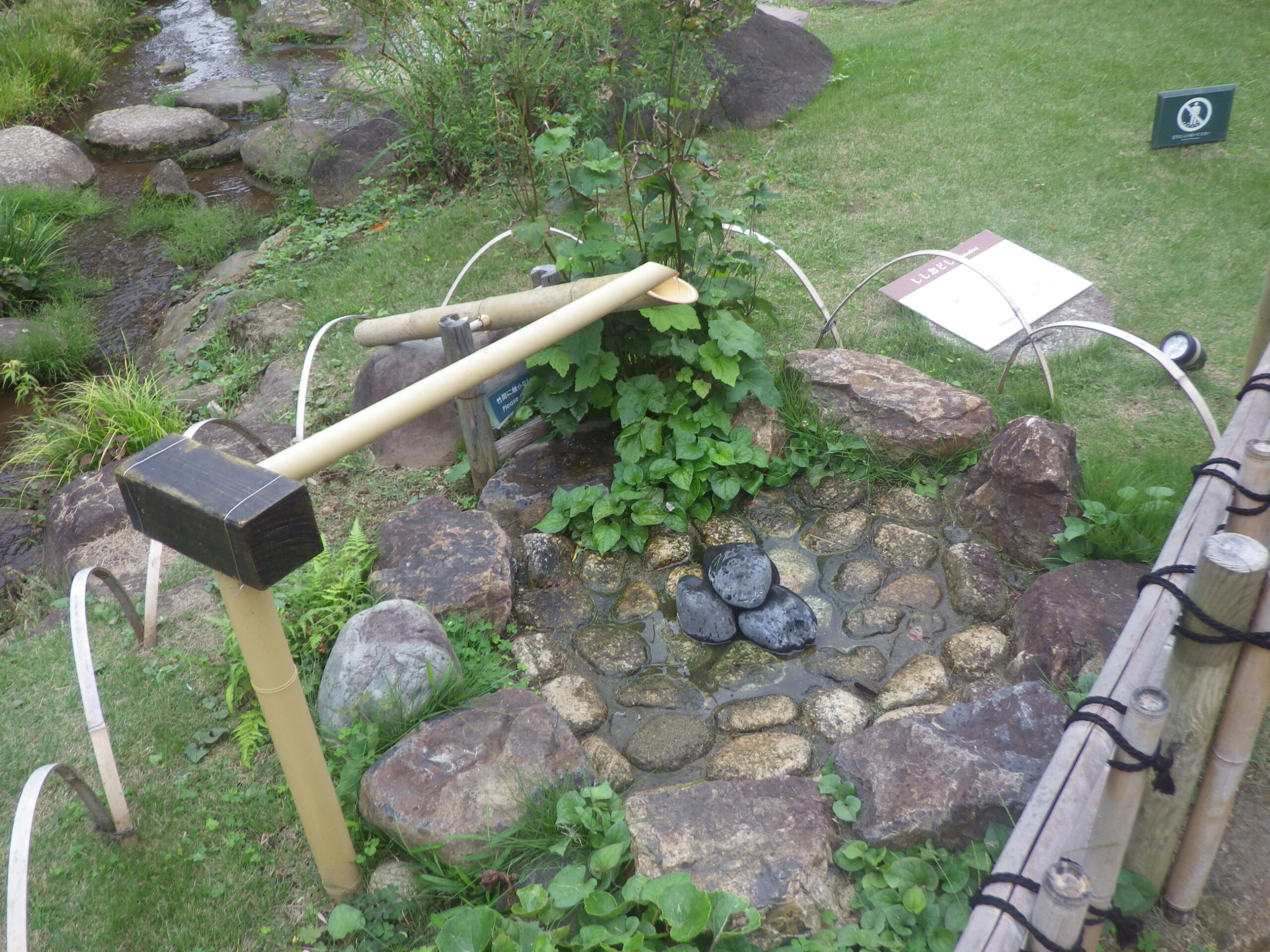 私の知っていたのがたまたまそうだっただけかもしれませんが、ししおどしって、ちょっと隠れているというか、あまり近くで見られる場所にないような気がします。