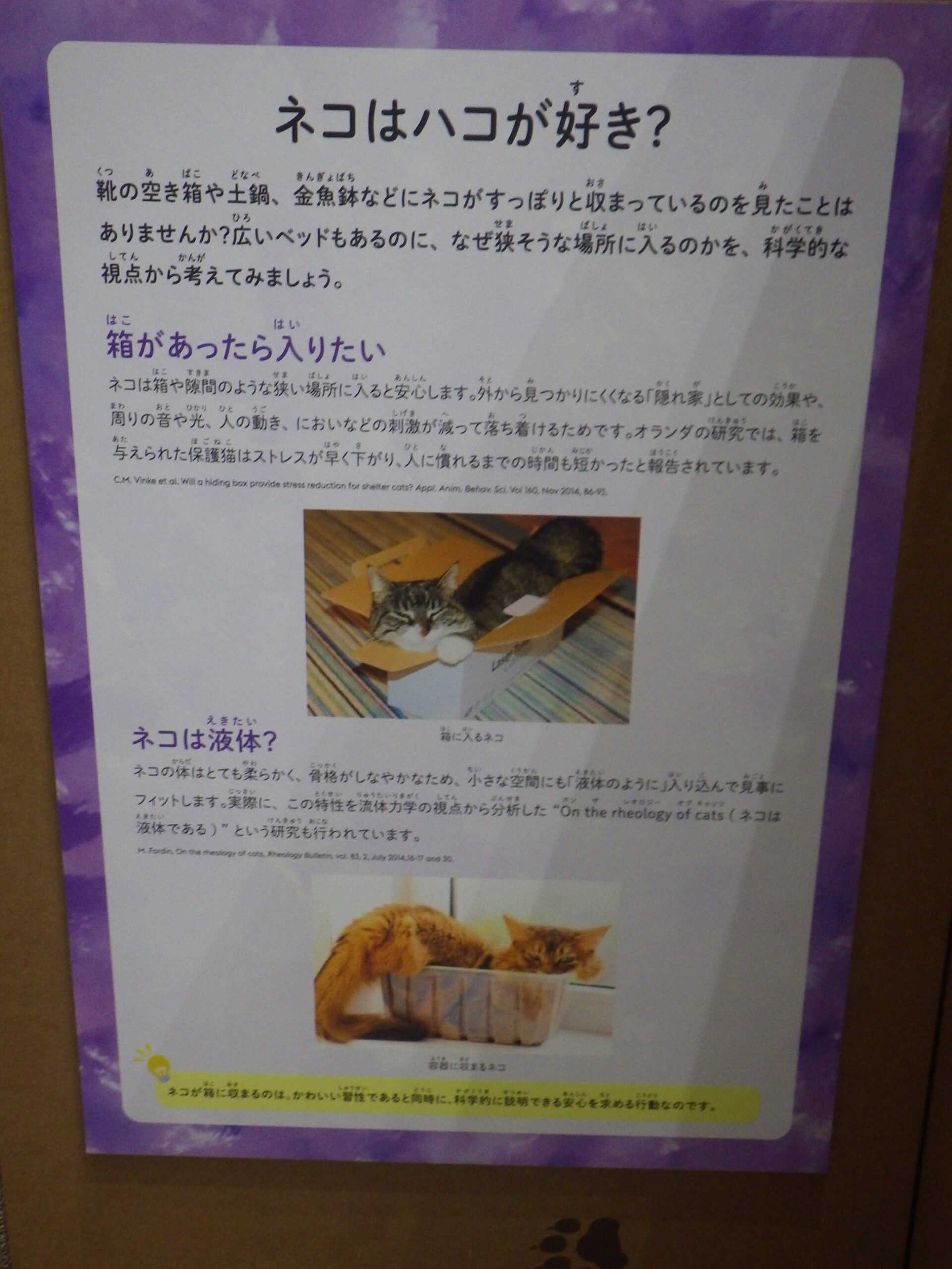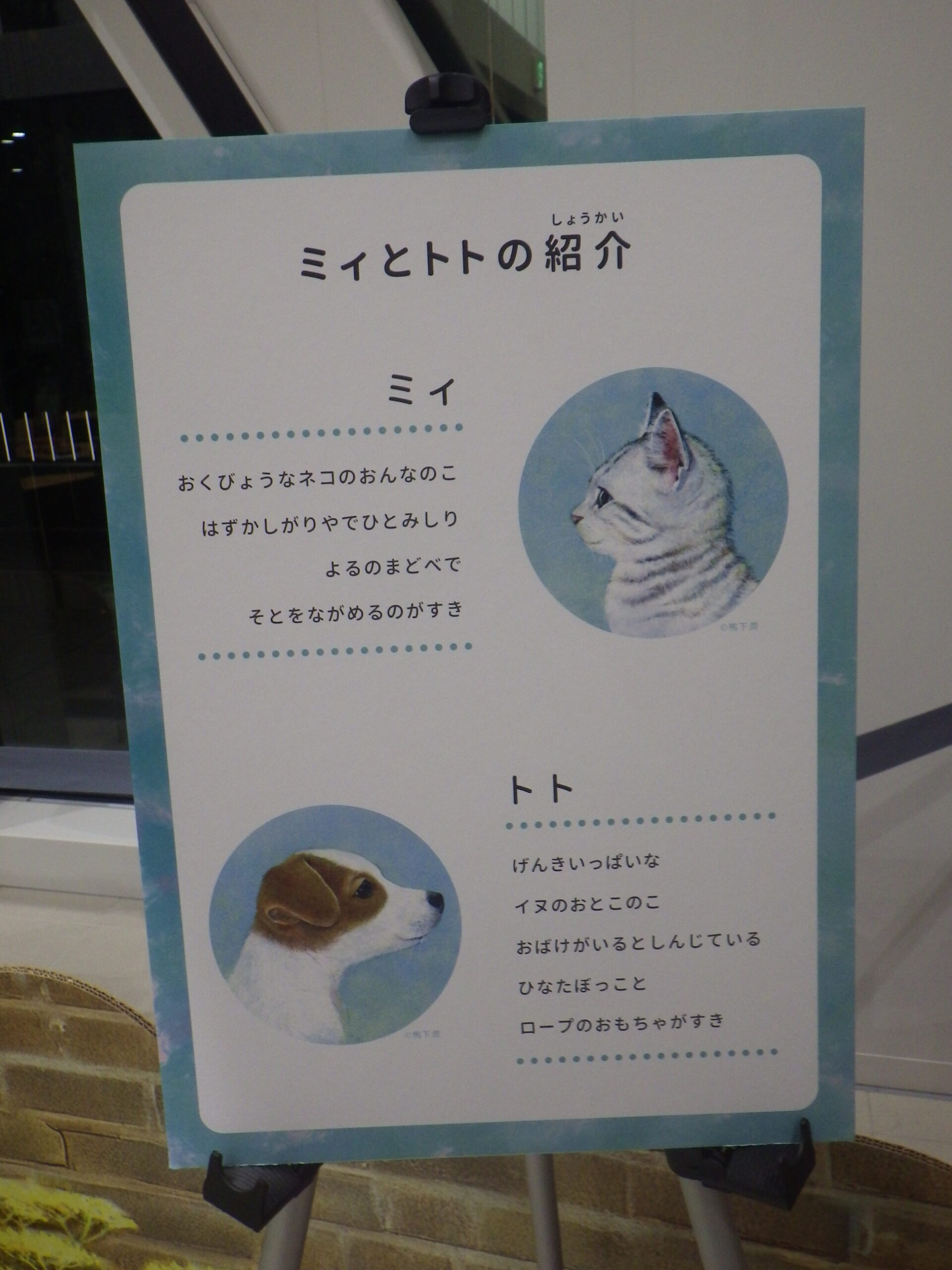ネコのミィとイヌのトトが出てくるオリジナルの絵本の展開をもとに、ネコとイヌの生態の違いを紹介する企画展。