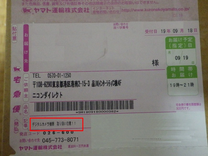 伝票にも デジタルカメラ機器 取扱注意!! と書かれているし。誤配送か?