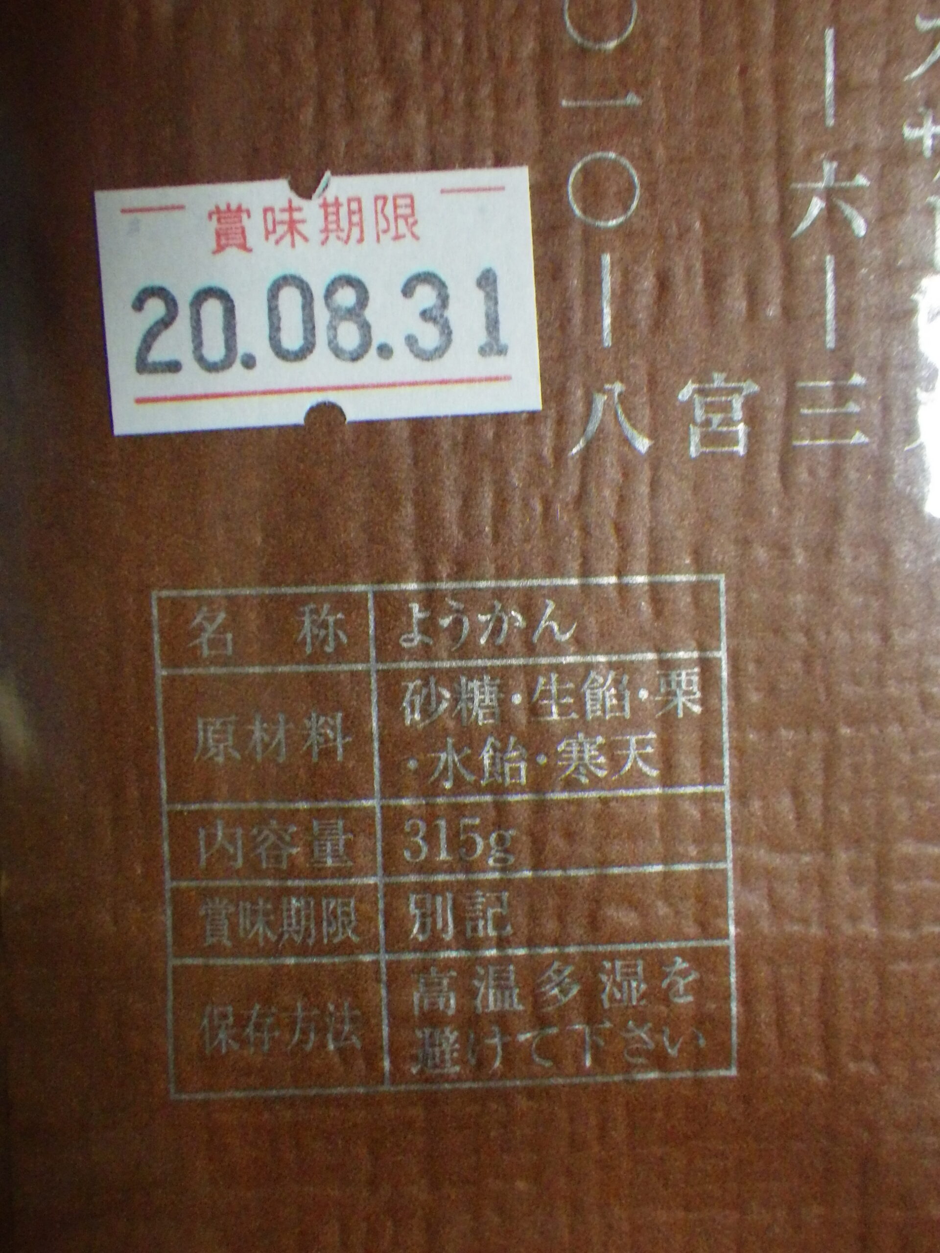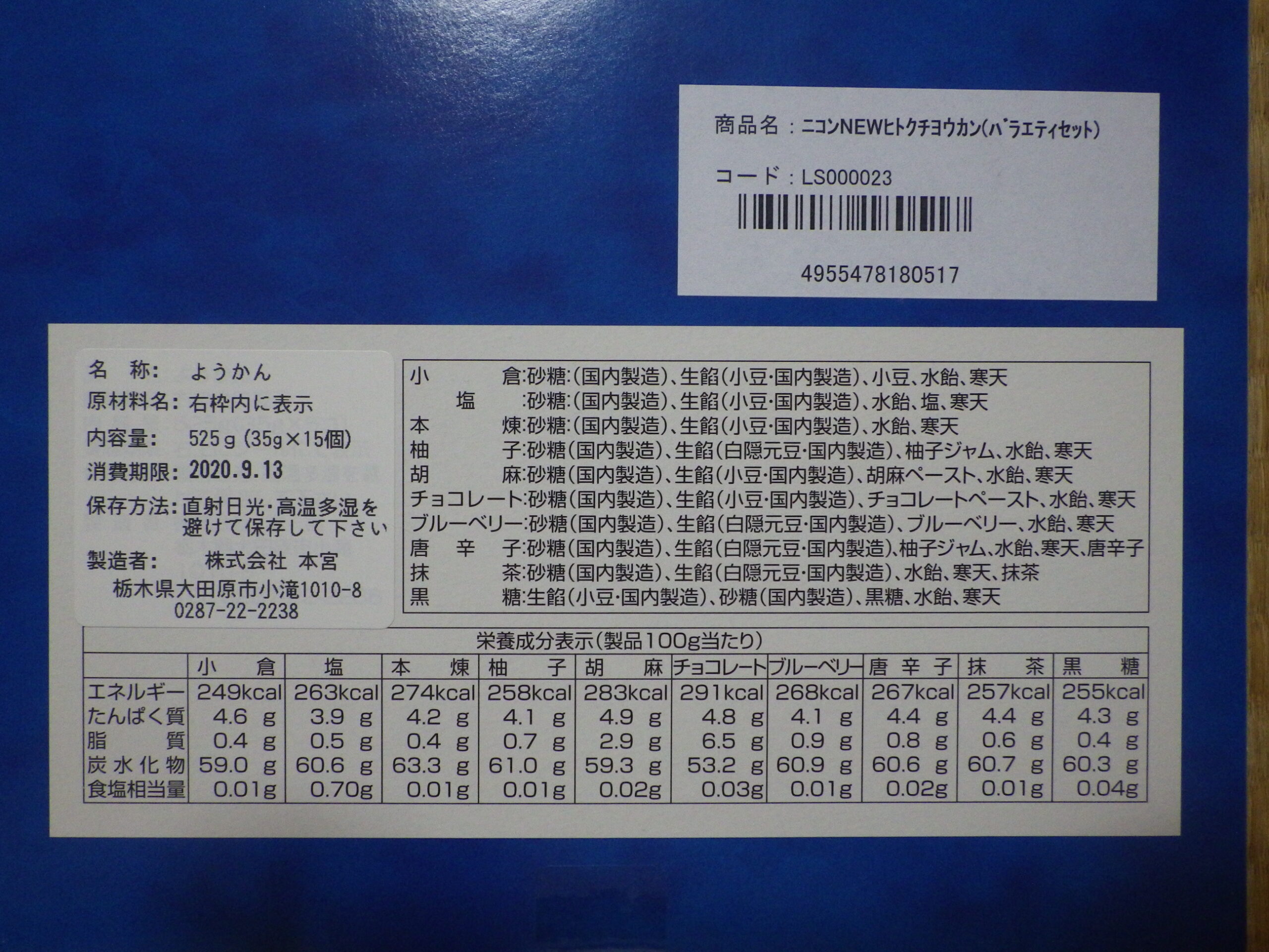 約1年の賞味期限ですね。「栗」だけは一口ようかんに入っていません。
