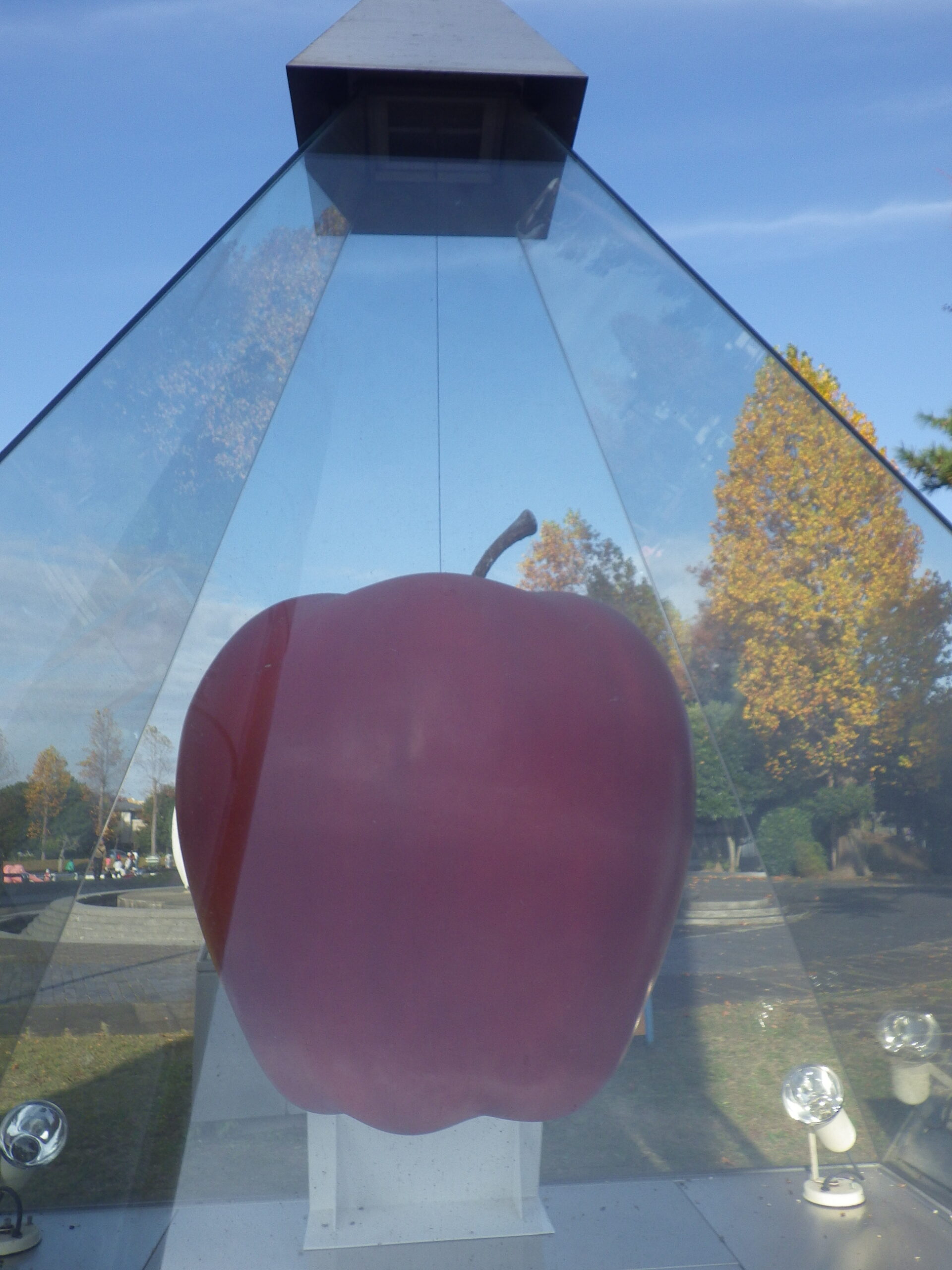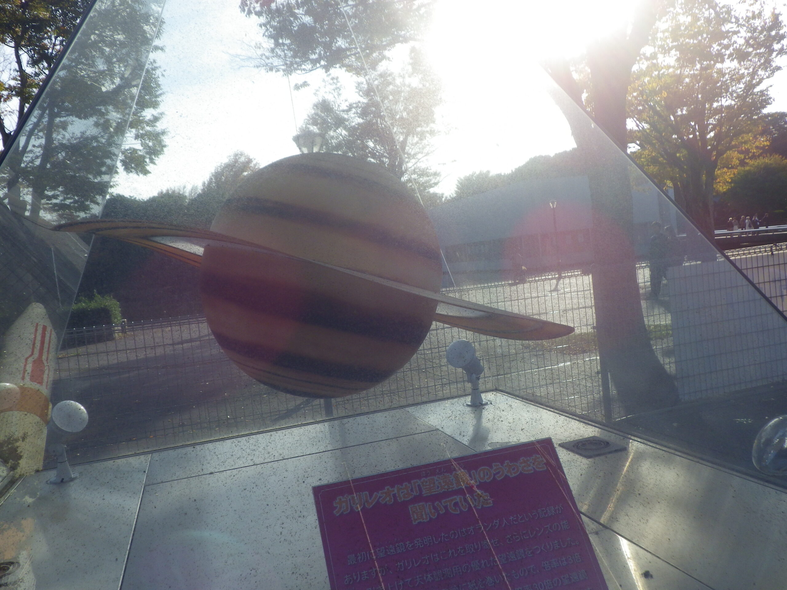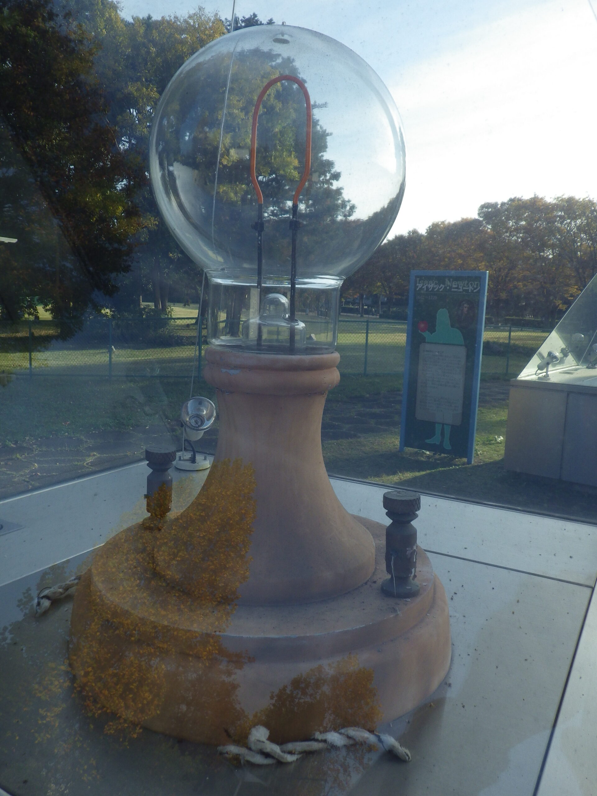 と感じていたら、屋外展示場で万博で展示されていた エジソンの電球、ニュートンのリンゴ、ガリレオの土星、アルキメデスの王冠が