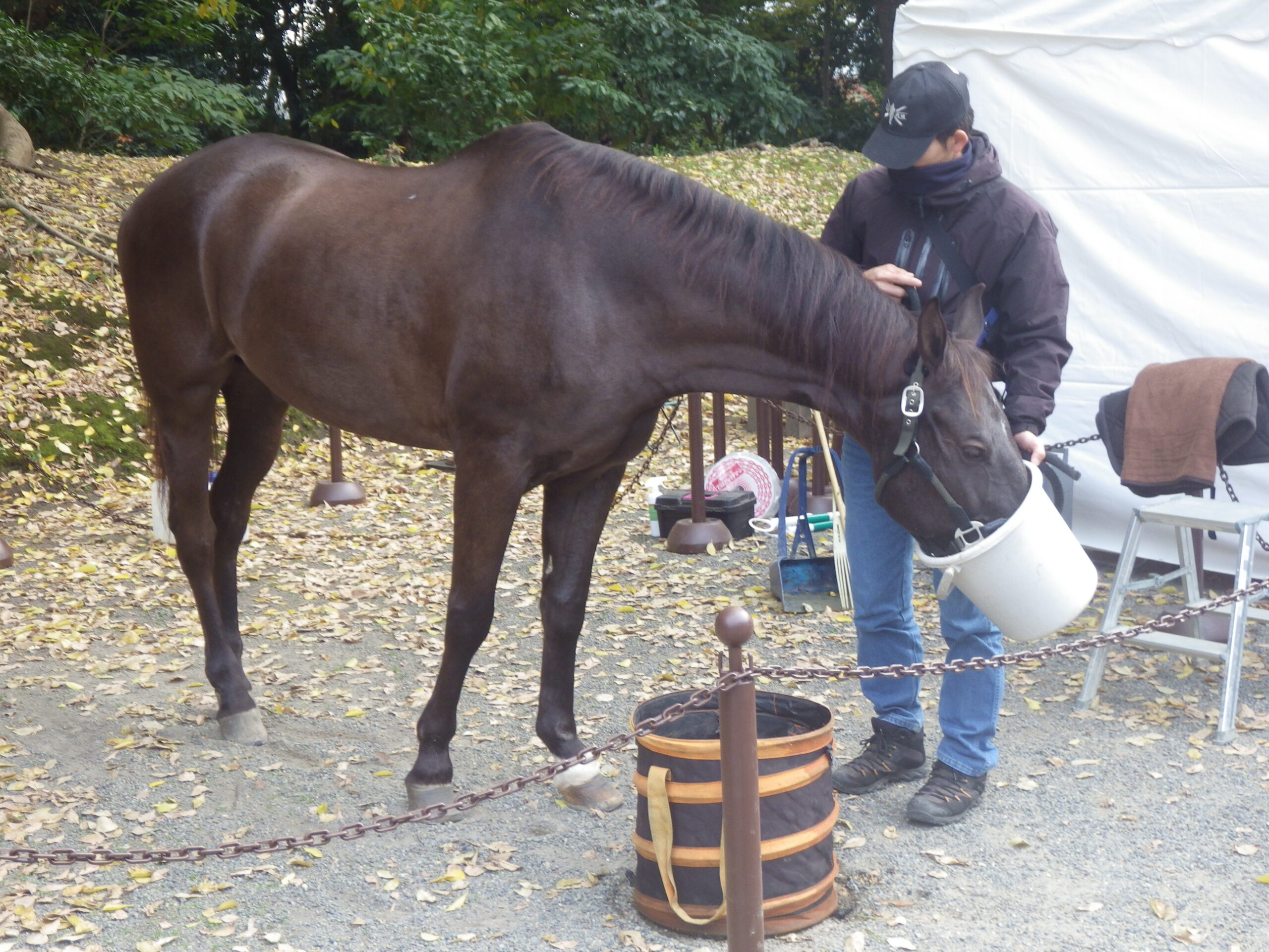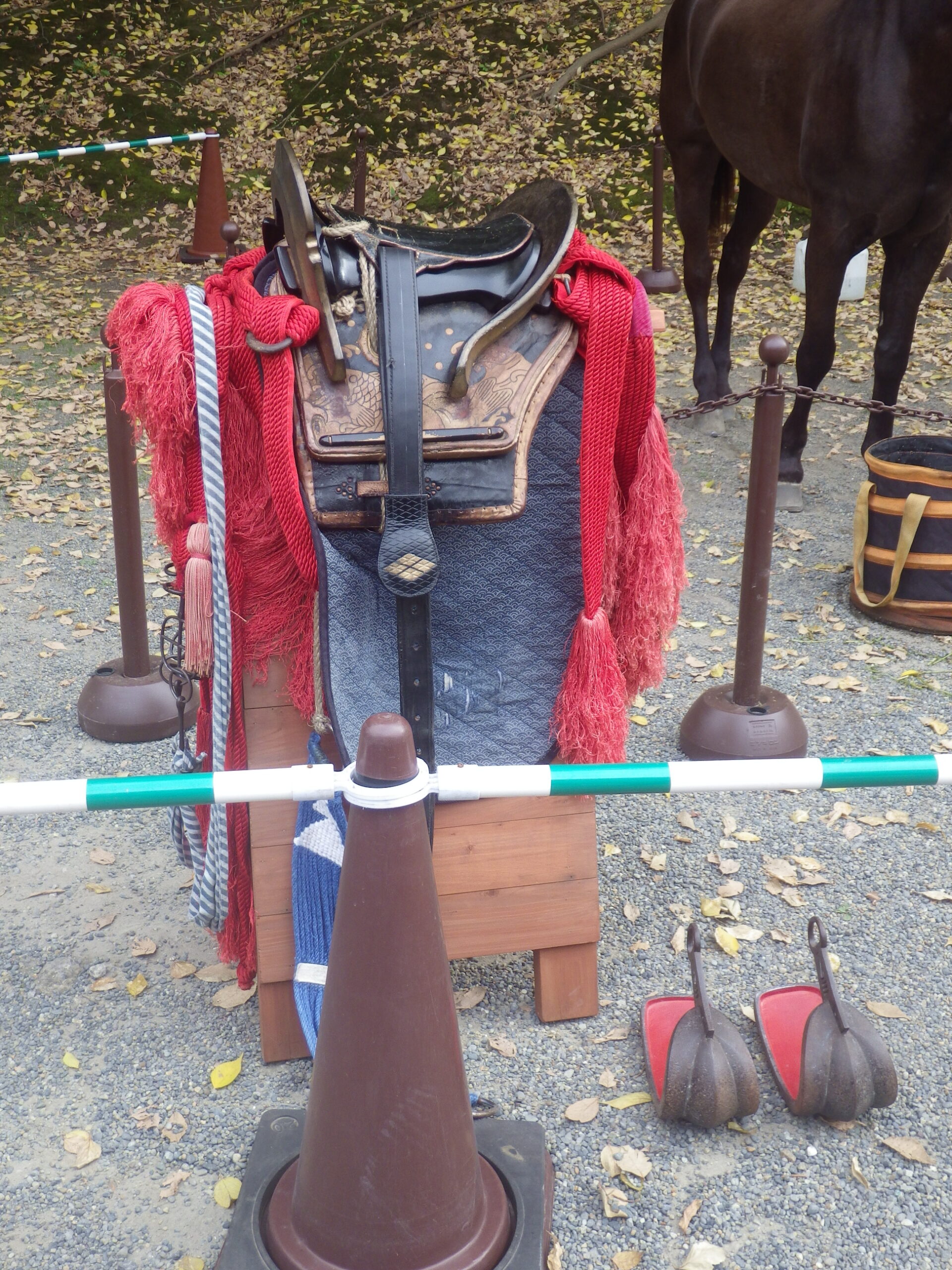 ダーク号にこの和式馬具をつける実演をします。