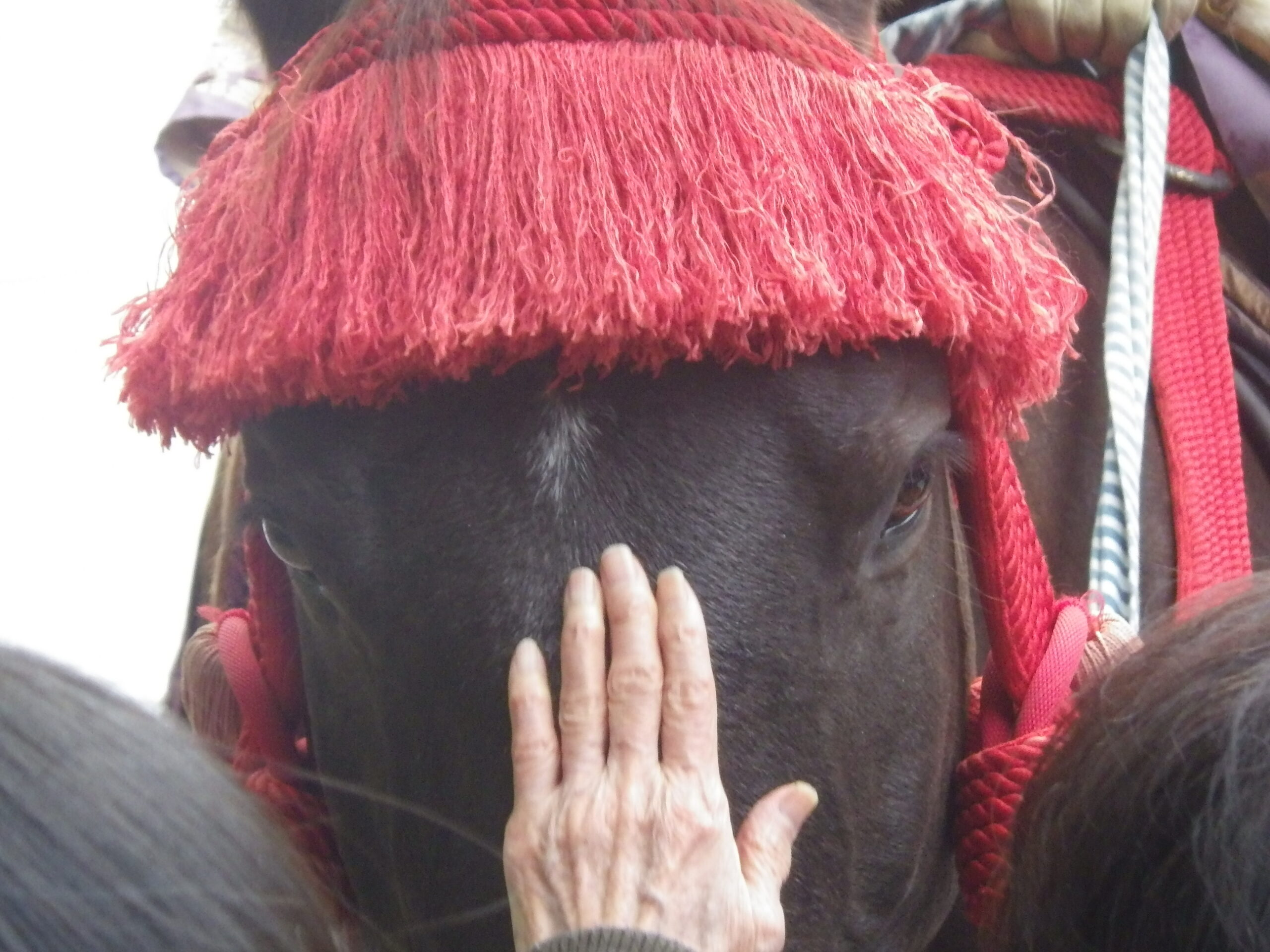 デモンストレーションのあとにふれあいタイム。みんなでお馬さんになでなでします。