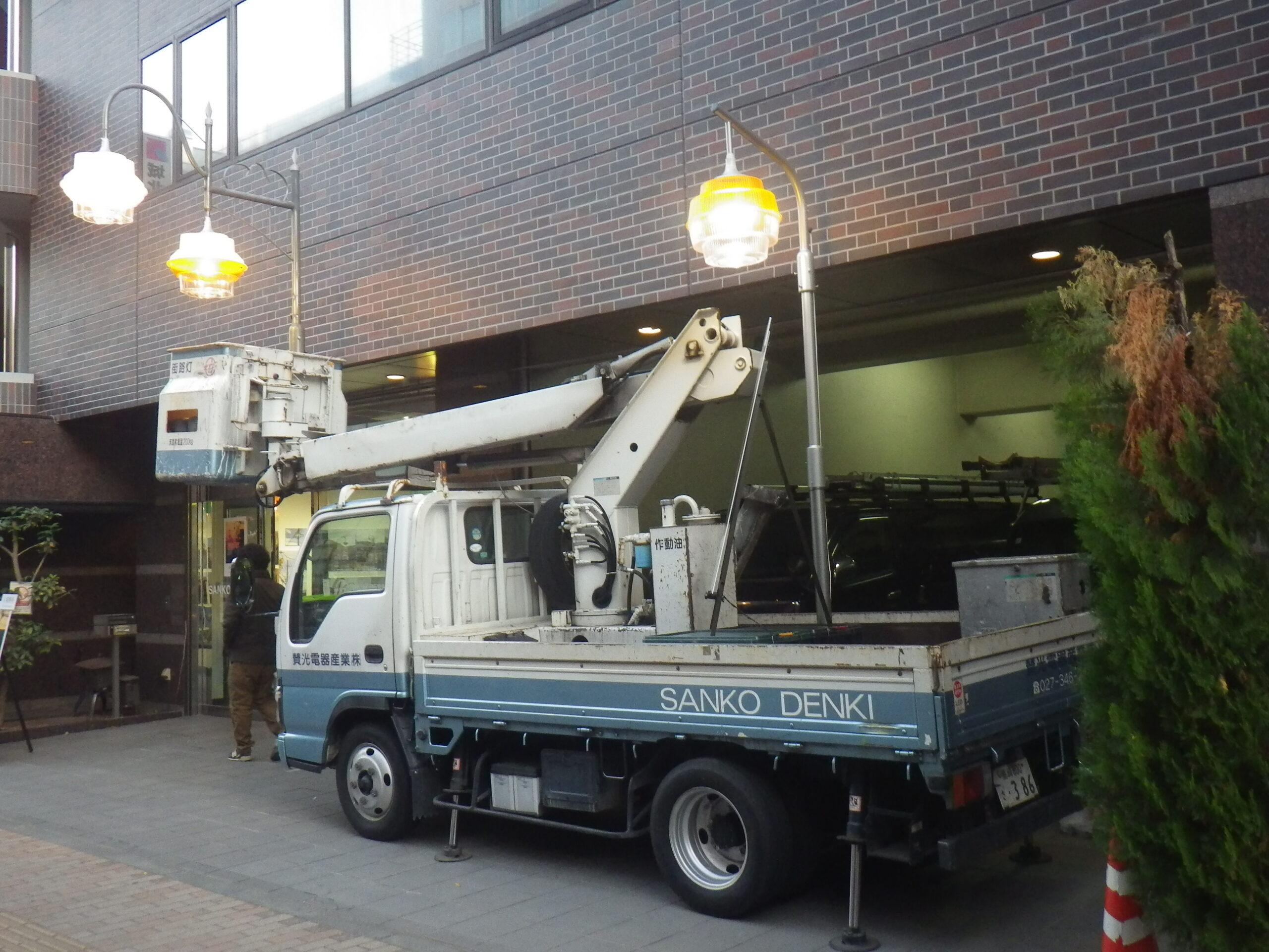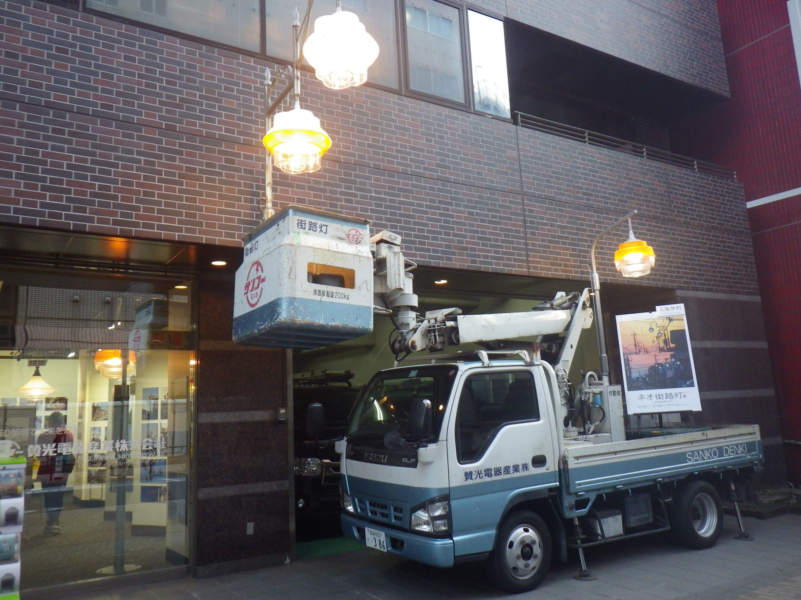 というか、いきなり店頭に高所作業車が。