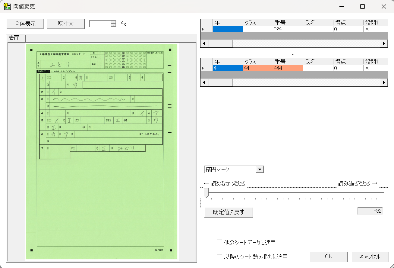 もっともその基準で白い普通の答案用紙をやるとそれはそれでエラーの元になる。