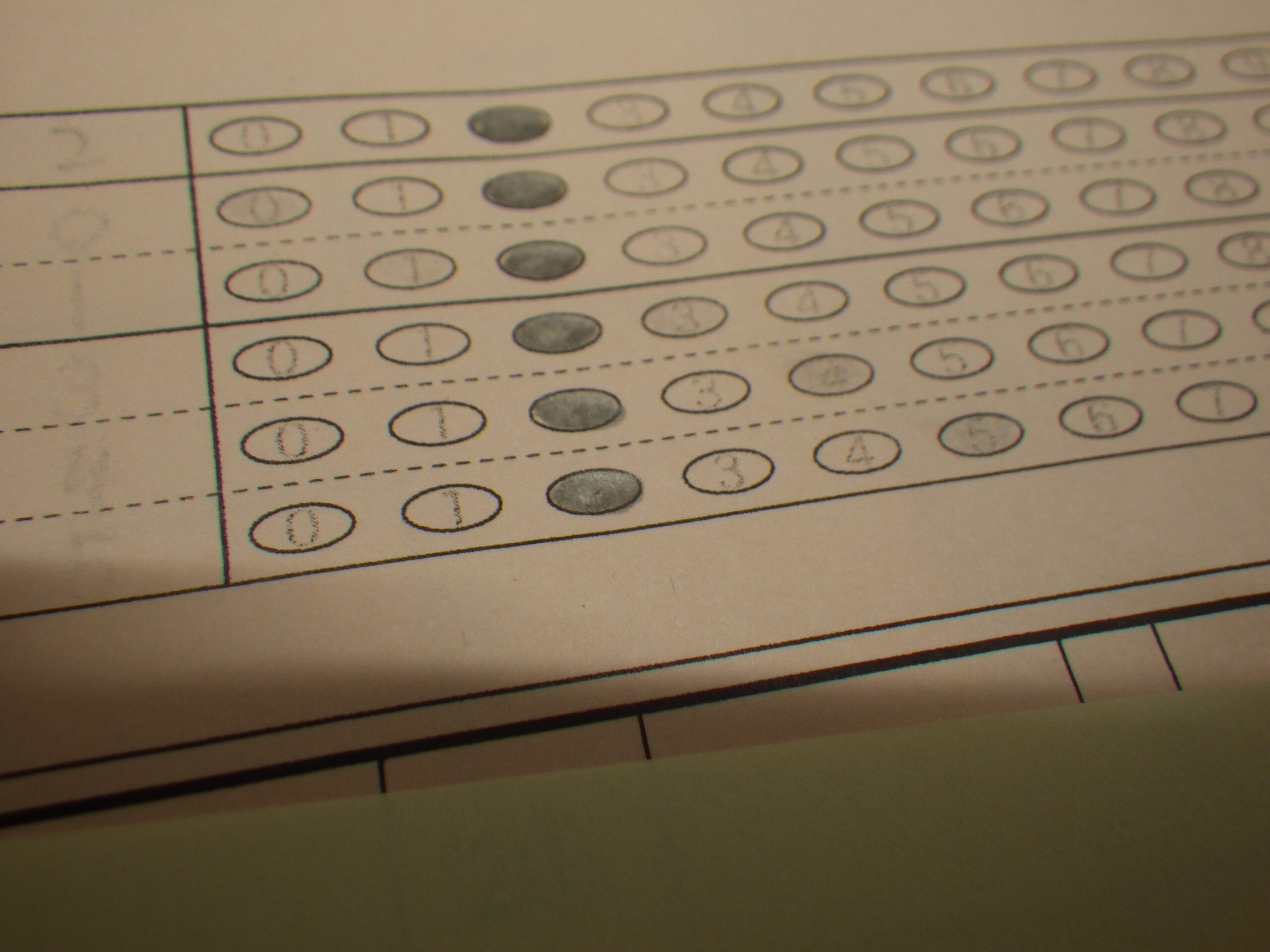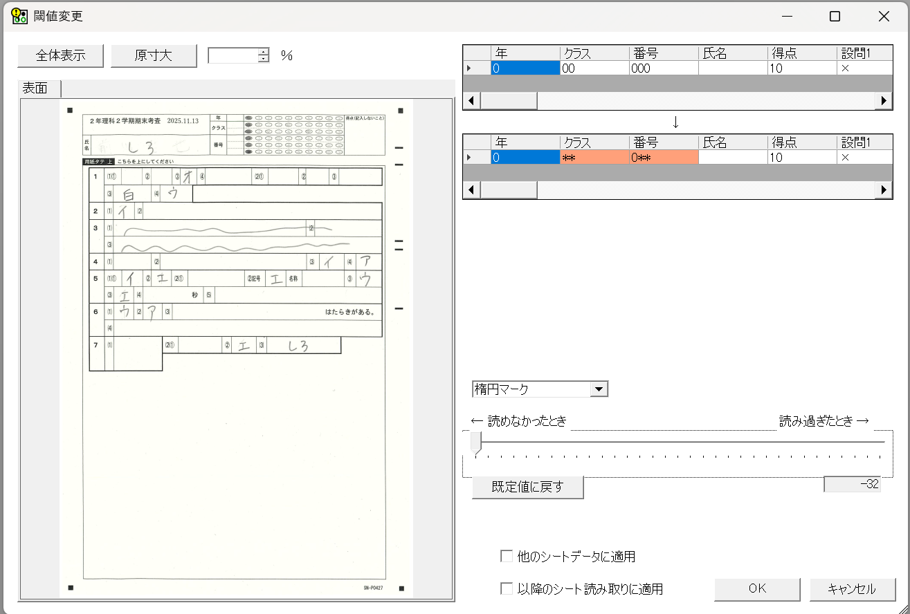 で、話をもとに戻すと、6色の答案用紙を採点システムに読み取らせる。そうしたらまず、受験番号のマークの読み取りをみてみよう。