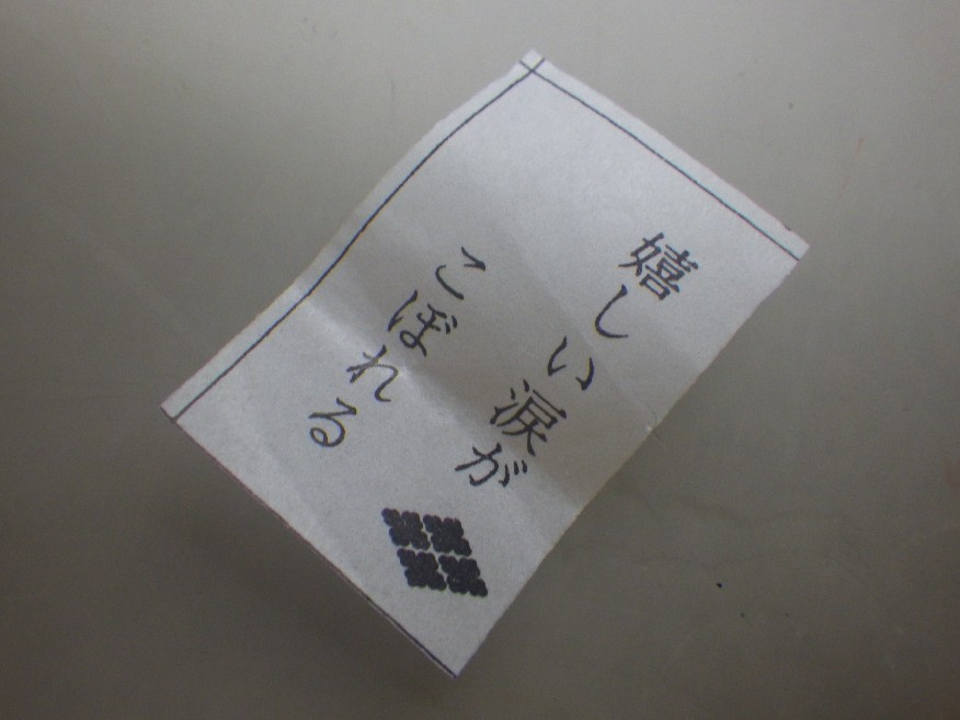 実は先日、フォーチュンクッキーをいただいたのですが、そこに入っていたおみくじに「嬉しい涙がこぼれる」と書かれていました。