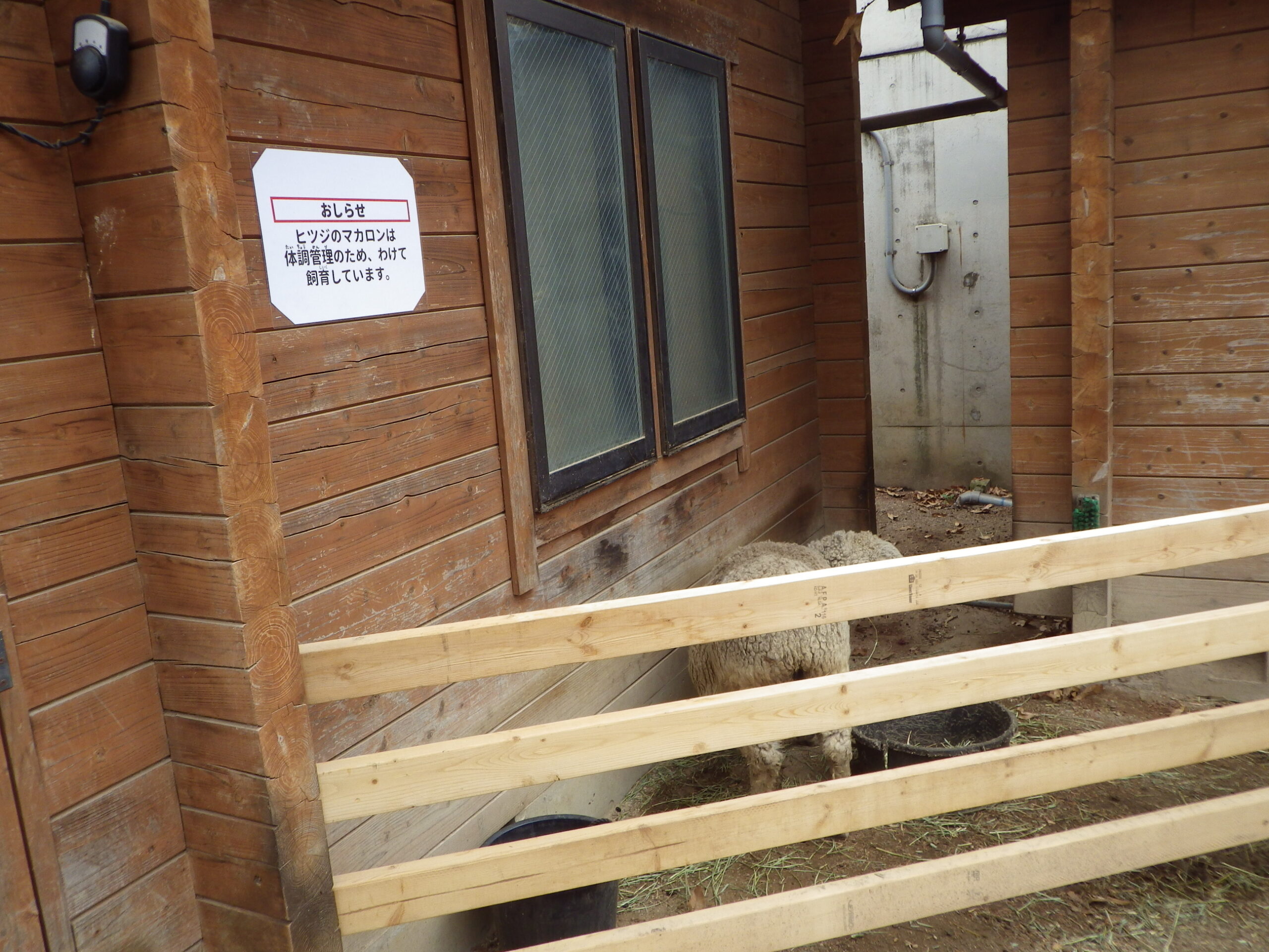 なお、もう一頭のヒツジのマカロンさんは、体調管理のため分けて飼育しているのだそうですが、大丈夫かな。