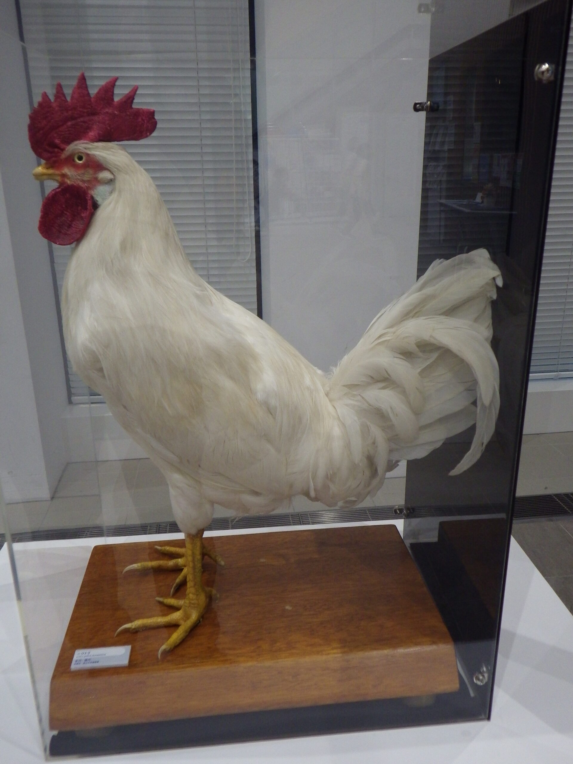 ちなみに恐竜が進化して生き残ったグループには鳥があります。こちらのよく食卓に上る卵をせっせと産んでくれるレグホンは、恐竜と同じく足が前方に3本、後方に1本の指をもちます。