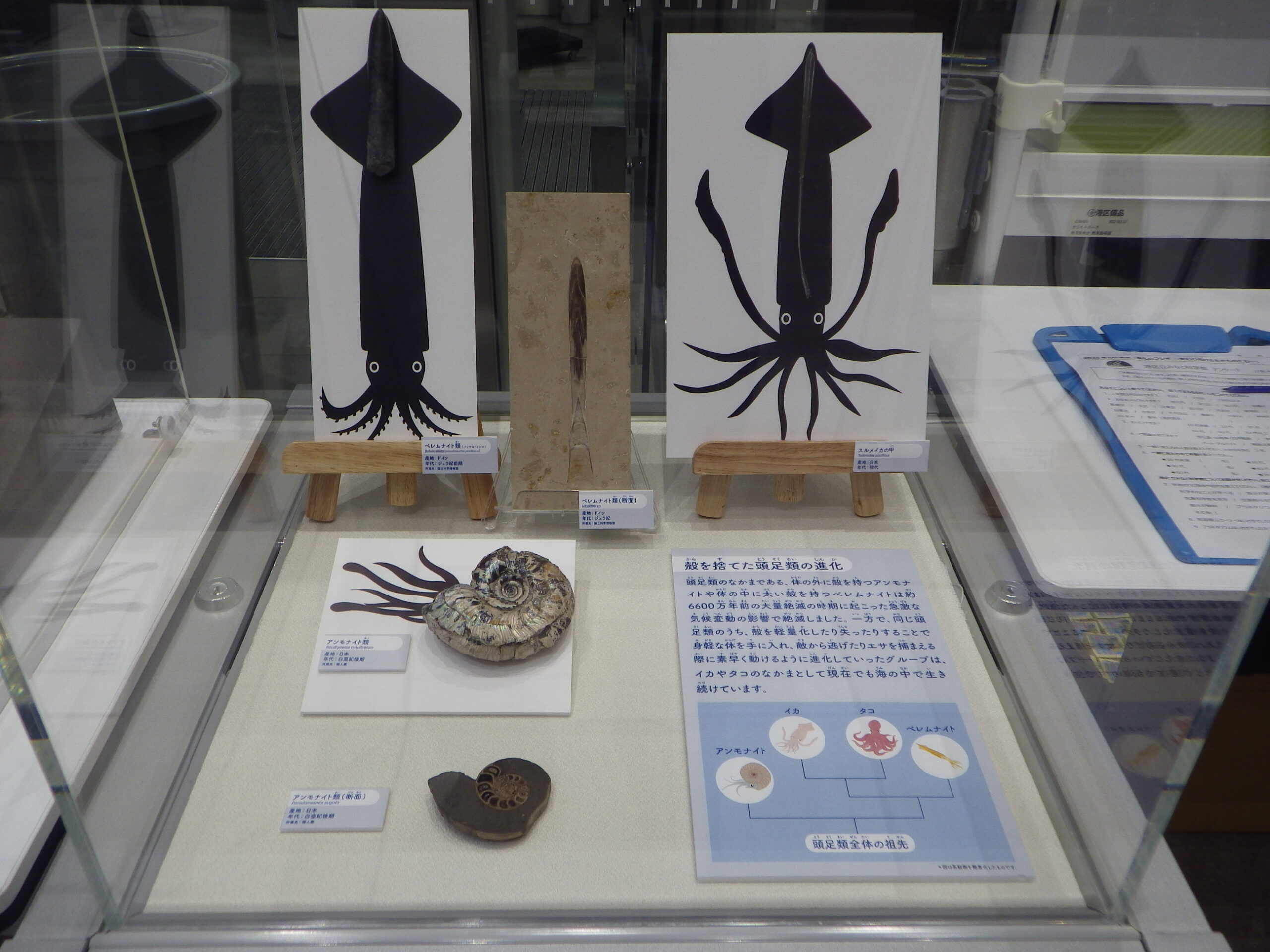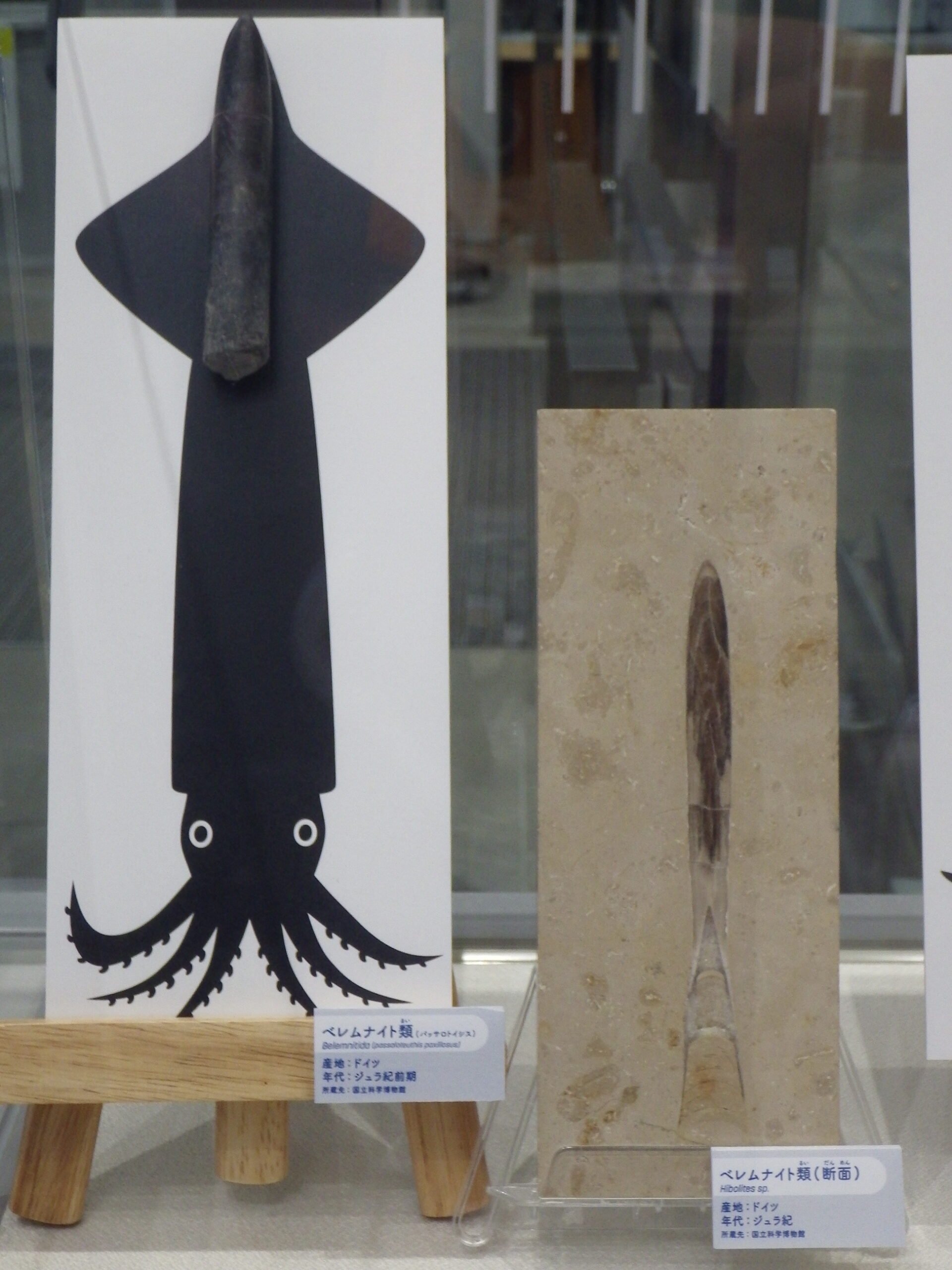 こういうふうにアンモナイトやべレムナイトの絵と化石を重ねる展示はそういえばなかったかも。