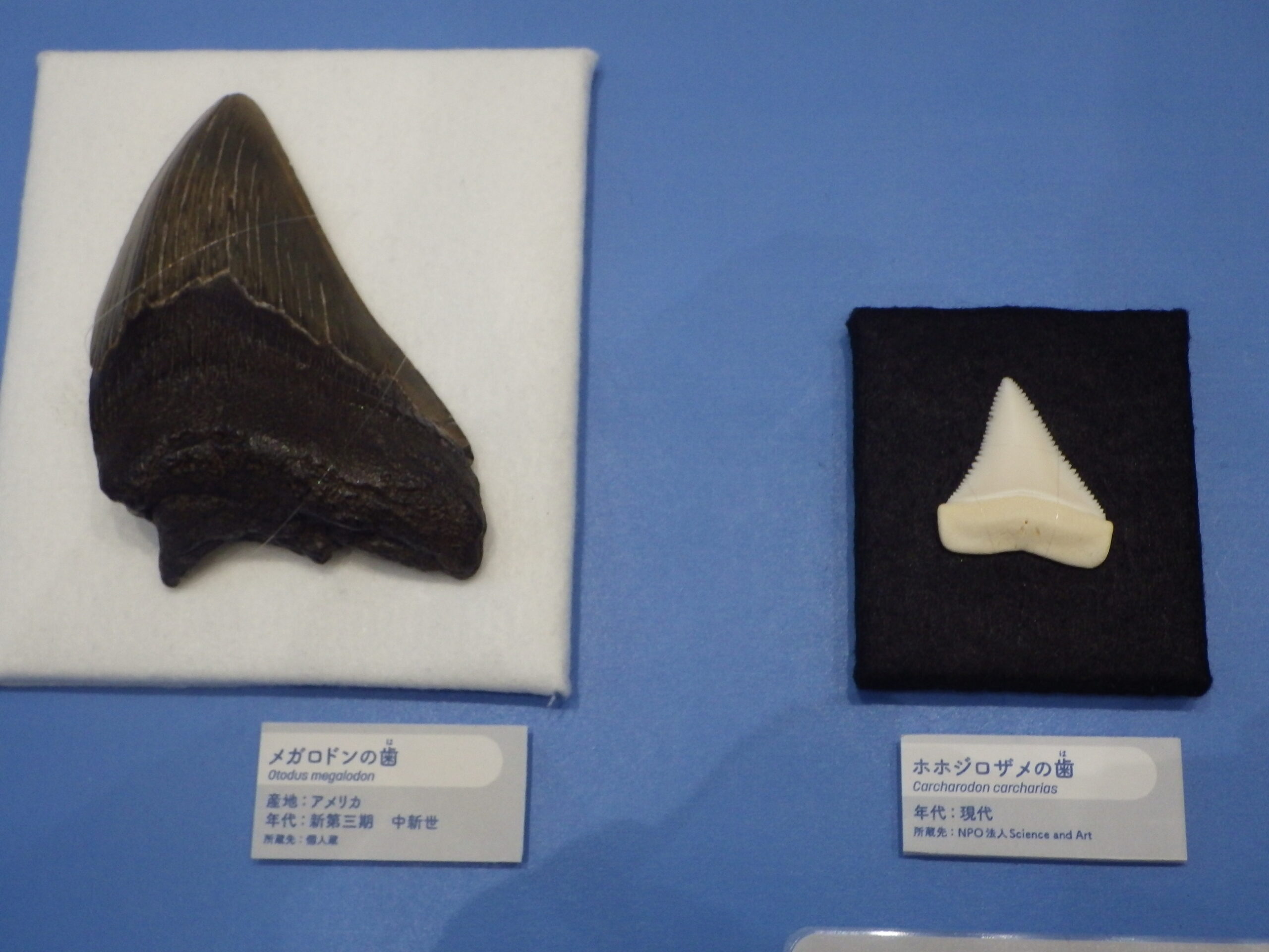 ウミサソリの化石 に メガロドン、ホホジロザメの歯