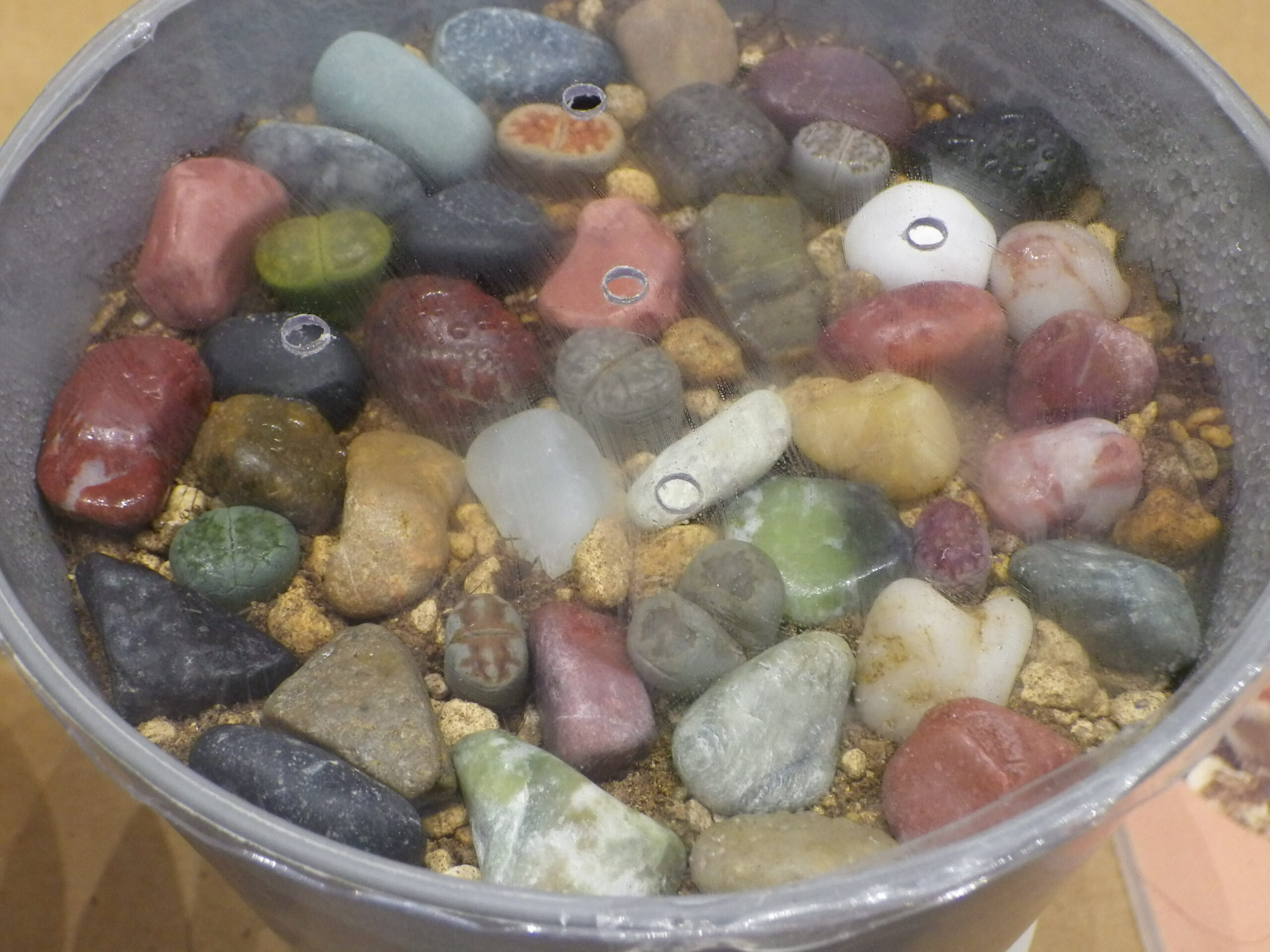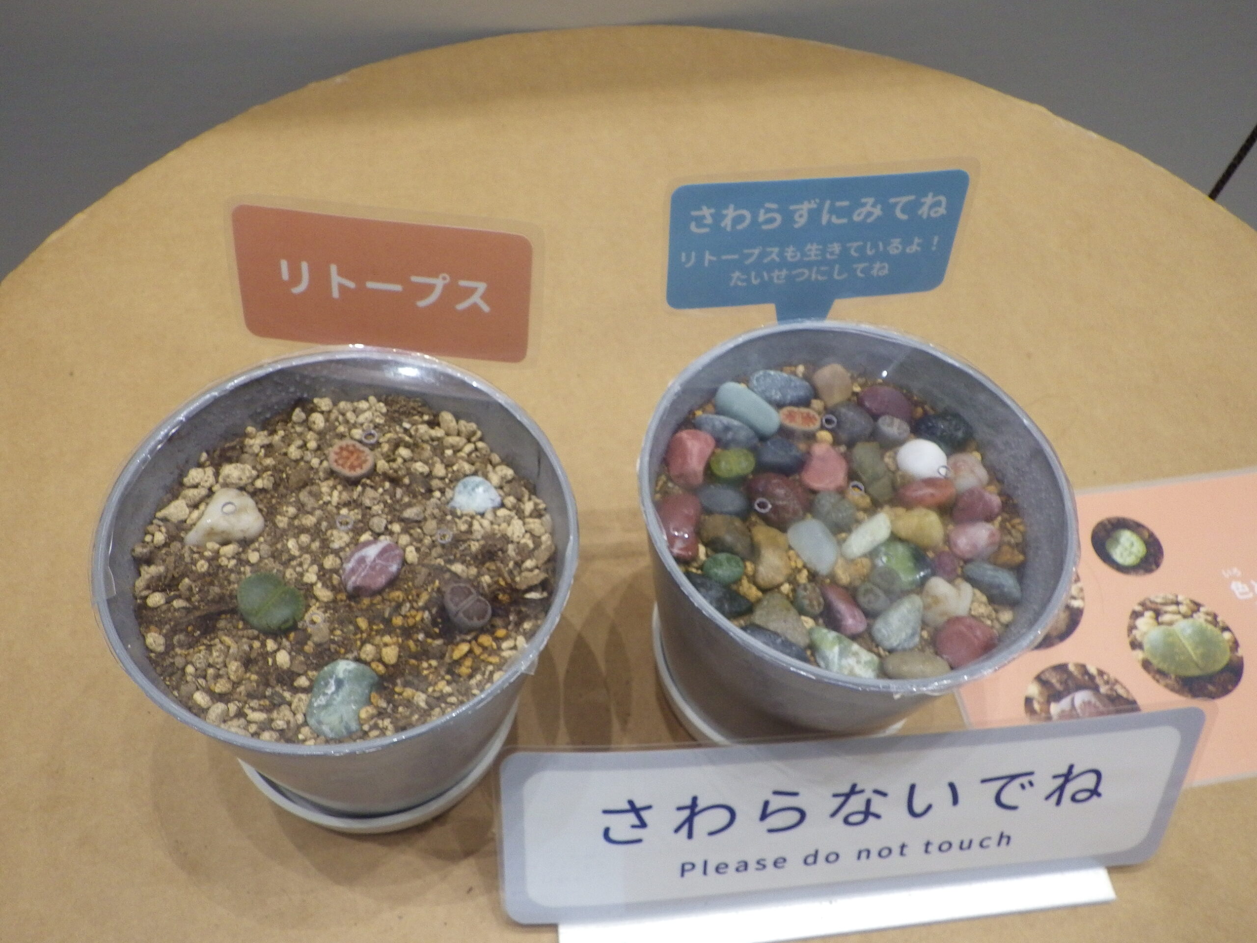 リトープスという多肉植物。え、これ石じゃね?と思ったら本物の石とリトープスが混じっているのだそう。いけずぅ〜。
