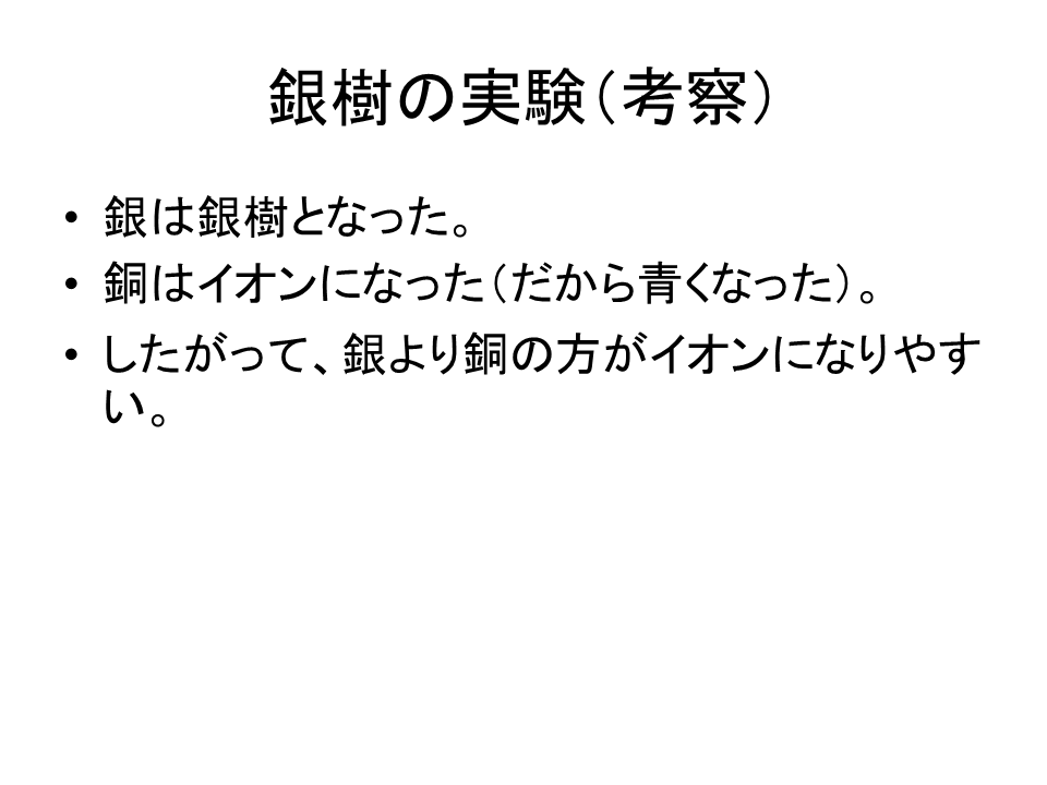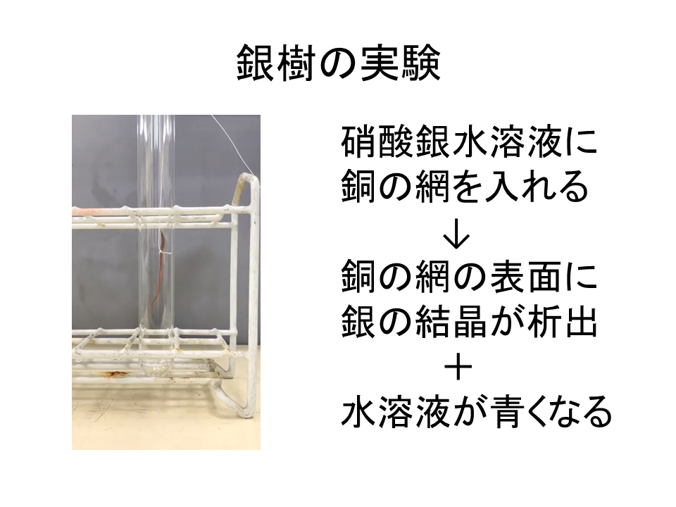 で、さっそく授業のことに入るのですが、この授業の前の実験である銀樹のところから始めます。
