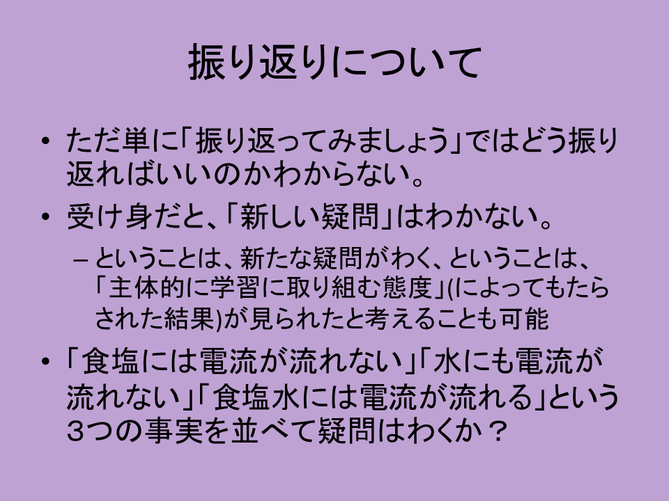 「振り返り」って、どう振り返らせるかが大事。特に、新しい疑問が出るのは主体的に学習に取り組む態度の現れではないでしょうか。